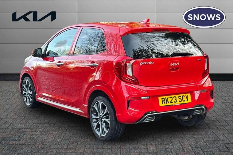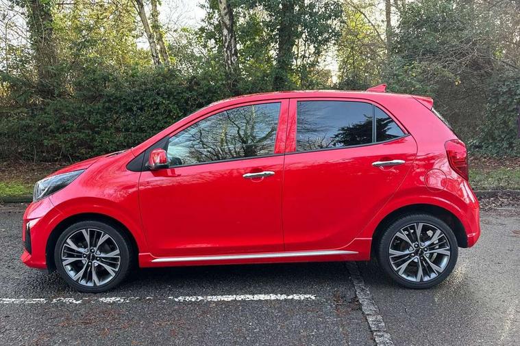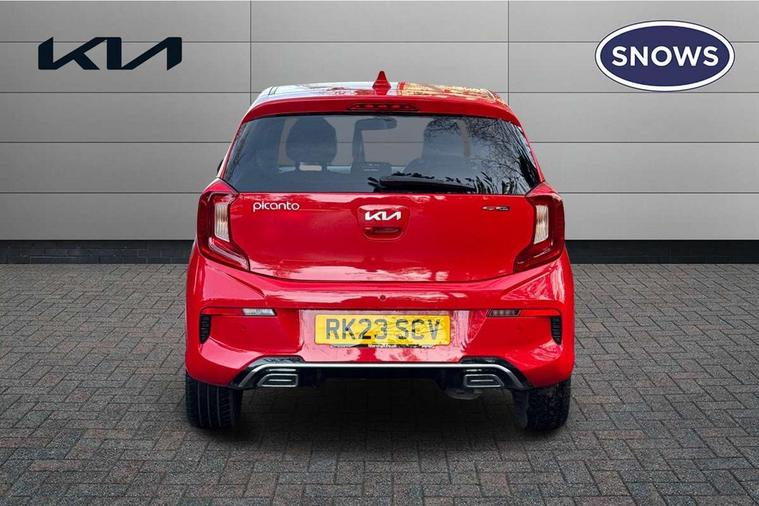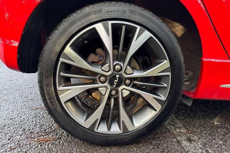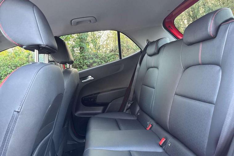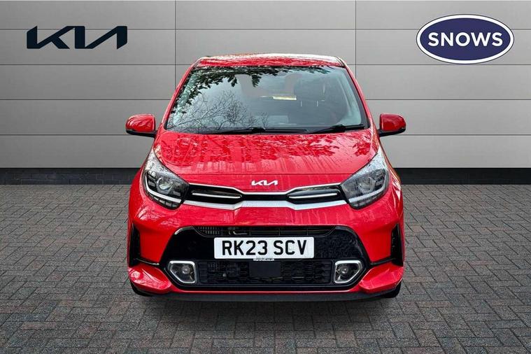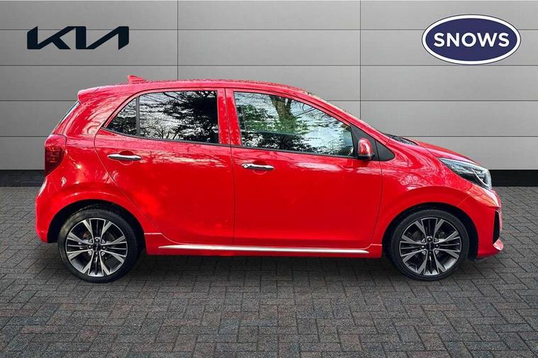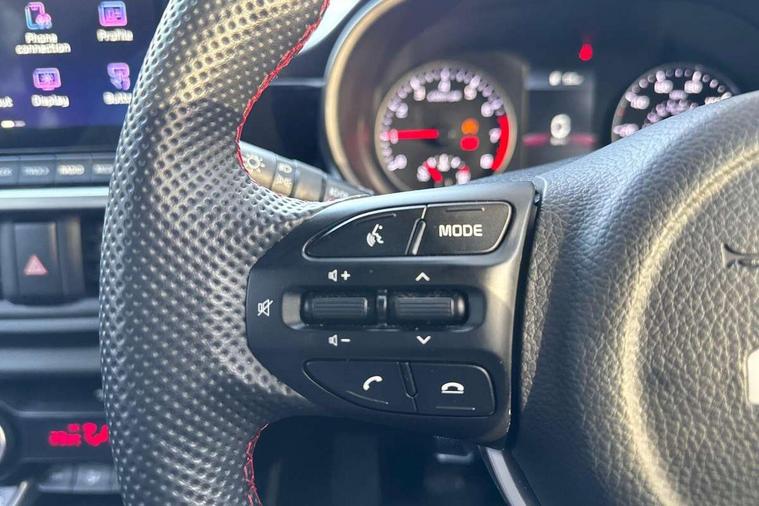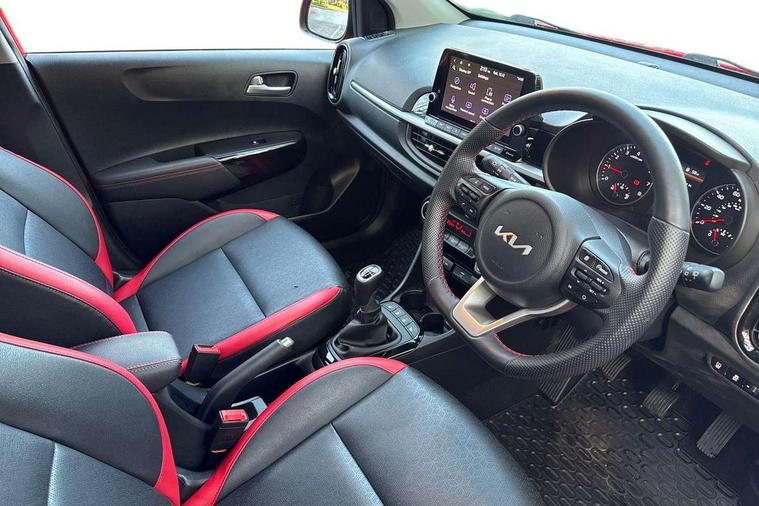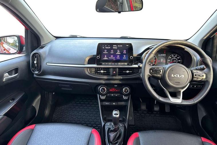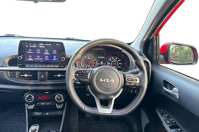 8" touch screen satellite naviagtion with RDS and DAB with telematics, Apple car play/Android Auto with voice control, Cruise control + speed limiter, Emergency call service, Emergency stop signalling system, External temperature gauge, Kia Connect (UVO), Motor driven power steering, Rear parking sensors, Reversing camera system with dynamic guidelines (Integrated into centre fascia screen), Tachometer, Trip computer, Wireless Smartphone charger, 6 speaker audio system, Bluetooth with music streaming, Steering wheel mounted controls, USB ports for connection of a media device, Automatic headlight control system, Bi-function projection headlights, Black beltline mouldings, Black grille with silver surround, Body colour B pillars, Body colour bumpers, Body colour side sill mouldings, Body coloured mirrors and chrome exterior handles, Day/night rear view mirror, Electric adjustable/heated/folding door mirrors with LED indicators lights, Front and rear electric windows with drivers's auto up/down function, Front fog lights, Headlamp levelling, Heated rear window, High mount brake light, LED daytime running lights, LED rear fog lights, Privacy glass - Rear windows and tailgate, Rain sensor, Rear side wing doors, Rear wash/wipe, Speed variable front wipers, Sports front and rear bumpers with gloss black skid plates twin exhaust, Tinted glass, Visible VIN plate, Welcome and follow-me home light functionality, 1 x rear coat hook, 12V power point front, 2 seat bench in 2nd row, 3 x passenger assist grips, 60/40 split/folding 2nd row of seats, All round height adjustable headrests, Automatic air conditioning, Black and red accents front door armrest, Centre Console with Storage Box and Sliding Armrest, Cupholders in centre console, D-cut steering wheel with red stitching, Driver and front passenger sunvisors with driver's side illuminated vanity mirrors, Driver seat height adjust, Faux leather upholstery, Front cabin lights, Glovebox, Heated front seats, Heated steering wheel, High gloss lower centre fascia trim, door armrest and air vents, ISOFIX Child seat top tethers and anchor fixings, Leather trimmed steering wheel and gearshift, Luggage area light, Luggage area parcel shelf, Passenger front seatback pockets, Satin chrome interior door handles, Single front passenger seat, Slide/reclining front seats, Tilt adjustable steering wheel, Advanced Driver Assistance Pack - Picanto, 2 x 3-point rear seatbelts, ABS/EBD, Automatic unlocking of doors in case of impact, Dual front airbags, ESC + BAS + VSM + HAC, Front passenger airbag cut-off switch, Front seatbelt height adjusters, Front seatbelt pretensioners + load limiters, Hill hold control, Knee airbags, Rear child proof door locks, Seatbelt warning, Side impact protection, Torque vectoring brake based and straight line stability (SLS), Traction control, Twin curtain airbags, Twin front side airbags, Tyre pressure monitoring system, Anti theft alarm, Engine immobiliser, Locking wheel nuts, Smart key with engine start/stop button, 16" alloy GT-Line wheels, Tyre mobility kit,