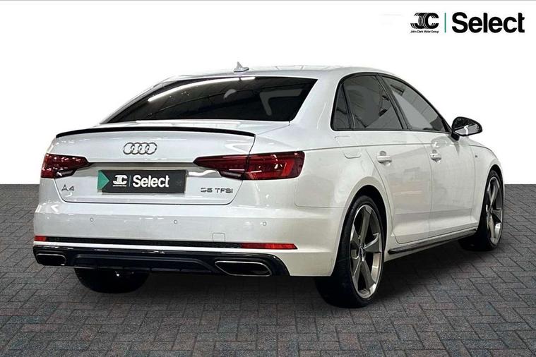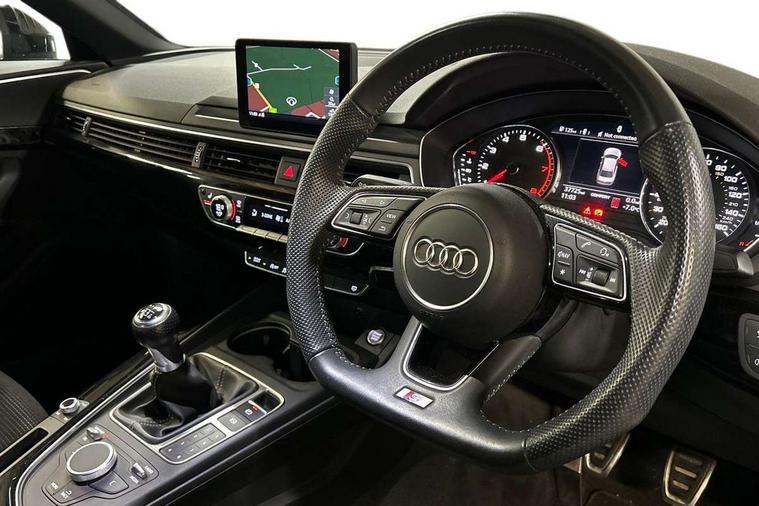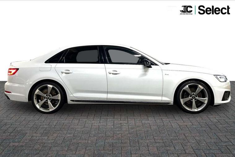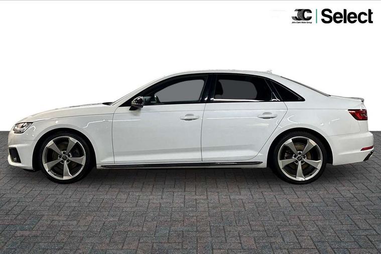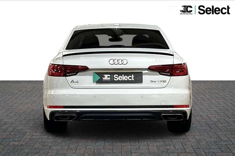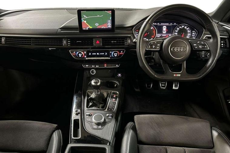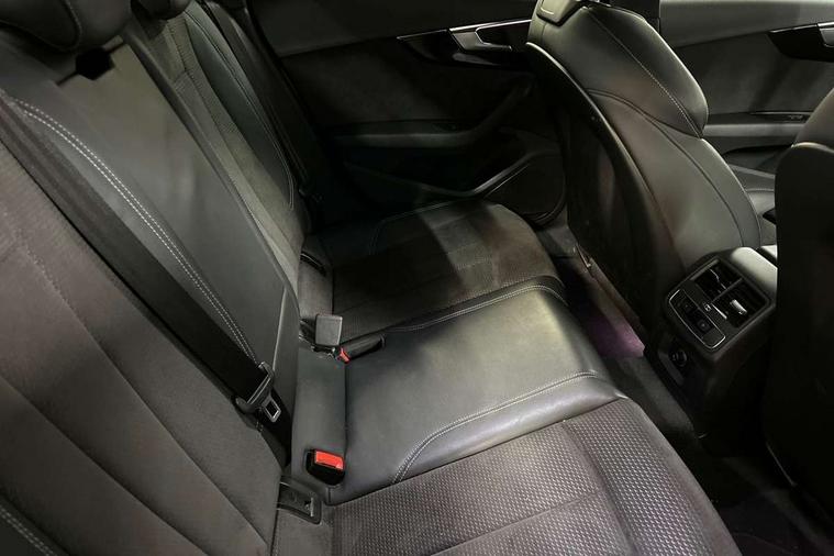 7" Colour driver information system, Audi connect safety and service (e-call), Audi drive select, Audi parking system plus with front and rear sensors, Audi Pre sense collision avoidance, Bluetooth interface, Electric boot release, Electromechanical power steering, MMI SD card Navigation, Service interval indicator, Stop/start button, Voice control system, 54 litre fuel tank, 2 USB interfaces and Aux-In jack, DAB digital radio module, Acoustic windscreen, Air inlets in titanium black, Auto dimming rear view mirror, Automatic headlights + automatic windscreen wipers, Blue tinted glass, Body colour bumpers, Body colour door handles, Chrome rolled exhaust, Chrome tailpipe finisher, Electric front windows, Electric rear windows, Headlight range control, High beam assistant, High gloss black door mirrors, High gloss black triangular aperture at rear door, LED daytime running lights, LED indicators in door mirrors, Privacy glass with front acoustic glazing, Radiator grille and frame in Titanium Black, Rain and light sensors, Rear diffuser in Twilight grey matt, S Style rear spoiler, Titanium black front and rear air intakes, Titanium black window surround, 3 spoke flat bottom high multi-function leather steering wheel, 3 zone climate control, 4 way electric lumbar support for driver and front passenger, 40/20/40 split folding rear seats with rear centre armrest, Black cloth headlining, Contrast stitching on seats, steering wheel and gear lever gaiter, Front centre armrest, Front headrests, Front/rear floor mats, Height and reach adjustable steering wheel with full size airbag, Illuminated door sill finishers, Isofix child seat preparation for front passenger/outer rear seats inc passenger airbag deactivation, Jack and tool kit, Luggage compartment carpet, Perforated leather gearknob, Rear headrests, Stainless steel foot rest, Stainless steel pedals, Sunvisors with vanity mirrors, Top tether anchor plate for isofix child seat, Non Smokers pack, S line exterior styling pack - A4 Saloon, 3 point seatbelts on all rear seats, Adaptive driver and front passenger airbags, Electromechanical parking brake, Electronic stabilisation control including ABS, ASR and EDL, Front head airbags, Front seatbelt pretensioners + load limiters, Front side airbags, Multi-Collision braking, Pop-up bonnet for pedestrian protection, Seatbelt warning, Traction control, Tyre pressure warning, Variable restraint system, Warning triangle and first aid kit, Anti theft alarm, Keyless Start, Locking wheel bolts, Remote central locking, Thatcham category 1 alarm + immobiliser, MMI radio plus with smartphone interface, Piano black finish inlay, Tyre repair kit,