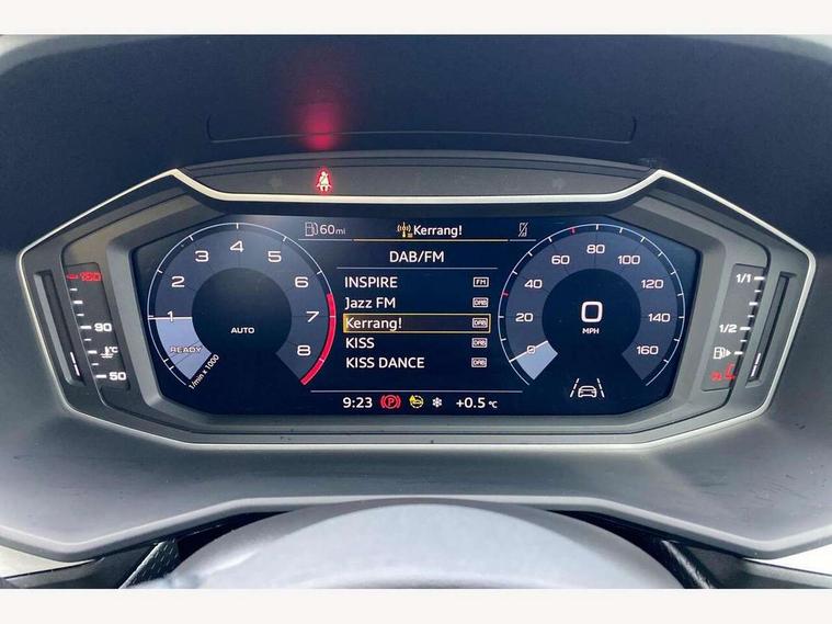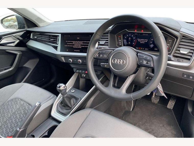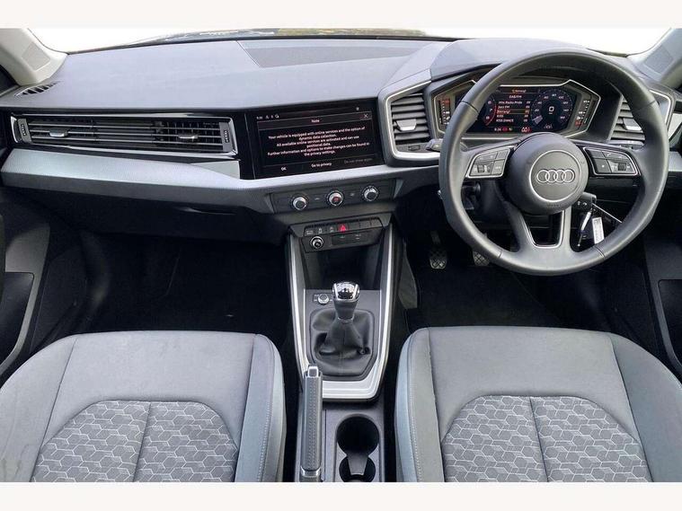 10.25" Digital instrument cluster display classis style instrument dials + speed, odometer, time, outside temperature, telephone menu + fuel level warning, Audi drive select - power steering assistance + engine, Audi smartphone interface with connect compatible smartphone via USB directly MMI display + Nav, music, third party apps controlled via MMI controller, Automatic start/stop system, Bluetooth interface, Cruise control, Driver's information system, Electromechanical power steering, Emergency e-call, Lane departure warning system, Rear parking sensor, Service interval indicator, Speed limiter, Voice control system, Washer fluid level indicator, Dynamic suspension, 2 x USB type C connection points, 6 passive loudspeakers, DAB Digital radio, MMI radio plus with 10.1" colour MMI display screen and MMI touch, Auto dimming rear view mirror, Body coloured bumpers, Body coloured door mirrors, Electric front and rear windows, Electrically adjustable, heated, folding door mirrors with integrated LED side indicator, Front side air inlets in grained matt black and C frame in anthracite black, Heat insulating glass windscreen and side windows, Heated rear windscreen, High level LED brake light, LED headlights with LED rear lights + dynamic rear indicators + headlight adjustment and high beam, turning light + LED daytime running lights, Radiator grille and rear diffuser in matt anthracite black, Radiator protective grille frame in matt aluminium silver, Rain and light sensors, Rear fog lights, Rear side wing doors, Rear wiper, Side front spoiler lips in grained matt black, 12V socket in centre console with two cup holders, 3 rear seats with headrests, 3 seat bench in 2nd row, 3 spoke leather multifunction plus steering wheel, 40:60 Split folding rear seat or folded fully, Black front and rear floor mats, Door sill trims with aluminium inlay, Driver and passenger seat with manual height adjust with forward and backwards adjustment, Front head restraints, Front passenger seat, Grey cloth headlining, Height and reach adjustable steering wheel, ISOFIX child seat mounting for front passenger and outer rear seats including top tether attachment point of outer rear seats, Leather gear knob with aluminium trim, Leather handbrake grip, Luggage compartment light with front and rear reading lights, Manual air conditioning, Manually adjustable lumbar support in front seats, Novum cloth upholstery with front sport seats, Luggage compartment pack - A1, 3x3 point rear seatbelts, Audi pre-sense front with pedestrain and cyclist recognition, Brake assist function, Driver and front passenger airbag with front side and head airbags, Electronic Stability Control including ABS, EBD, ASR and EDL, Front passenger airbag deactivation switch, Hill hold assist, Manual rear child locks, Seatbelt height adjustment for front seats, Seatbelt monitoring, Tyre pressure warning light, Warning triangle and first aid kit, Anti theft alarm, Anti theft wheel bolts and loose wheel warning, Immobiliser, Remote central locking with 2 foldaway keys, Aluminium trim for control switches, air vents and digital instrument cluster, Black dashboard, Silver grey accent areas including air vents, door handle recesses and centre console in diamond paint finish, Slate grey inlays polygon structure in fine paint finish,