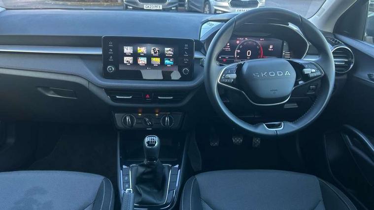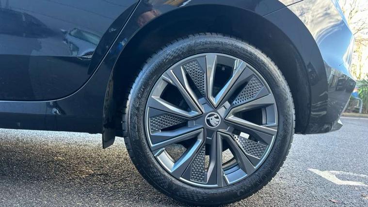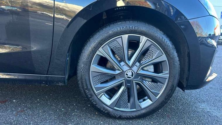 Advanced driver attention and drowsiness monitor, Bluetooth connection, Electromechanical power steering, Exterior temperature gauge, Service interval indicator, Traffic sign recognition, Virtual cockpit with 10.25" colour display, Wireless SmartLink for Apple CarPlay and Android Auto, 6 Speakers (4 in front and 2 in rear), Auxiliary socket for external MP3 player, DAB digital radio reception, Body coloured bumpers, Dimming rear view mirror with black frame, Door mirror integrated indicators, Front and rear electric windows, Front window wiper intermittent control, Headlight range control - Automatic, Ice scraper in fuel cap, LED daytime running lights with coming and leaving home feature, LED rear lights, Privacy glass, Rear LED fog light, Rear side wing doors, Rear window wiper with washing nozzles, Roof mounted spoiler, SKODA tailgate lettering in chrome, Third brake light, 2 reading lights in front and 2 reading lights in rear, 3 rear headrests, Backrest split and folding, Central console with removable cup holder and storage box, Chrome handbrake release button, Fabric upholstery, Front centre armrest, Gearshift knob/handle in leather, Grain satin black interior door handles, Hand brake lever handle in leather, Height adjustable front headrests, Height adjustable front seats, Height adjustable steering wheel, ISOFIX and TopTether anchorage points to the outer rear seats, ISOFIX and TopTether on the front passenger seat, Luggage compartment lighting, Manually adjustable lumbar support in front seats, Pollen filter, Rear seat bench unsplit, Single front passenger seat, Storm grey headlining, Sun visors with mirror and airbag label on passenger side, Textile floor mats, Ticket holder, Umbrella in drivers door, 3-point height adjustable front seats belts with pretensioner and force limiter, Automatic warning lights in case of crash, Driver and passengers airbag with switch off function, e-Call+, ESC including ABS, MSR, ASR, EDS, HBA and XDS, Front and rear seat belt warning, FRONT ASSIST (AEB City and AEB Inter Urban), Front side airbags, Head airbags, One tone horn, Pedestrian protection, Three rear 3-points safety seat belts with pretensioner and force limiter including stop function for outer rear seat belts, Tyre pressure monitoring system, Anti-theft alarm system including immobiliser, interior monitoring, backup horn, and towing protection, Central locking with radio remote control, interior controls, SAFE function and 2 foldable keys, Colour Edition air vents, Grain satin black central console cover, Metallic grey upper decorative trim, Satin black door and side trim panel in front, Textile Kota grey lower decorative inserts, Anti-theft wheel bolts protection, Super-low rolling resistance tyres,