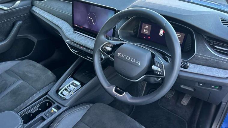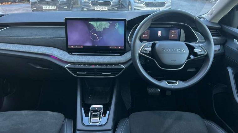 1x USB Typc C port in rear view mirror, 4x USB Type C ports - 2x in front centre console and 2x in rear (45W), Drive mode selection, Driver fatigue sensor, eCall emergency system, Electro-mechanical power steering, Front assist system, Traffic jam assist, Traffic sign recognition, Turn Assist, Virtual Cockpit - 10.25" digital display, Voice control system, Wireless charging (15W) with cooling function, Wireless SmartLink for Apple CarPlay and Android Auto, 13" touchscreen display with navigation, DAB Digital radio, Aero front windscreen wipers with intermittent function, Auto dimming rear view mirror, Body colour bumpers, Body colour door mirrors and handles, Chrome grille surround, Chrome roof rails, Chrome strip in lower front bumper, Chrome window surrounds, Electric front and rear windows, Heated rear windscreen, High level third brake light, Ice scraper in fuel cap, LED daytime running lights, LED Headlights, Logo projection in front doors, Rain and light sensors, Rear fog light on one side, Rear privacy glass, Rear side wing doors, Rear spoiler, Rear window wiper, 12 volt socket in boot, 3 rear headrests, 3 seat bench in 2nd row, 4 foldable roof handles, Front head restraints, Heated front seats, Illuminated glovebox, Interior door handles in dark chrome, Jumbo Box storage, Luggage compartment lighting x2 lights, Mechanical rear seat release from boot, Single front passenger seat, Steering wheel in black leather with black stitching, Storage compartments in left and right of boot, Sun visors with mirrors, Sunglasses storage, Ticket holder, Umbrella in door panel, Unsplit rear bench seat, split folding backrest with centre armrest with cupholder, Comfort package - Octavia Estate, Simply clever package premium - Octavia, 3x3 point rear seat belts, Alarm with interior monitoring, tilt sensor and back up horn, Curtain airbags and front side airbags, Driver and front passenger airbags, Drivers knee airbag, Electronic parking brake, ESC including ABS, EBV, MSR, ASR, EDS, HBA, DSR, Front central airbag, Hill hold assist, ISOFIX on front passenger seat and outer rear seats, Passenger airbag deactivate switch, Three point seat belts in front and rear, Two tone horn, Tyre pressure monitor, Visual and acoustic seat belt reminder, Warning reflectors in front door, Anti-theft wheel bolts, Keyless start/stop, Remote central locking, Chrome air vent surrounds,