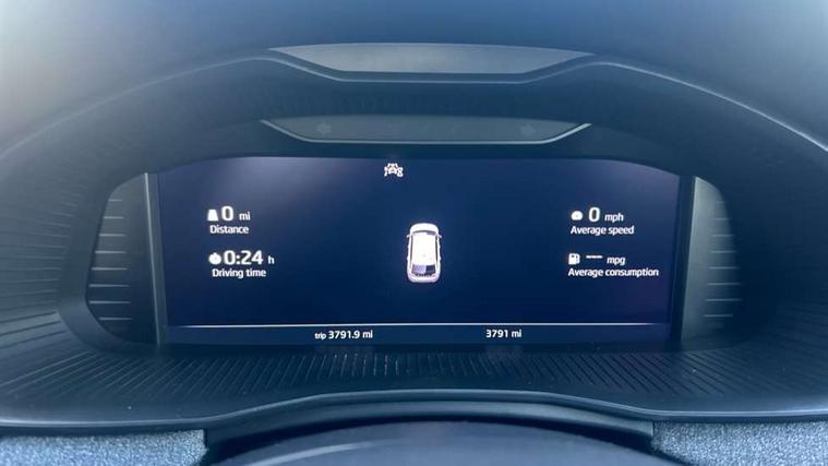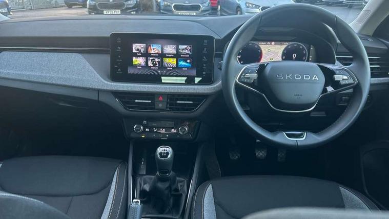 Advanced driver attention and drowsiness monitor, Bluetooth, e-Call (emergency call), Front assist system, PAS, Rear parking sensors, Rear view camera, Speed limiter, Tailgate, Traffic sign recognition, Virtual Cockpit - 10.25" digital display, Voice control system, Wireless smartlink, 4 USB C ports, 8 Speakers, 9.2" Skoda navigation display, DAB radio, Auto dimming rear view mirror, Automatic headlamp activation with Coming home and Leaving home feature, Automatic high/low beam, Body colour bumpers, Body colour door mirrors and handles, Chrome moulding around grille, Front and rear electric windows, Full LED headlights, Heated rear window, LED 3rd brake light, LED brake lights, LED daytime running lights, LED front turning lights, LED high beam, LED low beam, LED taillights, Rear LED fog light, Rear side wing doors, Rear wiper, Tinted windows, Unique dark chrome design logo on alloy wheels, 12V socket in luggage compartment, 3 seat bench in 2nd row, Black / Grey armrest stitching, Black hotstamping, Cargo elements, Chrome inner door handles, Door inserts in satin black, Driver and passenger sun visors with vanity mirror, Dual zone climate control, Front and rear roof lights, Front centre armrest, Front head restraints, Glasses storage in roof liner, Height adjustable driver seat, Height adjustable passenger seat, Ice scraper, Illuminated glove compartment, Inner circulation control with pollen filter, ISOFIX for front passenger seat, Isofix preparation for back seats, Leather gearknob and handbrake lever, Loft cloth upholstery, Luggage net under rear parcel shelf, Manual lumbar support for front seats, Net package and top tether hooks in boot space, Pearl grey ceiling, Pocket on the back of both front seats, incl. mobile phone pockets, Single front passenger seat, Skoda lettering on steering wheel, Textile floor mats, Third rear headrest, Ticket holder, Top tether for front passenger seat, Umbrella in driver's door, 3x3 point rear seatbelts, ABS, Child locks, Curtain airbags and front side airbags, Disc brakes, Driver and front passenger airbags, ESP, Hill hold control, Manual leather parking brake, One tone horn, Passenger airbag switch off function, Seatbelt reminder for driver and front passenger, Tyre pressure monitoring system, Anti theft alarm system with interior monitoring, backup horn and towing protection, Anti-theft wheel bolts, Remote central locking with 2 remote folding keys, SAFE function for remote central locking, Decord pad, door inserts Kota uni,