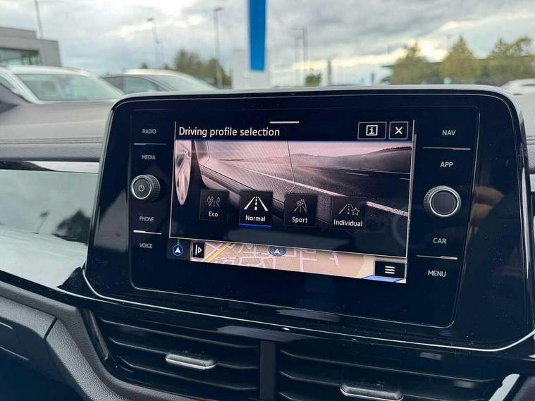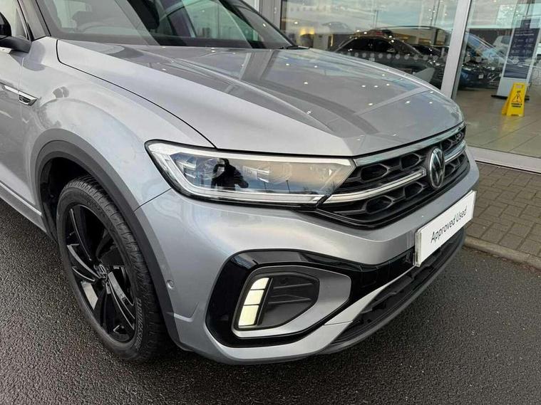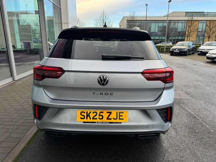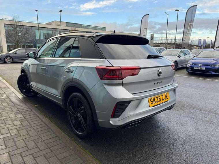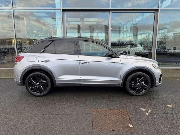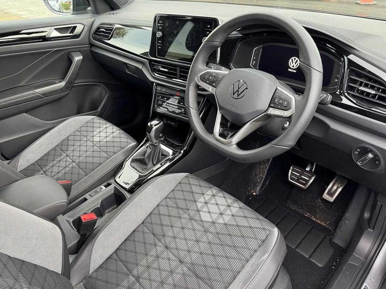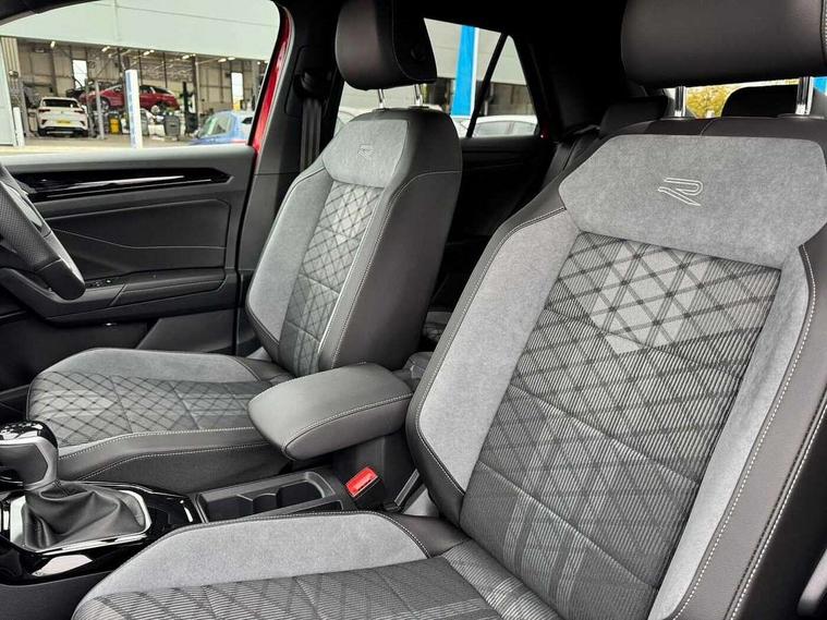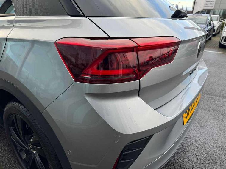 10.25" Digital cockpit pro, Advanced driver attention and drowsiness monitor, Emergency call service, Lane keeping system Lane Assist, Mobile phone interface, Modified key software - reduce switch off time for key status change to Long no motion, Online services, Park assist including front and rear parking sensors, Power assisted speed sensitive steering, Service interval indicator, Tailgate/trunk lid release from outside, Think blue trainer driver tips and journey analysis, Warning sound and light for front seatbelts unfastened, Wireless app connect, Battery regeneration during braking, Rear shock absorption chassis with increased ride height, Start/stop function with battery regeneration, DAB Digital radio, Diversity antenna for FM reception, Front and rear 6 speakers, Music playback - MP3, WMA and AAC files, Premium USB cable in choice of either Apple or Android smartphone compatibility, SD card slot, Simultaneous pairing of 2 compatible mobile devices, Title and cover art display, We Connect and We Connect Plus functionality, Auto dimming interior rear view mirror, Automatic hazard lights activation under emergency braking, Automatic headlight control with LED separate daytime running lights with coming/leaving home function, Dynamic cornering light, Electrically adjustable and heated door mirrors, Extended roof spoiler, Exterior mirrors aspherical on driver side, convex on front passenger side, External USB type C socket and charging sockets, Front windscreen wiper with intermittent wipe and 4 position delay, Heated rear window, Illuminated front grille, IQ LED matrix headlights, LED 3rd brake light, LED rear number plate lights, LED rear tail lights with dynamic turn signal, Light mode for poor weather, rain, fog or snow, Power windows with comfort operation and circuit breaker, R-Line design body coloured bumpers, Rain sensor, Rear exhaust tailpipe, Rear fog light on one side and reversing lights on both sides, Rear side wing doors, Rear wash/wipe with intermittent wipe setting, Remote electrically foldable door mirrors, puddle lights and reverse activated passenger's door mirror, 12V power socket in centre console, 3 rear head restraints, 3 seat bench in 2nd row, 4 load lashing points in luggage compartment, Air care climatronic air conditoning system with active combination filter and 2-zone temperature control, Artvelours cloth upholstery, Black roof lining, Chrome plated radiator grille inserts, air vent surrounds and light switch surrounds, Door and side trim panel with leatherette insert, Drawer under drivers seat, Driver seat height adjust, Driver's seat lumbar support, Front + rear carpet mats, Front centre armrest, Front comfort sports seats, Front cupholders x 2, Front footwell illumination, Front reading light, Front scuff plates with R Line logo, Front seat back storage pockets, Glove compartment door with light, Instrument lighting, white adjustable panel illumination, Interior ambient lighting and surround lighting, Interior light delay, Isofix child seat preparation, Leather gearshift handle, Leather wrapped multifunction steering wheel with paddle shift, Load-through provision with cup holder when folded down ('Unsplit rear seat bench, split folding backrest, with centre armrest), Luggage compartment lighting, Non-folding front passenger seat backrest, Passenger seat height adjuster, Passenger seat lumbar support, Single front passenger seat, Stainless steel pedals, Storage compartment in left and right luggage area, Storage compartment in rear doors, Storage compartments in driver and front passenger doors, Sunvisors with illuminated vanity mirrors, Variable boot floor, height adjustable and removable, Winter pack without heated windscreen washer jets - T-Roc, 3 point height adj front seatbelts + pretensioners, 3 point seatbelts in outer rear with ECE label, ABS, Child locks on rear doors, City emergency braking and pedestrian monitoring, Driver and front passenger airbag with front passenger airbag deactivation, Driver and front passenger safety-optimised head restraints, Drivers seatbelt reminder, Electronic parking brake, Electronic Stability Control (ESC) inc EDL (Electronic Differential Lock) and ASR (Traction Control), Front and rear passengers curtain airbag system including front side airbags, Front disc brakes, Hill start assist, Predictive pedestrian protection, Rear disc brakes, Two tone horn, Tyre pressure loss indicator, Volkswagen roadside assistance, Tool kit, Trims for alloy wheels, Tyre mobility kit including compressor and sealing foam,