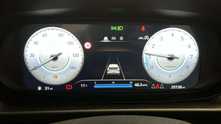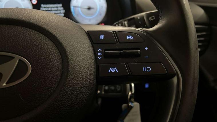 10.25" digital supervision cluster, 2nd Gen eCall, 8" Touchscreen with DAB, Apple car play/Android Auto, Cruise control + speed limiter, Forward collision assist with car, pedestrian and cycle detection, Intelligent speed limit warning, Lane follow assist, Lane keep assist, PAS, Rear parking sensor, Rear view camera with dynamic guidelines, USB C port front, 3rd brake light, Dusk sensor, Electric adjustable heated door mirrors, Front grille mesh pattern design, High beam assist, LED daytime running lights, LED Headlights, LED taillights, Rain sensor, Rear side wing doors, Rear wiper, Repositioned flat metal hyundai emblem, 3 seat bench in 2nd row, Adjustable head restraints, Air conditioning, Cloth upholstery, Floor mats, Leather steering wheel, Single front passenger seat, 3x3 point rear seatbelts, ABS with front and rear diagonally split, Autonomous emergency braking, Child locks on rear doors, Front ventilated disc brakes, Rear solid disc brakes, Tyre pressure monitoring system, 16" alloy wheels, Tyre repair kit,