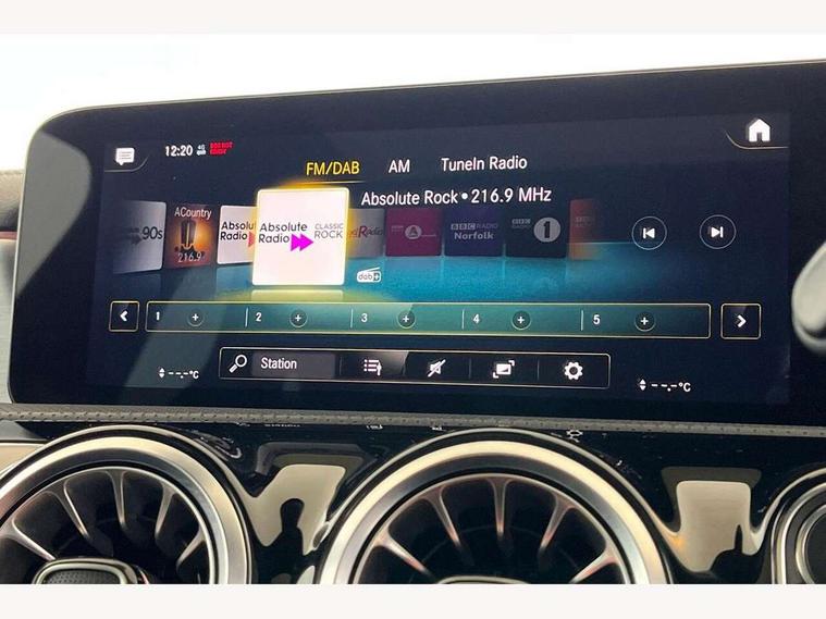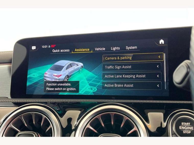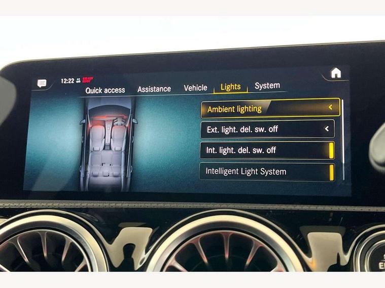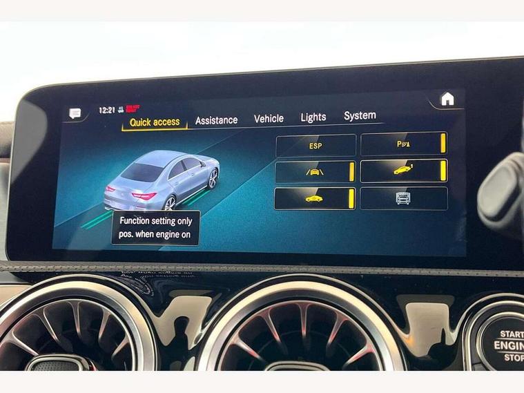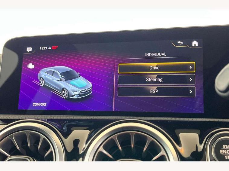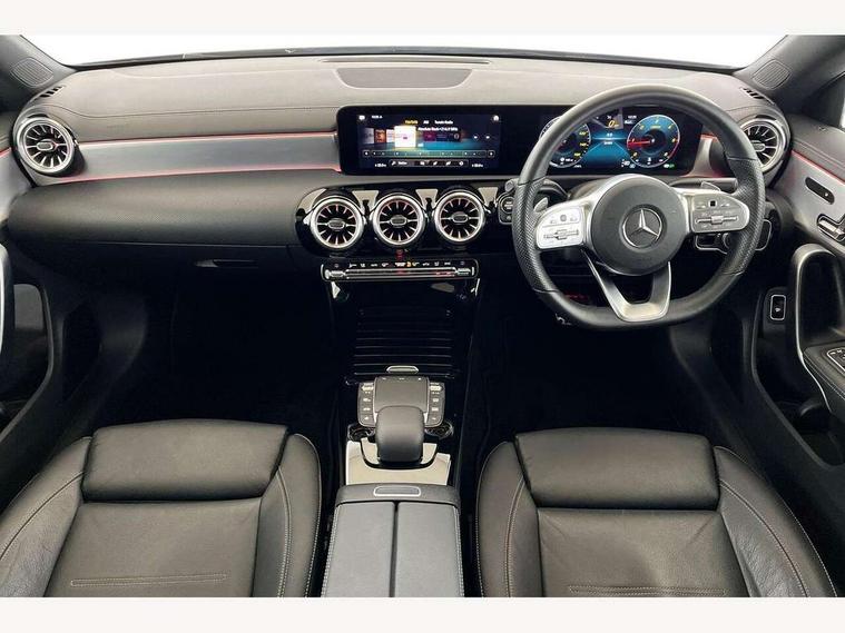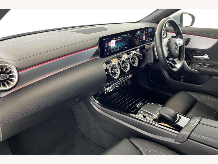 10.25 inch Instrument display with digital cockpit, 10.25 inch touchscreen central media display, Attention assist - Monitors steering behaviour and long journey fatigue, Bluetooth connection, Car wash mode, DYNAMIC SELECT with a choice of driving modes (ECO, Comfort, Sport and Individual), ECO start/stop function, Fluid level warning indicator for fuel, oil, coolant and washer fluid, Hard-disk navigation, Hey Mercedes Voice activation, Lamp failure indicator, Mercedes me connect including emergency call system, accident recovery, breakdown and maintenance management, Mercedes me remote services, Outside temperature gauge, Owners manual and service booklet in English, Pre-installation of private car share, Preinstallation for Mercedes Benz link, Radio aerial integrated into front and rear windshields, Service indicator (ASSYST), Smartphone integration with Apple CarPlay and Android auto, Traffic sign assist, Trip computer in multifunction display with current consumption indicator, Lowered comfort suspension, Rear axle multi-link, DAB digital radio tuner, MBUX multimedia system with DAB digital radio and touchpad including satellite navigation, Mercedes Benz sound system (100 W) with 6 speakers, USB (type C) ports (2) in stowage compartment and 1 in front of centre console, Adaptive brake lights, AMG body styling with AMG front apron and rear apron and visible exhaust tailpipe in chrome trim elements, AMG bodystyling side skirts, Body colour bumpers, Body colour door handles, Chrome beltline strips, Chrome weather strip, Diamond radiator grille pins in chrome with silver painted louvres and chrome insert, Electric panoramic sliding sunroof, Electric windows, Electrically adjustable and heated door mirrors with integrated LED indicators, Exhaust system with 2 Visible tailpipe trim elements and rear apron with trim in chrome, Headlamp assist automatic headlamp activation, Heated glass rear windscreen + timer control, High level LED third brake light, Integrated LED daytime running lights, Interior mirror with black reading lamps and frameless, LED tail lamp, Multibeam LED headlamps with adaptive highbeam assist plus, Privacy glass with dark tinting on rear side windows and rear window, Rain sensing windscreen wipers with two sensitivity settings, Rear fog lamp, Window line trim strip in chrome, 3 spoke flattened bottom nappa leather multifunction steering wheel with perforated leather in grip area, 40:20:40 split folding rear seat backrests, Air conditioning - Two zone thermotronic luxury automatic climate control with display, Air vents with surround in silver chrome, Automatic child seat recognition sensor, Black roof lining, Brushed stainless steel sports pedals with rubber studs, Electrically adjustable front memory seats including lumbar support, Floor mats with stitched AMG lettering, Front centre armrest with stowage, Galvanished gear shift paddles on steering wheel, Heated front seats, Illuminated front door sills with changeable cover, Illuminated glove compartment stowage, Interior lighting - 64 colour Ambient lighting, Luggage net on driver/front passenger seat backrest, Manually height and reach adjustable steering column, Rear armrest with two integral cup holders for drinks, Rear head restraints, Sport seats with fixed head restraints, Stowage compartment in centre console with retractable cover, Sunvisors with illuminated vanity mirrors, Touchpad on center console, Twin front cupholders, Two outer rear seat isofix and top tether child seat fixing points, Light and sight pack - CLA, Mirror pack - CLA, Parking package - CLA, Seat comfort pack - CLA, Active bonnet pedestrain safety measure which detects an impact and raises bonnet by 65mm, Adaptive brake assist with hold function and hill start assist, Anti-lock braking system (ABS), Black seat belts, Bonnet with power domes, Brake pad wear warning indicator, Childproof locks manually operated for rear doors and electrically operated for rear power windows, Crash responsive emergency lighting, Driver and front passenger head and sidebags, Driver and front passenger windowbags, Drivers knee airbag, Dual stage driver and front passenger airbags, Electric parking brake, Electronic stability programme with acceleration skid control, ESP curve dynamic assist, Front and rear seatbelt reminder, Front passenger seat occupancy sensor, Three point rear seat belts, Tyre pressure monitoring system, Warning triangle and first aid kit, Remote central locking and crash sensor with emergency opening function, Urban guard vehicle protection system with immobiliser and interior protection, Light aluminium with longitudinal grain interior trim, 18" 5 twin spoke design alloy wheels painted in titanium grey with high sheen finish, Summer tyres, Tirefit tyre sealant kit,