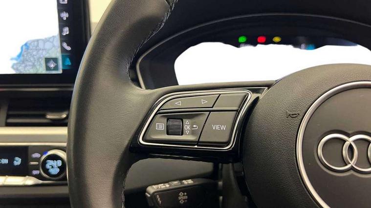 Audi connect safety and service (e-call), Audi connect with Amazon Alexa Integration, Audi drive select, Audi smartphone interface, Audi virtual cockpit, Automatic start-stop system with coasting functionality and efficiency programme, Bluetooth interface, Cruise control system with speed limiter, Electromechanical power steering, Email, calendar and text messages displayed via MMI, MMI Navigation plus with MMI touch includes 10.1" high resolution colour MMI display, 3D map, Power operated tailgate, Voice control system, 54 litre fuel tank, Comfort dynamic suspension, 2 USB charging ports, 8 passive loudspeakers, DAB digital radio reception, Auto dimming rear view mirror, Body colour door handles, Body colour side sill trim, Body coloured door mirrors, Electrically folding auto dimming/adjustable/heated door mirrors with LED side indicators and kerb view function for passenger side, LED headlights and rear lights with LED daytime running lights, LED third brake light, Matt aluminium silver tailpipe trim, Privacy glass, Rain and light sensors, Rear diffuser in matt titanium black with trim strip in matt aluminium silver, Rear side wing doors, Rear wiper, Sport front and rear bumpers with side skirts, Variable intermittent front wash/wipe, Windscreen with acoustic glazing, 3 spoke high multi-function leather sport steering wheel with paddle shift and height and reach adjustable, 4 way electric lumbar support for driver and front passenger, 40/20/40 split folding 3 rear seat bench in 3 parts with rear centre armrest, Deluxe 3 zone electronic climate control, Door sill trims with aluminium inlay, Electric load area cover, Front and rear head restraints, Front centre armrest, Heated front seats, ISOFIX child seat mounting and top tether, Manual seat adjustment, Single front passenger seat, Twin leather upholstery + front sports seats, Black styling pack - A4 Avant Sport Edition/S4 Black edition/S4 Vorsprung, High gloss package - A4, LED Interior light pack - A4/S4, 3 rear seatbelts, 6 airbags - Driver, front passenger, curtain and side windows, Electronic Stabilisation Control (ESC) including ABS, ASR and EDL, Hill hold assist, Multi collision brake assist, Pop-up bonnet for pedestrian protection, Pre sense city, Rear door child safety locks, Seatbelt monitoring, Warning triangle and first aid kit, Anti theft alarm, Anti theft wheel bolts, Central locking, Keyless Go, Aluminium ellipse silver inlays, 18" 10 spoke dynamic design alloy wheels, Tool kit, Tyre repair kit,
