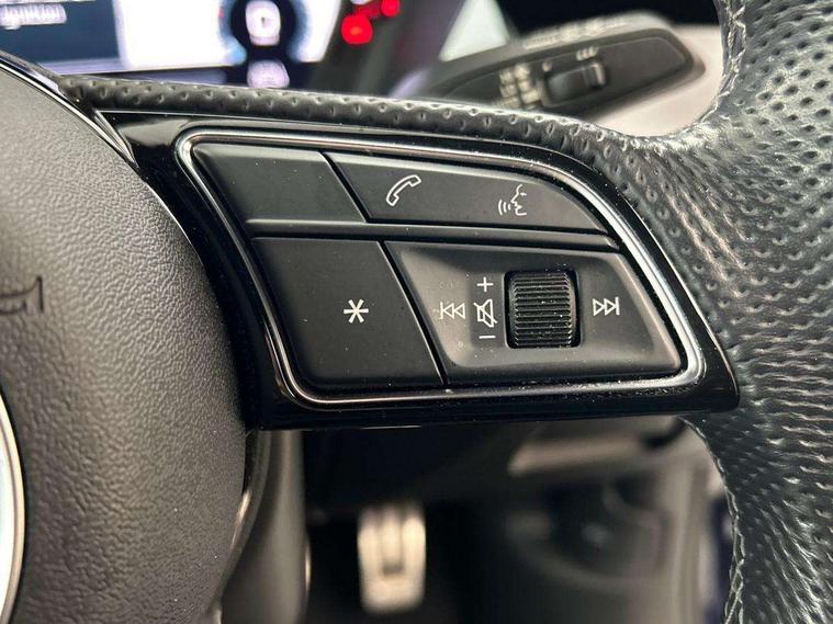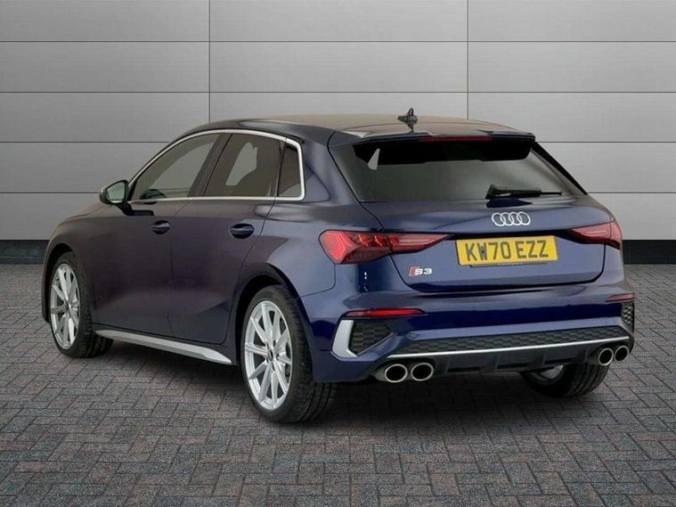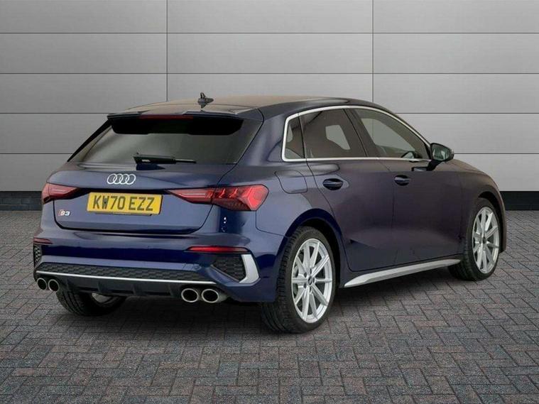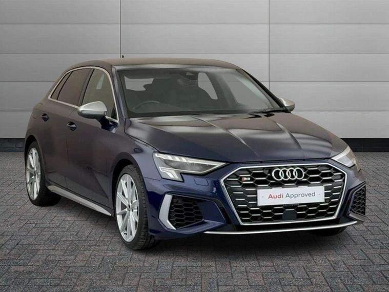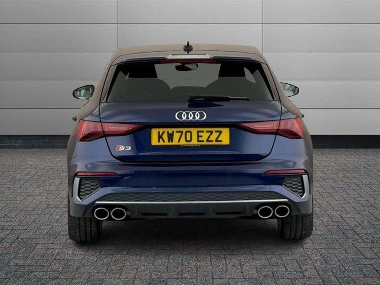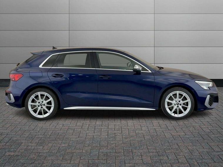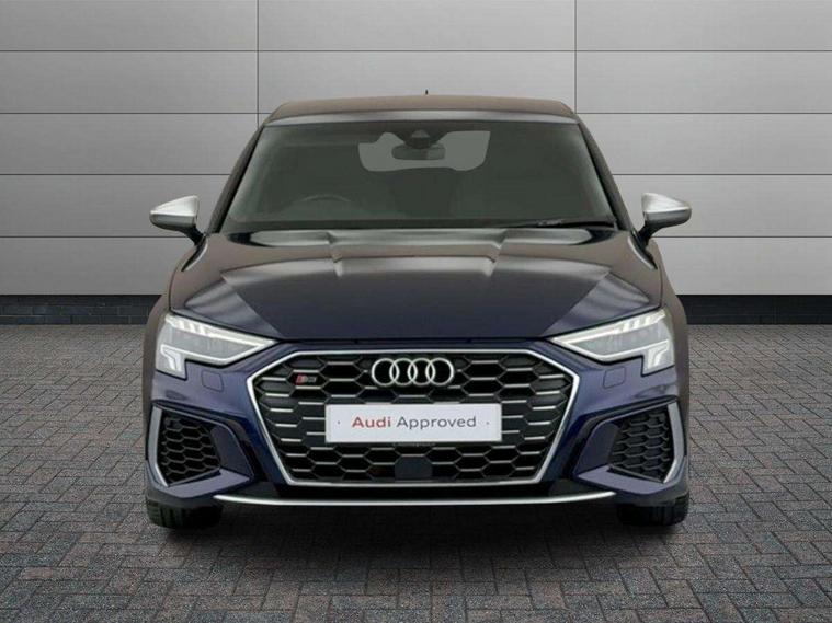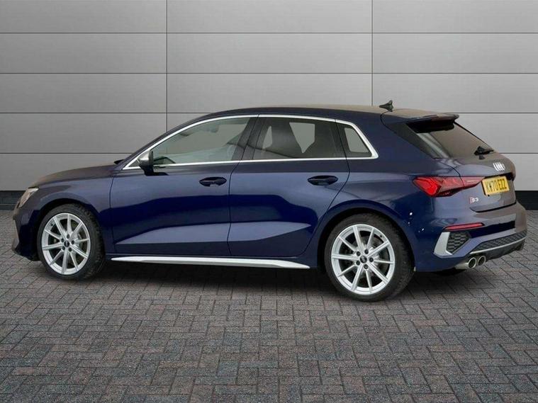 Audi connect emergency call and service, Audi drive select (Auto, Comfort, Dynamic, Efficiency and Individual), Audi smartphone interface, Audi Virtual Cockpit - 10.25" digital and colour instrument cluster, Automatic start/stop system with recuperation, Bluetooth interface, Collision avoidance assistant, Lane departure warning system, MMI Navigation Plus with high resolution 10.1" colour touch screen display, Progressive steering, Service indicator, Trip computer, Voice control system with natural language interaction, Quattro permanent all wheel drive, S sports suspension, 2xUSB-C connection with data and charging functions, 6 passive loudspeakers, DAB Digital radio, Acoustic glass windscreen, Aluminium window trim, Audi Beam uses LEDs to project the Audi S3 logo, Auto dimming frameless rear view mirror, Dual branch oval twin tailpipes in chrome plated finish, Exterior mirror with aluminium look housing, Front electric windows, Illuminated aluminium inserts front door sills with S logo, LED daytime running lights, Light and rain sensors, Privacy glass - dark tinted rear window, rear door and side windows, Rear electric windows, Rear side air outlets in grained matt black, Rear wiper, 12V socket and storage compartment in front centre console, 3 spoke flat bottomed multifunction plus sports contour leather wrapped steering wheel with shift paddles, 40/20/40 split folding rear seat bench with cupholder, Black cloth headlining, Dual zone electronic climate control, Front and rear centre armrest in leather, Front and rear headrests, Front/rear floor mats, Heated front seats, Height and reach adjustable steering wheel, Interior lighting - glove compartment light and right hand side, Luggage compartment floor covering, Seat side bolsters, Stainless steel pedals and front footrest, Aluminium interior elements pack - A3 Sportback, Design body styling - A3 Sportback, Storage pack - A3 Sportback, 3x3 point rear seat belts, Driver and front passenger airbag with passenger airbag deactivation, Electronic Stabilisation Control (ESC) including ABS, ASR and EDL, First aid kit with warning triangle and 2 safety vests, Front side airbags with head airbags and interaction airbag, Hill hold assist, Pre-sense front with pedestrian and cyclist detection, Seatbelt monitoring, Tyre pressure loss indicator, Anti theft alarm, Anti-theft wheel bolts, Electronically operated child lock, Immobiliser, Remote control central locking, Accent surfaces in the dashboard and centre console in platinum grey silk effect paint finish, Dark spectrum aluminium inlays,