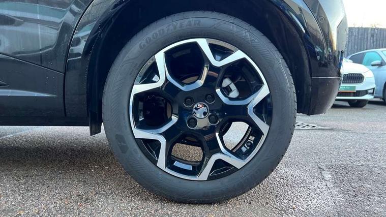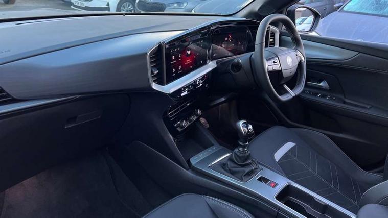 10" digital instrument cluster, Active drive assist, Adaptive cruise control, Digital instrumentation with digital speedometer, rev counter, fuel and water temperature gauge, Driver attention alert, Driver drowsiness alert system, Driver information display with multi function trip computer, audio info, digital clock and outside air temperature with ice warning function, Front and rear parking distance sensors, Lane keep assist system (LAS) with Lane departure warning system (LDWS), Lights on audible warning, Panoramic rear view camera, Power assisted speed sensitive steering, RDS with traffic programme, Side blind spot alert and flank guard, Speech recognition, Start/stop system, Vauxhall connect with e-Call, WiFi connectivity, Wireless phone projection with Apple CarPlay and Android Auto, Sports chassis, 2 rear USB connection, 6 speakers, AM/FM stereo radio with 36 station presets, DAB Digital radio, Front USB connection, Mobile phone portal - bluetooth connect, vehicle microphone, handsfree calls, SMS read out and reply, phone book access, Multimedia pure panel navigation system with 10" colour touchscreen and 15W wireless charger, Steering wheel mounted controls, Adaptive brake lights, Automatic headlamp levelling, Automatic lighting control with tunnel detection, Black DLO, Black door mirror housings, Black Griffin logo and vizor frame, Black lettering and emblems, Black upper window moulding, Body colour door handles, Body colour front and rear bumpers, Body colour skid plates, Dark tinted rear side windows, Electrically adjustable and heated door mirrors, Electrically foldable door mirrors, Electrically operated front and rear windows with safety auto reverse and one touch up/down facility, Electrochromatic frameless auto dimming rear view mirror, Hazard warning lights, Heated rear window+rear wash/wipe, High gloss black front and rear bumper inserts, High gloss black painted claddings, lower grille and front lateral inserts, High gloss black painted lateral moulding, Integrated black tailgate spoiler, IntelliLux matrix headlights with advanced forward lightning and anti glare beam, LED 3rd brake light, LED daytime running lights, LED side repeat indicators, Rain sensitive windscreen wipers, Rear side wing doors, Reversing light, Shark fin antenna, Solar heat absorbing windscreen and windows, Windscreen and side window demist vents, 12V Accessory socket, 3 seat bench in 2nd row, 4 speed fan with illuminated controls, 4 way electrical driver lumbar adjustment, 6 way adjustable front passenger seat including height adjustment, 60/40 split folding rear seat, Air recirculation system, Ambient lighting, Black headliner, Cabin particulate filter - removes dust, airborne particles and pollen, Chrome effect interior door handles, Door pockets with two litre capacity, Driver and passenger heated seats, Driver and passenger sun visors with vanity mirror, Driver seat massage function, Electronic climate control (ECC), Four adjustable facia vents, Four load restraint lashing eyes, Front centre armrest with storage, Front driver and co-driver side articulated grab handles, Front head restraints, Front map reading lights, Front seat back storage pockets, Fully carpeted load area, Heated steering wheel, Interior courtesy light, Interior tailgate handle, Luggage compartment cover, Luggage compartment lighting, Moveable boot floor, Reach + rake adjustable steering column, Rear Reading Lamps, ReNewKnit fabric/leather upholstery, Single front passenger seat, Three height adjustable rear seat head restraints, Twin gas assisted tailgate struts, 2x Isofix child seat fitting on outer rear seats, 3x3 point rear seat belts, Anti-lock braking system (ABS), Child proof locks on rear doors, Cornering brake control, Deactivation switch for front passenger front and side impact airbags, Drag torque control, Driver and front passenger airbags, front seat side impact airbags, full size curtain airbags, Electronic brake force distribution, Electronic Stability Programme (ESP), Emergency brake assist, Enhanced automatic emergency braking with pedestrian and bicycle detection, Forward brake assist, Forward collision alert at all speed, Hill start assist, Inertia reel lap and diagonal seatbelts for all seats, Manual parking brake, Seatbelt unfastened audible warning and warning light, Straight line stability control, Traction control, Tyre pressure monitoring system, Electronically protected audio equipment, Engine deadlock immobiliser, Freewheeling door locks, Key left in ignition audible warning, Keyless entry and start, Locking wheel nuts, Remote control central locking, Remote control ultrasonic security alarm system, Visible vehicle identification number, Black facia with silver trim insert, Light grey trim inserts on front doors, Vegan door inserts, 18" Black diamond cut alloy wheels,