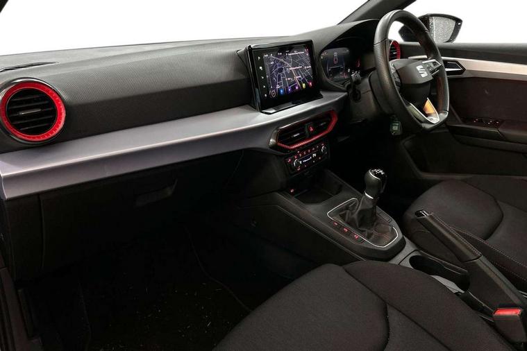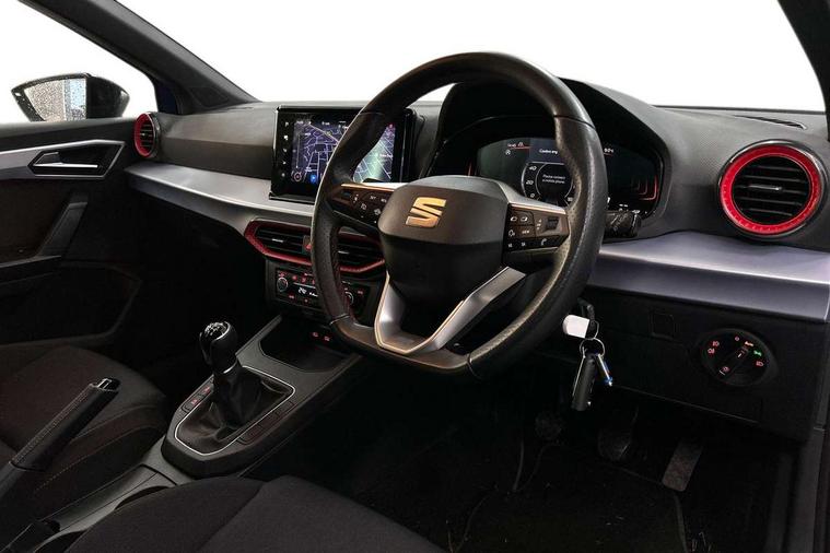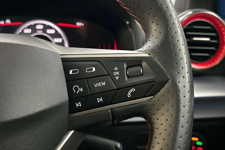 'Lights On' Reminder warning buzzer, 8" Digital cockpit, 9.2" touchscreen navigation system with type C USB socket, Voice control and DAB/AM/FM radio, Auto start and stop system, Bluetooth audio streaming with handsfree system, Digital clock, E-call, Full link smartphone integration with mirror link, wireless apple carplay, Google android auto + USB Type C cable for apple and android devices, Lane assist, Low fuel warning light, Outside temperature gauge, Power Steering, Seat connect with safety, service, remote and online, SEAT drive profiles and ECO function, SEAT logo boot release, Speed limiter, Trip computer, Sports suspension, Auxiliary input socket, Radio/MP3 player, SD card slot, Steering wheel mounted controls, Anti theft roof antenna, Auto dimming rear view mirror, Automatic rain sensing wipers, Black door mirrors, Body colour bumpers, Body colour door handles, Brilliant black window surrounds, Dark tinted rear windows, Electric adjustable/heated/folding door mirrors, Electric front windows, Electric headlight adjustment, Electric rear windows, Front/rear fog lights, FULL LED automatic headlights with dynamic headlight range control, coming and leaving home, LED daytime running lights, LED tail lights, Rear roof spoiler with FR twin exhausts, Rear side wing doors, Rear wiper, Third brake light, 3 seat bench in 2nd row, 60/40 split folding rear seat, Ambient interior lighting, Chrome detailing and black headlining, Cloth upholstery, Dual zone climate control with combination filter, Front courtesy lights, Front cupholders x 2, Front reading lights, Gear shift indicator, Glovebox, Height adjustable front and rear headrests (five), Height adjustable front seats, Height/reach adjust steering wheel, Illuminated air vent surrounds, Illuminated boot, Instrument lighting with brightness control, Isofix, Leather multifunction flat bottomed sports steering wheel, Passenger sunvisor, Single front passenger seat, Sports seats, Sunvisors with mirror and driver side card holder, 3 point seatbelts on all 3 rear seats, ABS, Active front headrests, Child locks on rear doors, Electronic stability control, Energy recovery system, Front assist forward collision warning and autonomous emergency braking, Front driver and passenger side airbags with curtain airbag and front passenger airbag deactivation, Hill hold control, Multi-Collision braking, Seat belt reminder for front and rear seats, Tiredness recognition system, Tyre pressure monitoring system, Electronic engine immobiliser, Locking wheel bolts, Perimeter alarm and interior monitoring with backup horn and tow away protection, Remote central locking + deadlocks, 17" Alloy wheels in Brilliant silver,