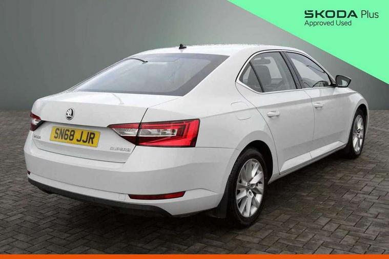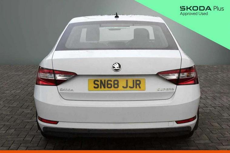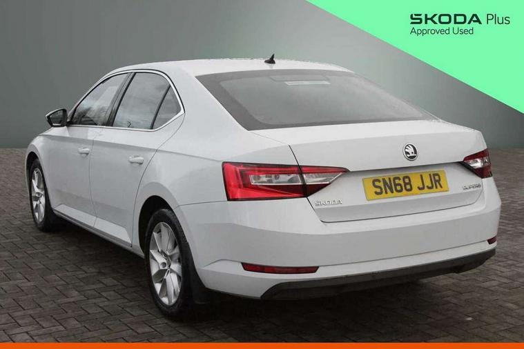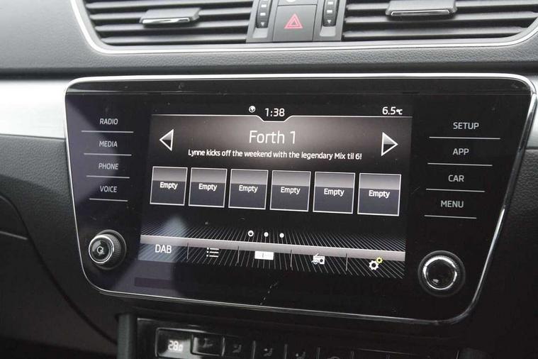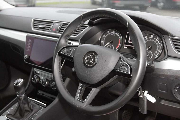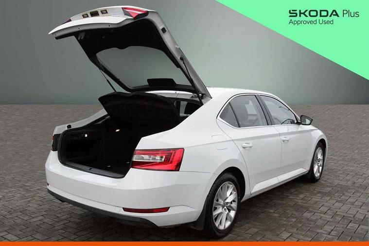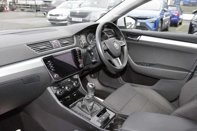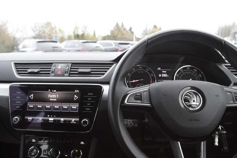 Adaptive cruise control, Bluetooth system, CareConnect and Emergency Call, Driver fatigue sensor, Electromechanical power steering, External temperature gauge, Front assist including automatic braking function, Remote fuel cap release, Service interval indicator, Speed warning indicator, Stop/start engine system and energy recovery, Voice control system, XDS+, DAB Digital radio, In-car voice enhancement, Aero wiper + intermittent function, Auto dimming rear view mirror, Body colour bumpers, Body colour door mirrors and handles, Chrome plated radiator grille, Cornering front fog lights, Electrically folding door mirrors with illuminated boarding spots, Front and rear electric windows, Fuel filler cap, Heated/electric door mirrors with integrated indicators, LED brake lights, Rain sensor, 12v power point in centre console, 12V power point in luggage area, 3 rear height adjustable headrests, Auxiliary heater, Front armrest with storage box, Height adjustable drivers seat, Height adjustable front and rear head restraints, Height adjustable passenger seat, Height/reach adjust steering wheel, Illuminated air conditioned glovebox, Illuminated luggage compartment, Interior lights with control switches, Isofix child seat fittings on outer rear seats, Leather gearknob and handbrake lever, Manual lumbar support, Overhead glasses storage compartment, Rear centre armrest with cupholders, Removable LED light in boot, Removable rear parcel shelf, Split folding rear seats, Ticket holder, Umbrella compartments in front doors with umbrellas, Small Leather pack - Superb, 3 point height adj front seatbelts + pretensioners, 3 rear 3 point seatbelts + pretensioners, 7 airbags - Front, front side, curtain, driver's knee airbag with front passenger deactivation switch, Door open warning, Driver and passenger seatbelts with warning light, Electronic parking brake, ESC including ABS, EBV, MSR, ASR, EDS, HBA, DSR, RBS, CBC, multi-collision brake (MKB) and Auto hold, Rear door child safety locks, Tyre pressure monitor, Alarm with interior monitoring tilt sensor and back up horn, Electronic engine immobiliser, Remote central locking with SAFE system,
