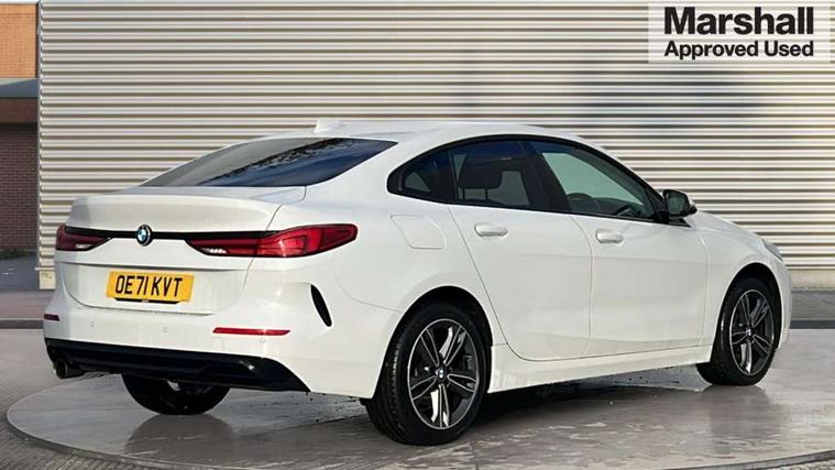 Active guard plus, Attentiveness assist, Auto start-stop, Bluetooth hands free facility with USB audio interface + WiFi interface for wireless connection of mobile terminal devices + audio streaming, BMW Intelligent Personal Assistant, BMW Live Cockpit Professional with 10.25" high resolution instrument and control display, BMW Online services, BMW operating system with 7.0 mid interface, BMW Teleservices, Check Control warning system for monitoring of lights and door/luggage compartment open warning, Cruise control with braking function, Electric Power Steering (EPS) with Servotronic, iDrive controller with 7 short cut favourite buttons on centre console, Integrated navigation data with map data via USB +features such as 3D landmarks and micro city models, Integrated owners handbook, Intelligent voice assistant, Lane departure warning system, On board computer - average speed+fuel consumption, service interval, clock/date, odometer/trip meter, outside temperature display and ice warning, Optimum shift indicator, Personal Profile, Pull away assistant, Speed limiting function, Aluminium lightweight construction, Balancer shaft, Double VANOS, Drive performance control with ECO PRO comfort + sport mode, Dual clutch automatic transmission, Electronic differential lock, High precision injection, Performance Control, Petrol Particulate Filter, Suspension with twin tube gasfilled shock absorbers, Anti roll bars, single joint front axle kinematics to minimise drive + Rigidly mount rear subframe, VALVETRONIC engine management, 2x USB Type C ports (for charging and data transfer), 4G LTE Connectivity with hard wied 4G network sim card, DAB digital radio, MP3 players and RDS double tuner, Active aerodynamics, Automatically dimming rear view mirror, Body colour door handles, Body colour mirror caps, Chrome exhaust single tailpipe, round, Direction indicator side lights integrated exterior mirrors, Electric windows - front and rear, with open/close fingertip control and trap release, Fading support, Follow me home headlights, Front and rear bumper system with replaceable deformation elements, Front bumper in Body colour with exclusive Sport air inlets finished in High gloss Black, Front door sill finishers in black plastic with BMW designation, Heated, electrically adjustable exterior mirror aspheric on driver side, convex on passenger side, High gloss black B pillar finish, High gloss shadow line exterior trim, High level third brake light, Kidney grille with 14 chrome high gloss black vertical bars, LED daytime running lights, LED front fog lights, Lightweight engineering, Model designation on right side of tailgate, Preparation for high beam assistant, Rain sensor with automatic headlight activation, Rear boot, Rear bumper in Body colour with exclusive Sport design elements finished in High gloss Black, Rear fog lights, Rear side wing doors, Reversing light in rear light cluster, Welcome lighting, 12V power socket in centre console, 2 cupholders in front centre console, 3 rear seat head restraints, 3 rear seats, 3 spoke sports leather steering wheel and black leather rim with black stitching + decorative finisher in pearl chrome, Anthracite finished floor mats with contrasting surround, Automatic two zone climate control air conditioning, Child seat ISOFIX attachment for two outer rear seats and front passenger seat with anchorage points, Conditioned based service, Front and rear door pockets including bottle trays, Front and rear side armrests integrated into door trim, Front armrest foldable with integrated storage compartment, Front centre interior light over interior mirror and rear centre automatic interior light when door is opened/ignition switched off or via remote key, Front head restraints, Front passenger seat, Front sports seats with electric side bolster adjustment, Glove compartment, Glovebox with light, Luggage compartment lighting, Manually adjustment steering wheel column, Multi-function controls for steering wheel, Sun visors with vanity mirrors and insert tab, Through loading system with 40/20/40 split folding rear seat, Two lashing eyes, Connected pack professional - 2 Series Gran Coupe, Extended storage pack - 2 Series Gran Coupe, 2 tone horn, Airbag - Front driver and passenger, front and rear head, front side, curtain head protection, manual deactivation of front passenger airbag possible, Anti lock braking system (ABS) with cornering brake control, BMW emergency call, Brake drying, Braking readiness, City braking function, Crash sensor activating of airbags, Unlocking doors, hazard warning lights, interior light, safety battery terminal, Dynamic stability control + (DSC+), Dynamic Traction Control - DTC, Electrically operated hand brake, Rear brake discs, Rear child proof door locks, Seat belt security check for driver and front passenger, Seatbelt warning, Side impact protection, Three point seat belts on all seats including front belt stopper, pyrotechnic belt tensioners and belt force limiters, Trailer stability control, Tyre pressure monitoring system, Ventilated front disc brakes, Warning triangle and first aid kit, Central locking switch for all doors, fuel filler cap and luggage compartment, Deadlocking function system to all doors, Drive away locking system on all doors and luggage compartment, Locking wheel bolts, Start/Stop button (illuminated) in centre console with keyless engine start and Auto Start-Stop deactivation button, Thatcham Cat.1 alarm and immobiliser, Two remote control key with integrated key - one button for open and close doors/fuel flap/tailgate and separate button for unlock luggage compartment, Contrast stitching on instrument panel, Illuminated Berlin interior trim, Reduced rolling resistance tyres,