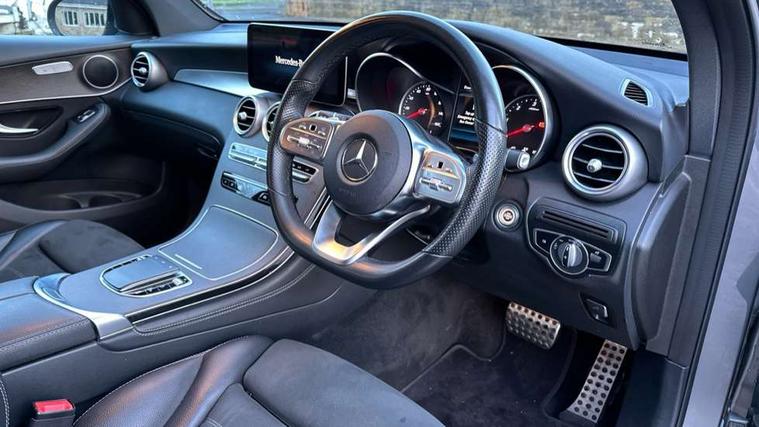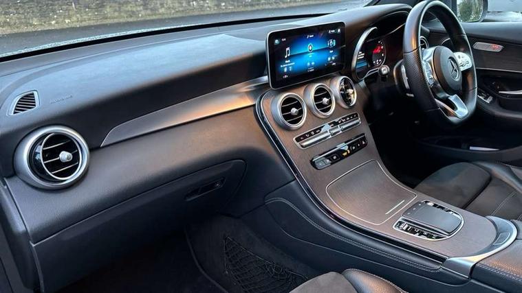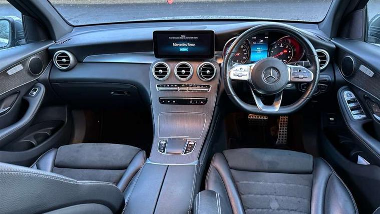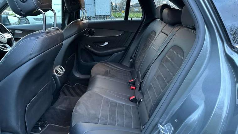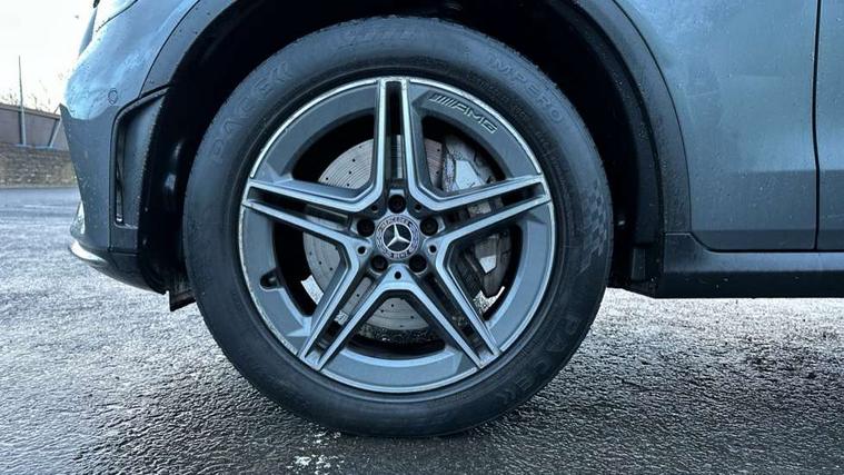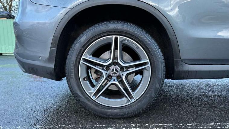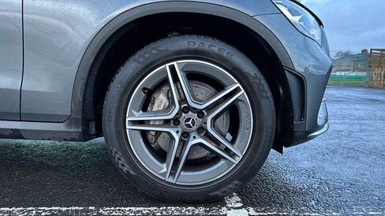 Active parking assist with parktronic system, Attention assist, Bluetooth interface for hands free telephone, Collision prevention assist plus, Cruise control with speedtronic variable speed limiter, DYNAMIC SELECT with a choice of driving modes (ECO, Comfort, Sport, Sport+ and Individual), ECO start/stop function, Hard disk navigation, Hey Mercedes Voice activation, Instrument cluster with 5.5-inch TFT multi-function display, MBUX Interior assistant, Mercedes connect me with remote online services, Multi function trip computer, Outside temperature display, rear seatbelt status indicator, Power opening/closing tailgate, Remote boot release, Reversing camera, Service indicator (ASSYST), Speed sensitive steering, 50 litre fuel tank, Diesel particulate filter, Sports suspension tuned for improved handling and driving dynamics, 5 speakers, DAB Digital radio, Frontbass loudspeakers, MBUX multimedia system with DAB digital radio and touchpad including satellite navigation, Media display 10.25-inch touchscreen display, Pre installation for Mercedes Benz Link, USB ports x 2 in centre console, Adaptive brake lights, Aluminium roof rails, AMG bodystyling - AMG front apron with sporty air intakes and chrome trim element, AMG diffuser-look rear apron with insert in black, Body colour door mirrors, Body coloured bumpers, Electric windows one touch open/close, Electrically adjustable and heated door mirrors, Exhaust tailpipe finisher, Front and rear exterior chrome trim, Headlamp assist automatic headlamp activation, LED high performance headlamps with integrated LED daytime running lights, LED tail lamp, Privacy glass (to rear of B post), Radiator diamond grille, Rain sensor windscreen wipers, Range adjustable headlights, Rear wiper, Tinted glass all round, Two chrome plated tailpipe trim elements, 2 way rear head restraints, 3-spoke multifunction AMG steering wheel in black nappa leather with flattened bottom section, chrome inserts and perforated leather in grip area, 40:20:40 split folding rear seats, AMG floor mats with edging and embroidered AMG lettering, AMG sports seats, Artico leather with Dinamica microfibre upholstery, Automatic child seat recognition sensor, Automatic climate control, Black roof lining, Dividing net - rear, Double cup holder in centre console, Front armrest with storage box, Front door sills with Mercedes Benz lettering, Front seats with electric adjust (backrest, height and seat cushion inclination) with 4 way electric lumbar support and manual cushion depth adjust, Gearshift paddles, Heated front seats, Height/reach adjustable steering column, Illuminated and lockable glove compartment, Rear top tether child seat ISOFIX attachment, Sports pedals with stainless steel surfaces and rubber studs, Sunvisors with illuminated vanity mirrors, Easy-pack load compartment cover, Interior lighting pack - GLC, Mirror pack - GLC, Storage pack - GLC, 3 rear 3 point seatbelts, Active bonnet, Adaptive brake system with HOLD function and brake drying in the wet, ASR, Black seat belts, Brake calipers with Mercedes-Benz lettering + perforated brake discs, Child proof door locks, Dual-stage airbags - driver and front passenger, driver knee bag and window bags for driver, front passenger and rear passengers, Electronic parking brake, Electronic stability programme (ESP) with curve dynamic assist and cross wind assist, Front and rear seatbelt reminder, Front passenger seat occupancy sensor, Hill hold function, Tyre pressure monitoring system, Warning triangle and first aid kit, Alarm system/interior protection/immobiliser, Automatic door locking, KEYLESS-GO starting function, Remote central locking, Open pore grey oak trim, 19" AMG 5 twin spoke alloy wheels painted tremolite grey with high sheen finish and tirefit,