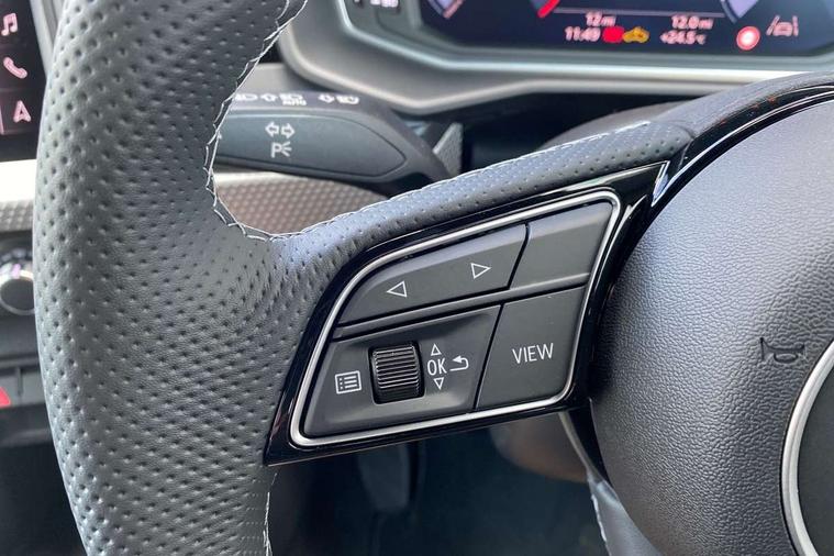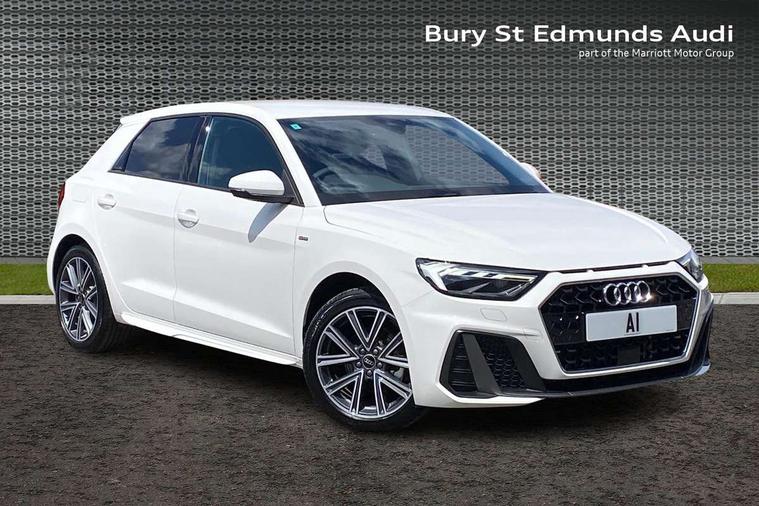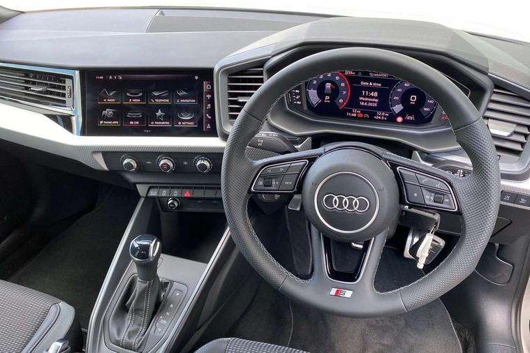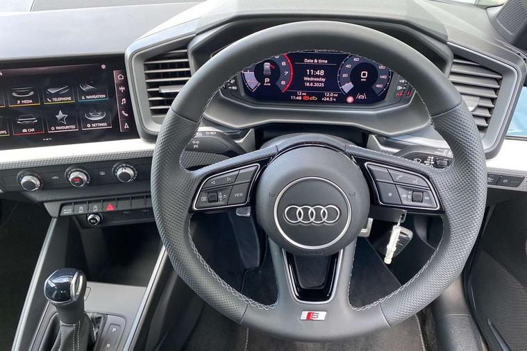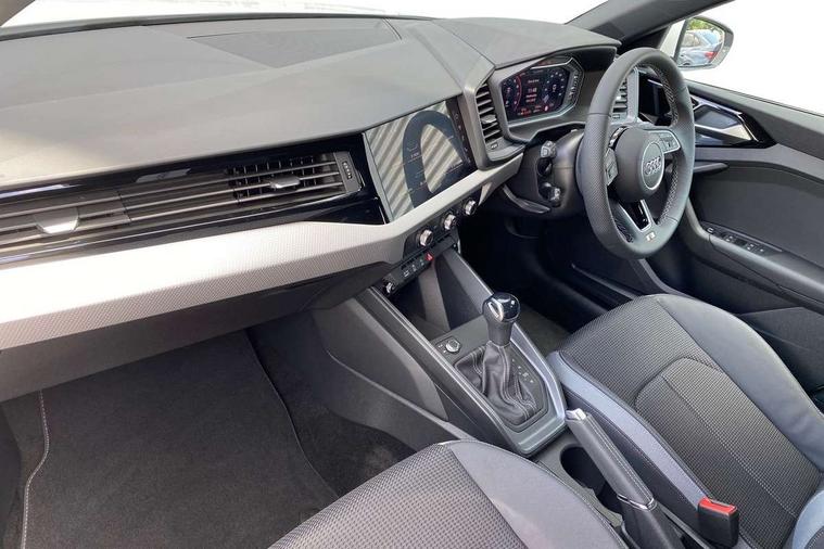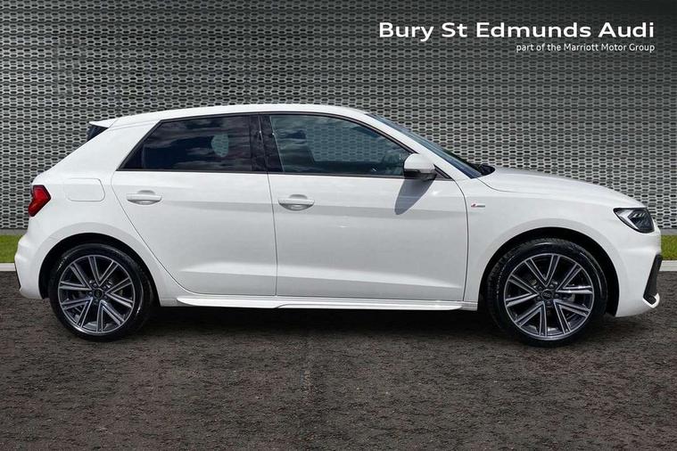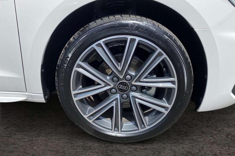 10.25" Digital instrument cluster display screen, Audi connect safety emergency and service including E-call, Audi drive select, Audi smartphone interface, Automatic start/stop system, Bluetooth interface, Driver's information system, Electromechanical power steering, Lane departure warning system, Service interval indicator, Speed limiter, Voice control system, Washer fluid level indicator, 1 x SDXC card reader, 1 x USB type C and 1 USB type A charging points, Audi music interface, Bluetooth audio streaming, DAB Digital radio, MMI radio plus with 8.8" colour MMI display screen and MMI touch, Adaptive brake lights, Auto dimming rear view mirror, Body colour side sill mouldings, Body coloured bumpers, Body coloured door mirrors, Door sills with aluminium inlays and S Line logo, Electric front and rear windows, Front side air inlets in grained matt black and C frame in titanium black, Heat insulating glass windscreen and side windows, Heated rear windscreen, LED headlights with LED rear lights + dynamic rear indicators, Matt aluminium silver tailpipe trim, Matt black radiator grille frame, Matt platinum grey in front spoiler clip and rear diffuser clip, Rain and light sensors, Rear fog lights, Rear wiper, S line badges on front wings, S line exterior bumpers, S line roof spoiler, Side air inlet frames titanium black, Side front spoiler lips in grained matt black, 12V socket in centre console with two cup holders, 3 rear seats, Black cloth headlining, Driver and passenger seat with manual height adjust with forward and backwards adjustment, Front and rear black floor mats with contrast stitching in fine silver, Front head restraints, Height and reach adjustable steering wheel, ISOFIX child seat mounting in front passenger and rear outer seats, Leather gear knob with aluminium trim, Leatherette handbrake grip, Luggage compartment light with front and rear reading lights, Lumbar adjustment for front seats, Rear head restraints, Split folding rear seats, Stainless steel pedals, 3x3 point rear seatbelts, Brake assist function, Driver and front passenger airbag with front side and head airbags, Electronic Stability Control including ABS, EBD, ASR and EDL, Front and rear seatbelt reminder, Front passenger airbag deactivation switch, Hill hold assist, Seatbelt height adjustment for front seats, Seatbelt monitoring, Tyre pressure warning light, Warning triangle and first aid kit, Anti theft alarm, Anti theft wheel bolts and loose wheel warning, Audi pre-sense front with pedestrain and cyclist recognition, Immobiliser, Remote central locking with 2 remote folding keys, Aluminium trim for control switches, air vents and digital instrument cluster, Silver grey inlays polygon structure in diamond paint finish, Structured grey accent areas including air vents, door handle recesses and centre console in quartz paint finish,