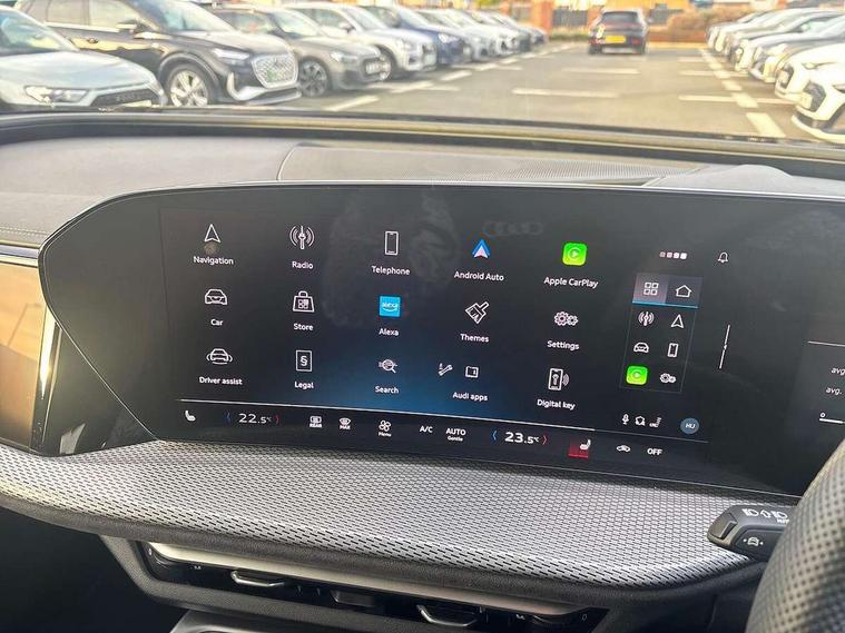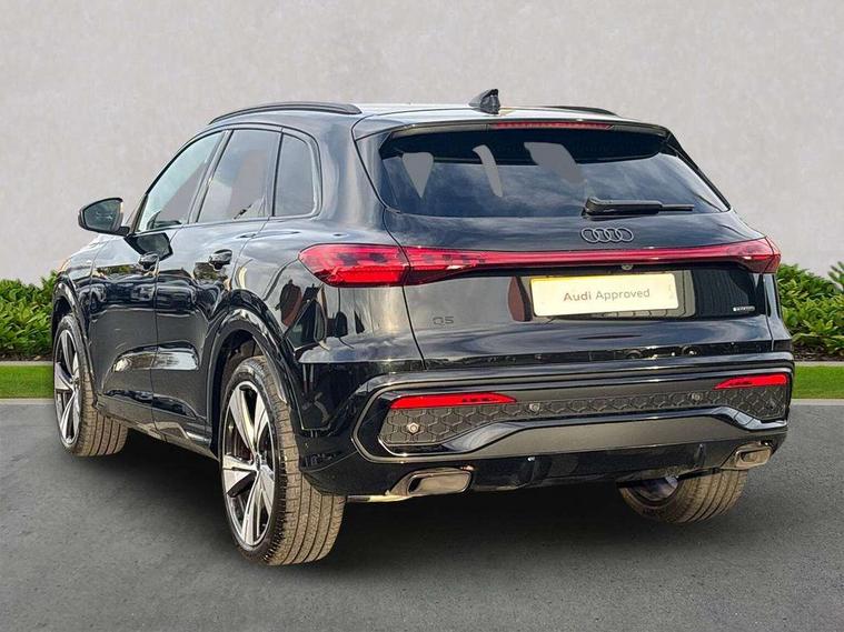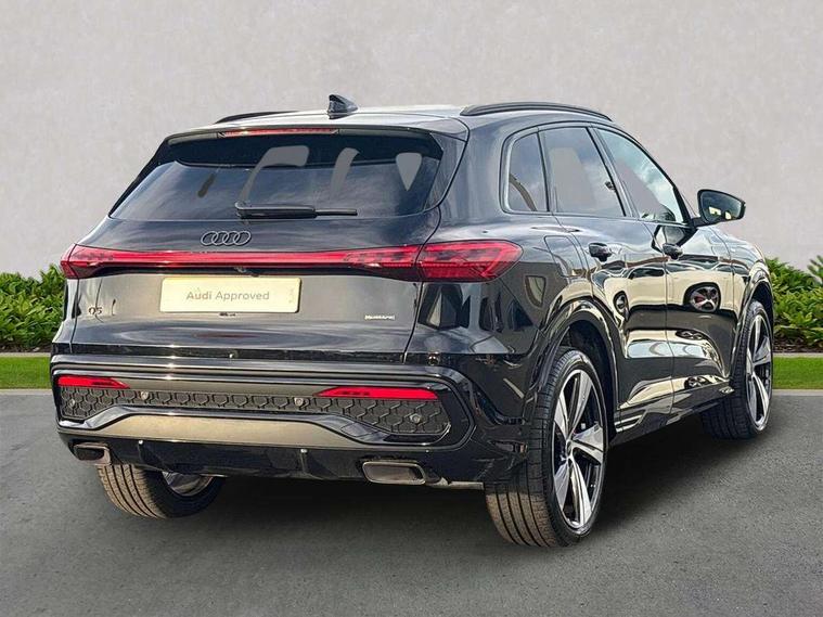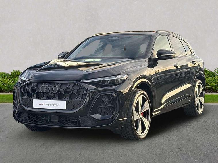 Adaptive cruise control, Advanced driver attention alert, Audi application store, Audi connect emergency call and service, Audi drive select, Audi smartphone interface, Audi virtual cockpit plus with 11.9" OLED colour display, Camera based traffic sign recognition, Fatigue monitor, Front cross traffic intersection assist, Lane change assistant with exit warning system, rear cross traffic alert and rear turn assist, Lane departure warning with emergency assist, MMI 10.9" front passenger touch display, MMI navigation plus with high resolution 14.5" OLED touchscreen colour display, Park assist plus, Parking system plus with 360 display, PAS, Reversing camera, Swerve assist and turn assist, Top view camera, Traffic sign based speed limiter, 2 USB-C ports in both the front and rear, Audi sound system impressive sound with 8 loudspeakers including centre speaker and subwoofer, 6-channel amplifier with a total output of 180 watts, DAB Digital radio, Smartphone compartment with wireless charging, Active digital light signatures - Six additional combinations of active daytime running light signature, Auto dimming rear view mirror, Black roof rails, Coming/leaving home lighting function, Electrically adjustable heated and folding + automatically dimming exterior mirrors, Exhaust tailpipes in dark chrome, Front and rear electric windows, Front door sill trims with aluminium inlays, illuminated with 'S' logo, Full body paint finish, Grill frame, inlay and front air inlets in matt anthracite chrome, Headlight cleaning system, Heated rear window, High beam assist, High gloss window surrounds, LED rear lights pro incl. dynamic rear indicators and illuminated light strip with animated coming and leaving home function, Logo projection light in exterior mirrors, Matrix LED headlights, Memory function for door mirrors, Privacy glass, Projection third brake light for rear window in LED, Radiator grille in phantom black, Rear and side windows with heat insulating glass, Rear honeycombe grille in matt black with inlay in matt anthracite chrome, Rear side wing doors, Rear wash/wipe, S Line badge on the front wings, Towbar preparation, Windscreen with acoustic glazing, 3 rear head restraints, 3 seat bench in 2nd row, 3 spoke leather steering wheel with multi-function buttons with touch control, flattened on top and bottom, with S badging and contrast stitching, 4 way electric lumbar support for driver and front passenger, 40:20:40 split folding rear seat bench with centre armrest and cup holders, Comfort centre armrest, Deluxe 3 zone electronic climate control, Dinamica microfiber/leather upholstery with diamond stitching, Electrically adjustable front seats with memory function for driver's side, Front and rear floor mats, Front sport seats with integrated head restraints, Headlining in black cloth, Heated front seats, i-Size child seat mounting on the front passenger side and outer rear seats, i-Size and top tether on the outer rear seats, Interior trim in aluminium look, Luggage compartment lid, electrically opening and closing, Manual steering column adjustment, S embossed logo on front sport seats, Single front passenger seat, Softwrap in Dinamica, Stainless steel pedals and footrest, Steering wheel grips in perforated leather and shift paddles, Ambient lighting package plus - Q5, Black styling package plus - Q5, Storage and luggage compartment pack - Q5, 3x3 point rear seatbelts, ABS, Acoustic vehicle alerting system, Convenience key with safelock, Driver and front passenger airbag with passenger airbag deactivation, Electric child safety locks, First aid kit with warning triangle and high visibility vests, Front emergency brake assist, Front side airbags with head airbag system and front interaction airbag, Hill hold assist, Occupant detection in rear seat area, Proactive passenger protection system for front, sides and rear, Red brake calipers, Side airbags in front and rear with head airbag system and front interaction airbag, Tyre pressure loss indicator, Anti theft alarm, Anti-theft wheel bolts, Remote control key with SAFELOCK and keyless go, Accent surfaces and control buttons in gloss black, Black dashboard with contrast stitching, Steel grey seat stitching, Upper and lower interior elements in dinamica microfiber, Tyre repair kit,