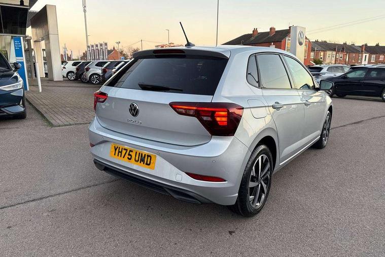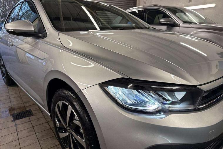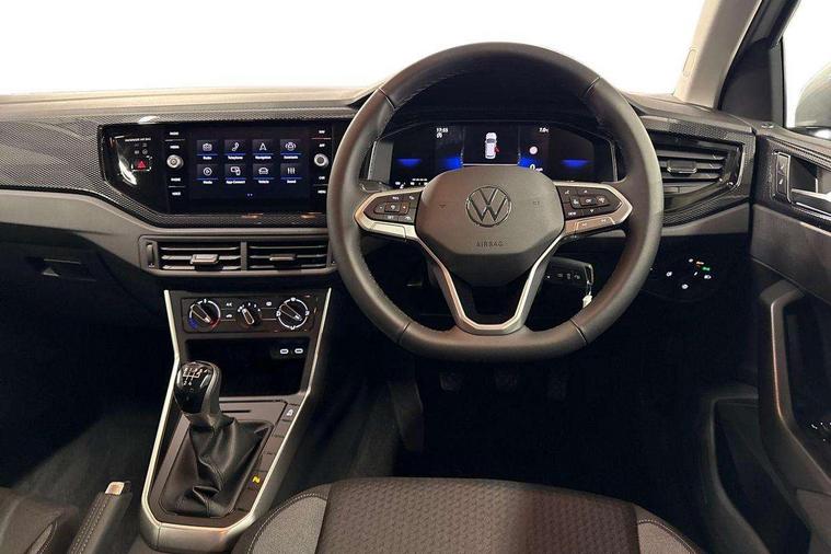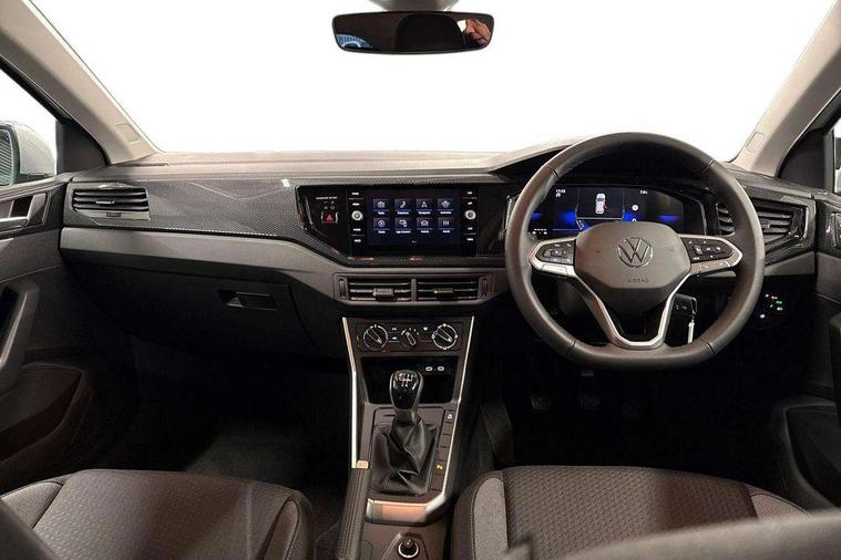 Adaptive cruise control without follow-to-stop and speed limiter, Advanced driver attention and drowsiness monitor, Bluetooth mobile phone interface, Dynamic road sign display, Emergency call service, Multifunction front facing camera for distance control, Power assisted speed sensitive steering, Preparation for navigation system with media and internet package, Preparation for We connect and We connect plus, Rear view camera, Speedo and rev counter, electronic odometer, trip, service interval display and exterior temperature gauge, Standard rear axle, Travel Assist - Lane keeping system and traffic jam assist, Travel assist including emergency assist, Trip computer, Warning signal and warning light for front and rear seatbelts not fastened, Washer fluid level indicator, Wireless app connect, Front wheel drive, Rear shock absorpion, Start-stop system with battery regeneration (recuperation - energy recovery during braking), DAB Digital radio, Diversity antenna for FM reception, Automatic dimming interior rear view mirror, Automatic headlight control with LED separate daytime running lights with coming/leaving home function, Body colour bumpers with chrome inserts, Body colour door handles, Body colour door mirrors, Electric front windows, Engine badge deletion, Headlight range adjustment, Heat insulating and laminated safety glass windshield, LED Headlights, LED rear combination lamps, Power folding adjustable/heated exterior mirrors and front passenger exterior mirror lowering function, Rain sensor, Rear electric windows, Rear fog light, Rear side wing doors, Rear tinted glass from B-pillar backwards approx 65% tinted, Rear windscreen washer and wiper with interval delay, Third brake light, 12V power socket in centre console, 2 front and 2 rear reading lights with switch off delay and dimmer, 2 USB-C ports in the front, 2 USB-C charging sockets on the center console in the rear, 3 rear head restraints, 60/40 split folding rear seat and rear seat bench not split, Ceramique roof lining, Chrome plated radiator grille inserts, air vent surrounds and light switch surrounds, Door and side trim panel, Driver and front passenger seat height adjustment, Driver/passenger sunvisors with illuminated vanity mirrors, Front centre armrest, Front seat backrest storage pockets, Front standard seats, Handbrake lever handle in leather, Hartley/Thomas cloth upholstery, Headliner in recycled material, Isofix child seat preparation easy-fit (for two outer rear seats, and front passenger seat) compatible with I-size, Leather trimmed gear knob, Luggage compartment cover, Luggage compartment lighting, Removable luggage compartment floor, Single front passenger seat, Standard climatic zones, Standard pedal cluster, Three spoke leather wrapped multifunction steering wheel, Light and vision pack - Polo, 3 point height adj front seatbelts + pretensioners, 3 point seat belt for centre rear seat, 3 point seatbelts, outer rear with ECE lable, ABS, Driver and front passenger airbag with front passenger airbag deactivation, Drivers and front passengers safety optimised head restraints, ESC (Electronic stability control) + EDL (Electronic Differntial lock) and ASR (Traction control), Extended and predictive pedestrian/ cyclist protection, Front assist with autonomous emergency braking (for Adaptive Cruise Control ACC up to 130 mph), Front curtain and side airbags with center airbag, Front disc brakes, Hill hold control, Manual child lock in rear doors, Rear drum brakes, Single tone horn, Tyre pressure loss indicator, Alarm with interior protection, Anti-theft alarm system with interior monitoring, backup horn, and towing protection, Anti-theft wheel bolts, Electronic engine immobiliser, Lava stone black gloss/matt decorative inserts in dash and front door panels, 16" Torsby alloy wheels, Low rolling resistance tyres,