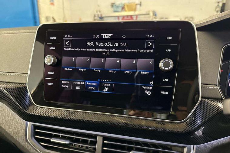 'Lights On' Reminder warning buzzer, 10.25" Digital cockpit pro, Advanced driver attention and drowsiness monitor, Blind spot monitoring, Car information display, Driver profile selection including ECO function, Dynamic road sign display, E-Sim card for online connectivity, eCall emergency call system, Front and rear parking sensors, Front assist, forward collision warning, autonomous emergency braking and speed limiter, Low washer fluid warning light, Multifunction computer with visual gear change recommendation for fuel consumption, Multifunction front facing camera for distance control, Operating permit alteration, Power assisted steering, Predictive adaptive cruise control, Preparation for navigation system with media and internet package, Preparation for We connect and We connect plus, Semi-automated driving assistance, travel assist including lane keeping system Lane Assist and emergency assisst, Speedo, rev counter, electronic odometer, trip, service interval display, exterior temperature and fuel gauge, Warning sound and light for doors and tailgate open, Warning sound and light for front seatbelts unfastened, Wireless Car net app connect with Apple CarPlay, combined functionality of Apple CarPlay/Android Auto and MirrorLink, Wireless charging, Misfuel prevention device, Start-stop system with battery regeneration (recuperation - energy recovery during braking), 2 USB C ports in front, 2 USB charging sockets on the centre console in the rear charging capacity upto 45W, Diversity antenna for FM reception, Music playback - MP3, WMA and AAC files, Radio, Automatic dimming interior rear view mirror, Automatic hazard lights activation under emergency braking, Automatic headlight control with LED separate daytime running light and coming home and leaving home feature, Body colour door handles, Body colour door mirrors, Body coloured bumpers, Dynamic headlight range control with self adjusting whilst driving, Electric folding door mirror, adjustable, heated with front passenger exterior mirror lowering function, Exterior mirrors convex on the left and aspherical on the right, Front and rear electric windows, Front door sill protectors with R-Line logo, Galvanised body, Heat insulating and laminated safety glass windshield, Heat insulating darkened glass in side and rear windows, High Beam Assist, automatic sensing for switching between dipped and main beam, LED rear combination lights, LED third brake light, Lower door sills and door pillars in black, Privacy glass for rear side windows and rear window, Rain sensor, Rear fog light on one side, reversing light on both sides, Rear side wing doors, Rear window aerial, Rear window wiper with intermittent control, Reflectors in all doors, Scuff plates, Tailgate with integrated roof spoiler, 12V Accessory socket in centre console, 2 Front and rear reading lights incorporating LED technology, 3 rear head restraints, 3 seat bench in 2nd row, 60/40 split folding rear seat backrest, Air care climatronic 2 zone air conditioning system, Ambient lighting, Brushed stainless steel pedals, Chrome plated radiator grille inserts, air vent surrounds and light switch surrounds, Cloth upholstery, Comfort front sport seats, Door and side trim panel, Drawer under drivers seat, Driver and front passenger sunvisor with vanity mirror, Dust and pollen filter, Front + rear carpet mats, Front centre armrest with storage compartment, Front footwell illumination, Front seat back storage pockets, Glove compartment door with light, Heated front seats, Heating and fresh air system with 4 stage blower, Height/reach adjust steering wheel, Instrument lighting white adjustable panel illumination, Interior light with switch off delay and dimmer, Isofix anchors for child seats on outer rear seats and front passenger seats, Leather gearshift handle, Leather wrapped multifunction steering wheel, Luggage compartment floor, Luggage compartment lighting, Manual front seats with height adjustment, Padded dashboard, Removable luggage compartment cover, Single front passenger seat, Storage compartment in drivers and front passengers door, Titanium black roof lining, Unsplit sliding rear seat bench, 3 point outer rear seat belts with ECE label, 3 Point seatbelt for centre rear seat, Anti-lock Braking System (ABS) with Hydraulic Brake Assist (HBA), Automatic post collision braking system, Disc brakes in front, Disc brakes in rear, Driver and front passenger safety-optimised head restraints, Drivers and Front Passengers airbags with front passengers airbag deactivation switch, ESC with EDL and ASR (traction control), Extended and predictive pedestrian/cyclist protection, Front and rear passenger curtain airbag system including front side airbags, Height adjustable front 3 point seatbelts + pretensioners, Hill start assist, Pre crash preventive occupant protection, Proactive passenger protection system in combination with front assist, Rear door child safety locks, Rigid safety cell with front and rear crumple zones, Single tone horn, Tyre pressure loss indicator, Volkswagen roadside assistance, Alarm with interior protection, Anti theft alarm system, Electronic engine immobiliser, Remote tailgate unlocking using key fob, Titanium Black Decorative inserts - R Line, Low rolling resistance tyres,