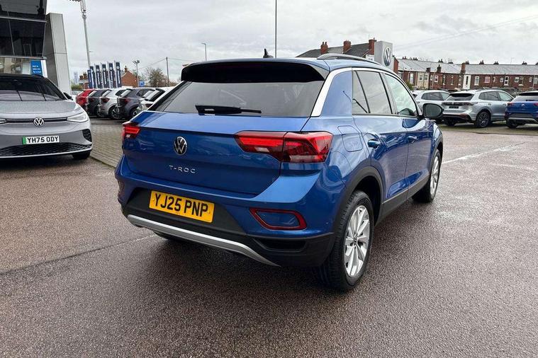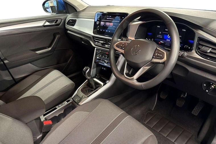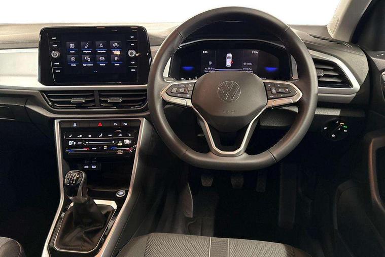 Advanced driver attention and drowsiness monitor, Dynamic road sign display, Emergency call service, Lane keeping system Lane Assist, Mobile phone interface, Modified key software - reduce switch off time for key status change to Long no motion, Online services, Park assist including front and rear parking sensors, Power assisted speed sensitive steering, Rear view camera, Service interval indicator, Tailgate/trunk lid release from outside, Think blue trainer driver tips and journey analysis, Warning sound and light for front seatbelts unfastened, Wireless app connect, Battery regeneration during braking, Front shock absorption, Rear shock absorption chassis with increased ride height, Start/stop function with battery regeneration, DAB Digital radio, Diversity antenna for FM reception, Music playback - MP3, WMA and AAC files, Premium USB cable in choice of either Apple or Android smartphone compatibility, SD card slot, Simultaneous pairing of 2 compatible mobile devices, Title and cover art display, We Connect and We Connect Plus functionality, Auto dimming interior rear view mirror, Automatic hazard lights activation under emergency braking, Automatic headlight control with LED separate daytime running lights with coming/leaving home function, Black roof rails, Body coloured bumpers and radiator grille with chrome trim and front fog lamps with chrome bezel, Body coloured exterior mirror housings and door handles, Electrically adjustable and heated door mirrors, Extended roof spoiler, Exterior mirrors aspherical on driver side, convex on front passenger side, External USB type C socket and charging sockets, Front windscreen wiper with intermittent wipe and 4 position delay, Heated rear window, LED 3rd brake light, LED rear combination lamps, LED rear number plate lights, Power windows with comfort operation and circuit breaker, Privacy glass for rear side windows and rear window, Rain sensor, Rear exhaust tailpipe, Rear fog light on one side and reversing lights on both sides, Rear side wing doors, Rear wash/wipe with intermittent wipe setting, Remote electrically foldable door mirrors, puddle lights and reverse activated passenger's door mirror, 12V power socket in centre console, 3 rear head restraints, 3 seat bench in 2nd row, 4 load lashing points in luggage compartment, Air care climatronic air conditoning system with active combination filter and 2-zone temperature control, Black stitching for floor mats, Ceramique roof liner, Cloth upholstery, Door and side trim panel in cloth, Drawer under drivers seat, Driver/front passenger seat height adjustment, Front centre armrest, Front comfort sports seats, Front cupholders x 2, Front reading light, Front seat back storage pockets, Glove compartment door with light, Instrument lighting, white adjustable panel illumination, Interior ambient lighting and surround lighting, Interior light delay, Isofix child seat preparation, Leather gearshift handle, Load-through provision with cup holder when folded down ('Unsplit rear seat bench, split folding backrest, with centre armrest), Luggage compartment lighting, Lumbar support for driver's and front passengers seat, Non-folding front passenger seat backrest, Single front passenger seat, Storage compartment in left and right luggage area, Storage compartment in rear doors, Storage compartments in driver and front passenger doors, Sunvisors with illuminated vanity mirrors, Variable boot floor, height adjustable and removable, Driver assistance pack without proactive passenger protection - T-Roc Life/Match, 3 point height adj front seatbelts + pretensioners, 3 point seatbelts in outer rear with ECE label, ABS, Child locks on rear doors, City emergency braking and pedestrian monitoring, Driver and front passenger airbag with front passenger airbag deactivation, Driver and front passenger safety-optimised head restraints, Drivers seatbelt reminder, Electronic parking brake, Electronic Stability Control (ESC) inc EDL (Electronic Differential Lock) and ASR (Traction Control), Front and rear passengers curtain airbag system including front side airbags, Front disc brakes, Hill start assist, Predictive pedestrian protection, Rear disc brakes, Two tone horn, Tyre pressure loss indicator, Volkswagen roadside assistance, Alarm with interior protection, Keyless locking and starting system keyless access with safelock, Pewter matt decorative inserts for intrument panel, centre console and door panels at the front, Trims for alloy wheels,