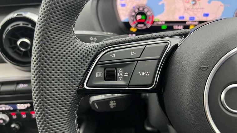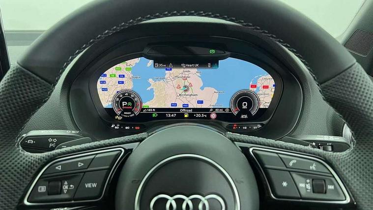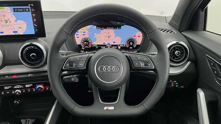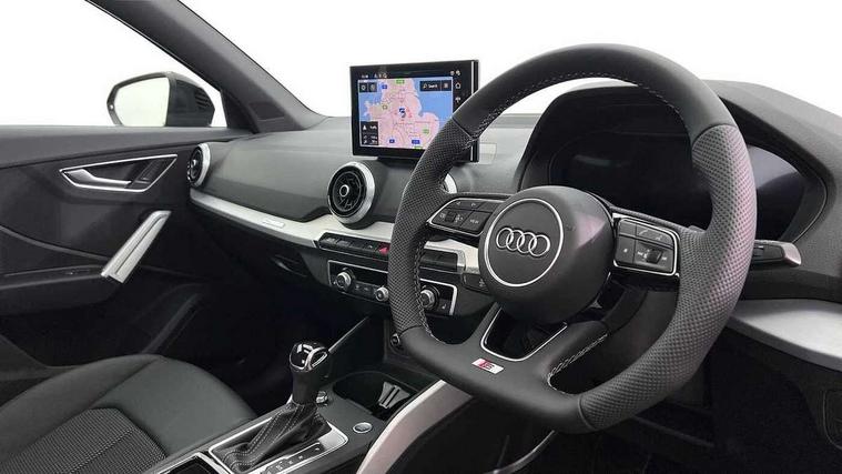 3D map display, Audi connect navigation and infotainment includes innovative services, Audi connect remote and control connects your vehicle to your smartphone, Audi drive select: S tronic - power steering assistance + engine + gearshift (modes: comfort, auto, dynamic, efficiency, individual), Audi smartphone interface - Apple carplay/Android Auto, USB connect, 2xSDXC card readers, voice control for navi, telephone, music and 3rd party apps, Audi virtual cockpit, Automatic start/stop system with recuperation, Bluetooth interface includes bluetooth audio streaming, Camera based traffic sign recognition, Cruise control, Distraction and Fatigue warning, E-call, Jukebox hard drive memory for music (10GB), Lane departure warning, MMI navigation plus with 8.8" touchscreen, Natural voice recognition, Power operated tailgate, Progressive steering, Rear parking sensors, Sport suspension, 6 passive loudspeakers, DAB Digital radio, USB type C port, Audi beam, Auto dimming rear view mirror, Black window trims, Bumper in full body colour paint finish, Electrically adjustable, folding, auto dimming and heated door mirrors with integrated LED side indicators, Front windscreen with grey tinted sunband, LED daytime running lights, LED headlights with dipped beam, high beam, position lights, indicators, LED rear lights, LED third brake light, Privacy glass - dark tinted rear and rear side windows from B-pillar backwards, Rear side wing doors, Rear wiper, Variable front intermittent wipers, Wheel arch trims in manhattan grey, 12V socket in front, 3 seat bench in 2nd row, 3 spoke flat bottomed multi-function leather sport steering wheel with gear shift paddles, 4-way electric lumbar support for front seats including manual seat height adjustment for both front seats, 60/40 split folding rear seat bench, Black carpets, Black cloth headlining, Front and rear head restraints, Front centre armrest, Front sport seats, Front/rear floor mats, Height/reach adjust steering wheel, Illuminated door sill trims with S logo, ISOFIX child seat mounting in front passenger and rear outer seats, Manual air conditioning, Single front passenger seat, Stainless steel pedals, Black styling pack - Q2, 3x3 point rear seatbelts, 6 airbags - Front, curtain and front side airbags, Electromechanical parking brake, Electronic stabilisation control including ABS, ASR and EDL, Front passenger airbag deactivation, Hill hold assist, Pre-sense front with pedestrian recognition, Seatbelt monitoring, Tyre pressure warning light with visual and acoustic warning, Warning triangle and first aid kit, Anti theft wheel bolts, Electronically operated child locks, Remote central door locking, Thatcham category 1 alarm, Aluminium interior element, Black dashboard, Gloss black centre console, Matt brushed aluminium trim inlays, Tool kit,