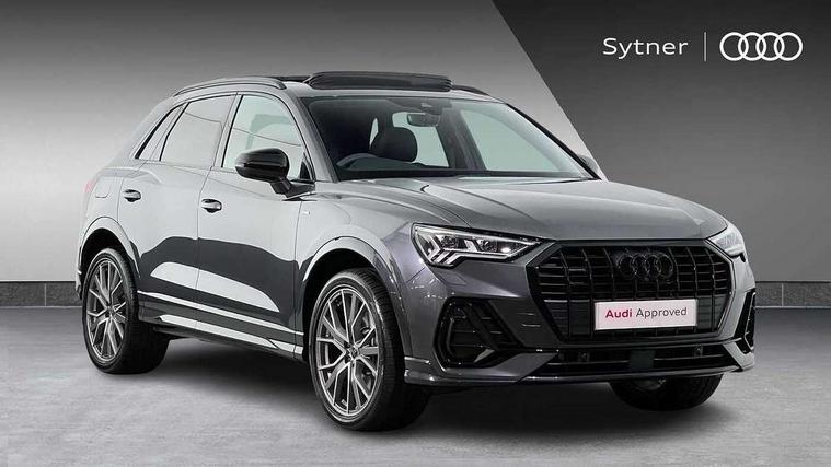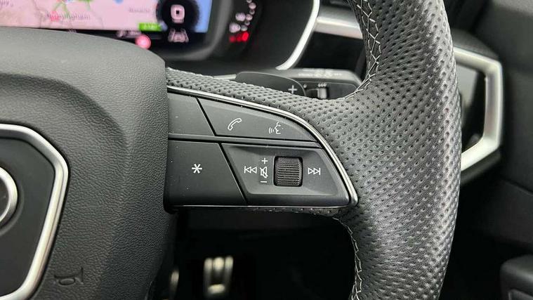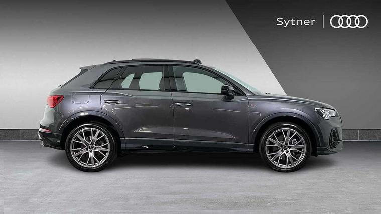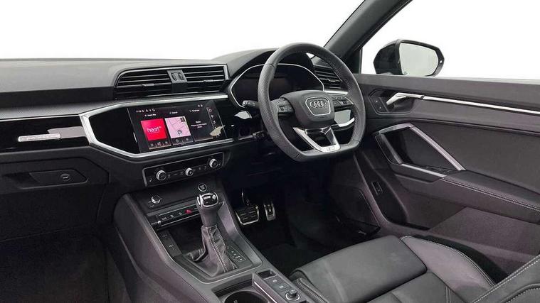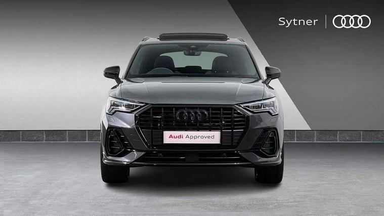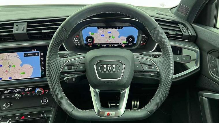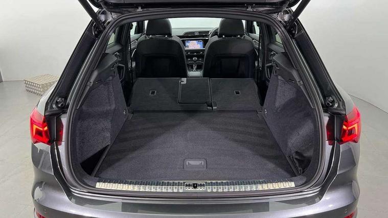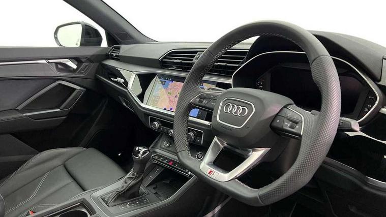 Amazon alexa Integration, Audi connect safety and service, Audi drive select, Audi lane departure warning, Audi Virtual Cockpit - 10.25" display, Bluetooth interface, Camera based traffic sign recognition, Distraction and Fatigue warning, Legal emergency call, MMI Navigation Plus with high resolution 10.1 inch touchscreen colour display, Power operated tailgate, Progressive steering, Service interval indicator, Smartphone interface includes wireless Apple carplay/Android Auto, Start stop system with recuperation, Voice control system with natural language interaction, Diesel particulate filter, Sports suspension, 2 USB-C ports with charge and data functions, 6 passive loudspeakers, DAB digital radio module, Acoustic windscreen, Audi Beam uses LEDs to project the Audi logo onto the ground as you exit your Q3, Auto dimming door mirrors, Auto dimming frameless rear view mirror, Black roof rails, Electrically folding, adjustable and heated door mirrors with integrated LED side indicators and kerb view function for passenger side, Front and rear electric windows, Front fog lights, Grille vertical bars in aluminium silver/Matt, High gloss black finish B and C pillars, LED Dynamic rear indicators, LED headlights with LED daytime running lights, LED rear lights, LED third brake light, Privacy glass dark tinted rear and rear-side windows (from B-pillar backwards), Rain and light sensors, Rear diffuser grille in grained matt black, Rear diffuser strip in matt anthracite black, Rear side wing doors, Rear wiper, S line bumpers in contrasting Manhattan grey, Variable front intermittent wipers, 12V socket in rear centre console, 3 seat bench in 2nd row, 40:20:40 folding with manual adjustment for 60:40 forwards/backwards position and backrest angle, Adjustable rear seat bench/backrest with centre armrest and cupholder, Black cloth headlining, Dual zone electronic climate control, Electric lumbar support, Front and rear black floor mats with contrast stitching in rock grey, Front and rear headrests, Front centre armrest, Height and reach adjustable steering wheel, Illuminated door sill trims with S logo, ISOFIX child seat mounting for front passenger with airbag deactivation and outer rear seat including top tether attachment point for outer rear seats, Manual front seats with height adjustment, Perforated leather gearknob, Single front passenger seat, Stainless steel luggage compartment sill finisher, Stainless steel pedals, Twin leather upholstery with front sport seats + S embossing, Black styling pack - Q3, Non smoking pack - Q3, 3x3 point rear seatbelts, 6 airbags - Driver, front passenger, curtain and side windows, Audi pre-sense front with pedestrain and cyclist recognition, Electrically operated child locks on rear doors, Electromechanical parking brake, Electronic stabilisation control including ABS, ASR and EDL, Front seatbelt reminder, Hill descent control, Hill hold assist, Pre sense basic, Seatbelt monitoring, Tyre pressure warning, Warning triangle and first aid kit, Anti theft wheel bolts, Immobiliser, Remote central locking, Thatcham approved category 1 anti theft alarm, Aluminium look interior elements, Detail dashboard around MMI touch colour display in glass look, black with surround in aluminium look, Leatherette door armrest, Piano black inlay,