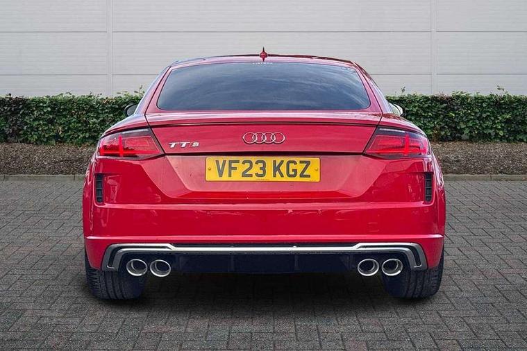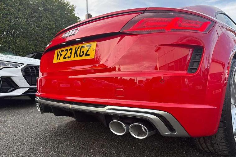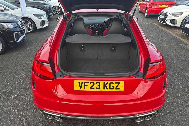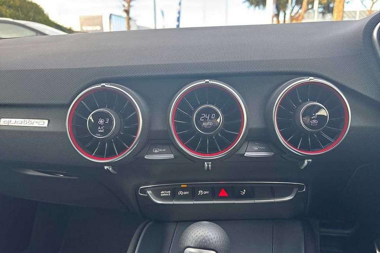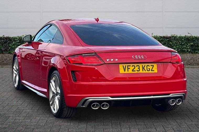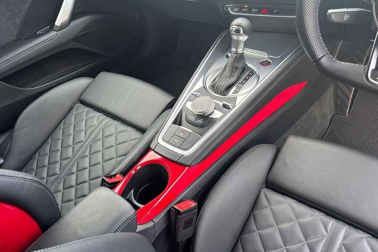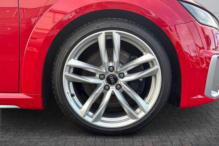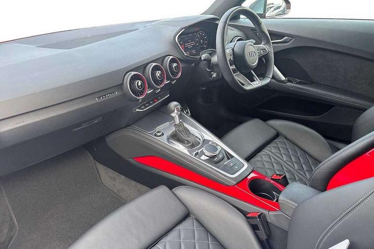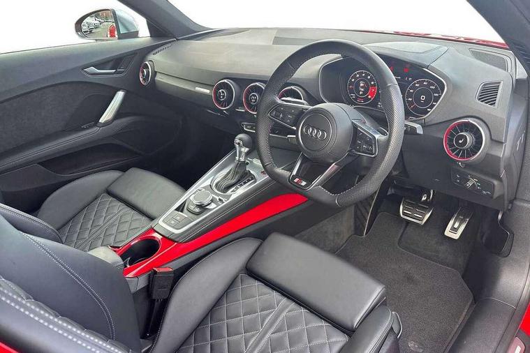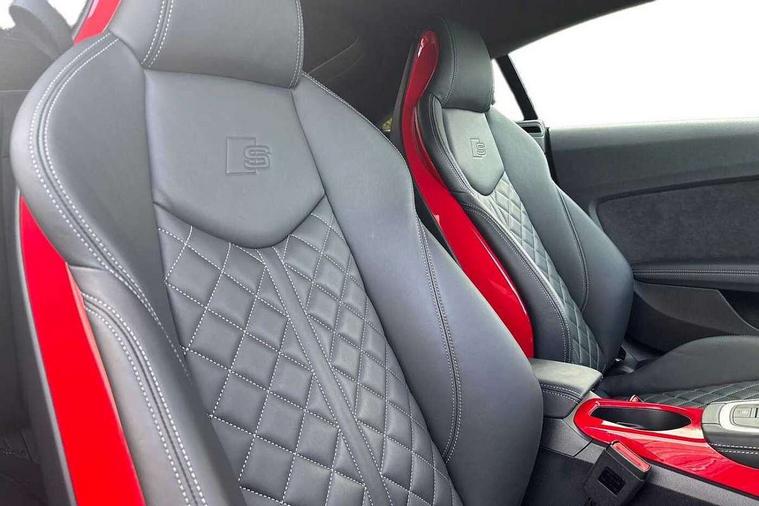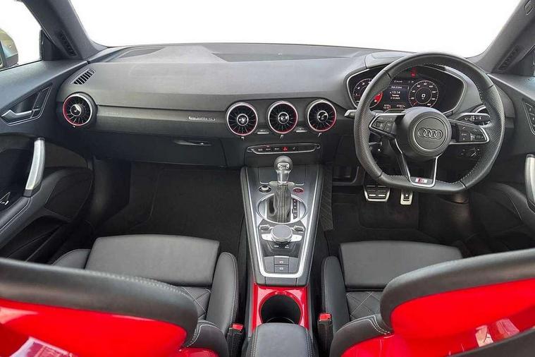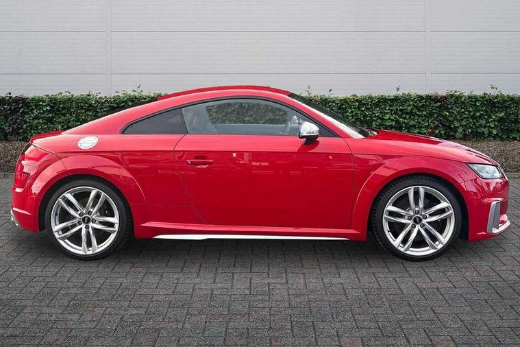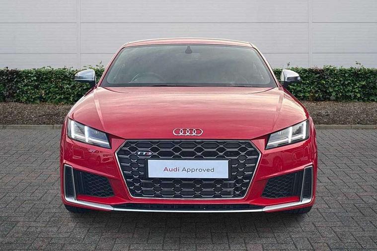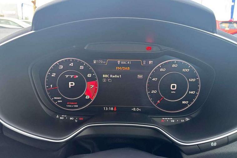 Audi drive select with 4 Pre configured modes, Audi Phone Box with wireless charging - Qi enabled compatible phone and additional bluetooth interface, Audi smartphone interface, Audi Virtual Cockpit with sport gauge, Cruise control + speed limiter, Emergency call service, Mobile phone preparation with bluetooth interface, Progressive power assisted steering, Service interval indicator, Start/Stop system with energy recuperation, TP memo, Audi magnetic ride, TTS suspension, AM/FM radio, Audi Sound System with 9 speakers, Bluetooth audio streaming, DAB Digital radio, MMI Radio with CD player and SD/XC card slot, Aluminium door mirror housings, Audi Beam uses LEDs to project the Audi Sport logo, Auto dimming rear view mirror, Auto headlight range control, Body colour bumpers, Dark privacy glass from B-pillar backwards, Electric folding door mirrors, Electric front windows, Electrically adjustable and heated door mirrors with integrated LED side indicators, Green tinted heat insulating glass, LED 3rd brake light, LED daytime running lights, LED headlights with LED rear lights + dynamic rear indicators, Light and rain sensors, Rear boot, Sunband for windscreen, 12V socket, 2 rear seats, 3 spoke flat bottomed contour leather multi-function TTS sport steering wheel and TTS badging, 4 way electric lumbar support for driver and front passenger, Black headlining, Deluxe auto air conditioning with integrated digital display, Door sill trims with aluminium inlay and TTS logo, Front centre armrest, Front passenger seat, Front super sports seats, Heated front seats, Height/reach adjust steering wheel, Integrated head restraints, ISOFIX child seat mounting for front passenger seat with airbag deactivation, Manual adjustment of seat height, fore/aft position, seat angle, seat depth and backrest angle, Rear head restraints, Rear top tether child seat ISOFIX attachment, Split folding rear seat, Stainless steel pedals, Leather pack - TTS, LED interior light pack - TTS, Non smoking pack - TT/TT RS, S design body styling pack - TTS, Technology pack without Audi phone box - TT, 3 point front seat belts, ABS, ASR traction control, Curtain airbags, Driver and front passenger airbag with front passenger airbag deactivation, EDL traction control, Electromechanical parking brake, ESP, First aid kit, Front side airbags, Head airbags, Hill hold assist, Seatbelt warning, Tyre pressure loss indicator, Warning triangle, Anti theft alarm, Anti theft wheel bolts, Immobiliser, Keyless Go, Remote central locking, Matt brushed aluminium inlays, Tool kit, Tyre repair kit,