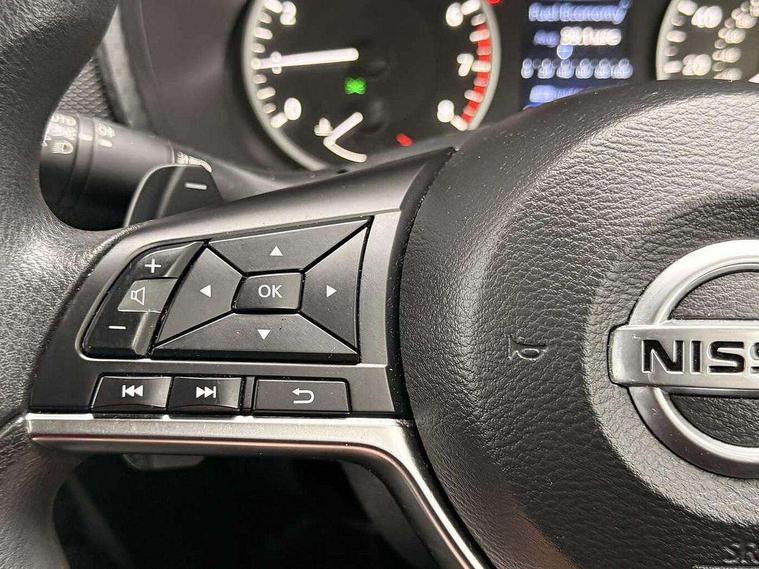 4.2" full colour TFT screen combimeter, Apple CarPlay and Google Android auto, Cruise control + speed limiter, eCall emergency call system, Emergency and breakdown call, Idle start/stop system, Intelligent lane intervention, Lane departure warning system, Nissan connect 8" touch screen entertainment system, Nissan connect services and Wifi connection, Outside temperature sensor, Power Steering, Rear view camera, Traffic sign recognition, Trip computer, Voice recognition, Gasoline particulate filter, 4 speakers, Bluetooth system, USB, Aux-in and 12V socket, DAB Digital radio, Automatic hazard signal with emergency stop signal, Body colour bumpers, Body colour door handles, Electrically adjustable door mirrors with integrated indicators, Follow me home headlights, Front and rear electric window with one touch driver window, High beam assist, LED daytime running lights, LED headlamps, LED rear fog lamp, LED rear lamps, Manual dimming interior rear view mirror, Pearl black door mirrors, Rear side wing doors, Rear wiper, Three blink turn signal, 3 height adjustable rear headrests, 3 seat bench in 2nd row, 60/40 split folding rear seat, Cloth upholstery, Driver and passenger sliding and reclining seats, Driver/passenger sunvisors and vanity mirrors, Front and rear cabin lights, Front door pockets with bottle holders, Front head restraints, Height adjustable driver's seat, Internal chrome door handles, Luggage space lighting, Monoform sporty seats, Multifunction steering wheel, Rear door bottle holders, Single front passenger seat, Steering wheel mounted gearshift paddles, Telescopic steering wheel adjustment, Two cupholders in front centre console, Two rear isofix child seat anchorage points with top tether, Welcome light and console tray ambient lighting, ABS with EBD and brake assist, Active ride control, Active Trace Control, Driver and passenger airbags, Driver and passenger side airbags, Electronic Stability Programme (ESP), Front and rear curtain airbags, Height adjustable seatbelts, Hill start assist, Intelligent emergency braking with pedestrian and cyclist recognition, Rear door child safety locks, Rear drum brakes, Seatbelt reminder for driver/front passenger and rear seats, Single tone horn, Three 3 point rear seatbelts, Traction control, Tyre pressure monitoring system, VDC Dynamic Vehicle Control, Alarm, Immobiliser, Remote central locking, 17" Sakura Flex wheels,