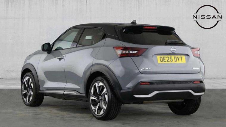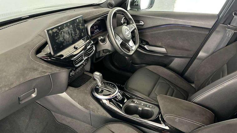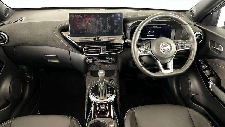 12.3" full colour TFT screen combimeter, Drive modes select (Eco, normal and sport), e-Pedal step, Emergency and breakdown call, EV mode switch, Front parking sensor, Intelligent driver alert system, Intelligent lane intervention, Lane departure warning system, Nissan connect 12.3" touch screen entertainment system, Nissan connect nav with TomTom traffic, Nissan connect services, Outside temperature sensor, Power Steering, Rear parking sensor, Stop/start button, Traffic sign recognition, Trip computer, Voice recognition, WiFi connectivity, Wireless Apple CarPlay and Google Android auto, Wireless Smartphone charger, 10 Bose speakers 6 speakers and 2 headrest speakers for driver/passenger seats, 2 X Rear console USB port, Bluetooth system, USB, Aux-in and 12V socket, Bose personal sound stage control, DAB Digital radio, Auto dimming frameless rear view mirror, Automatic hazard signal with emergency stop signal, Body colour door handles, Electrically adjustable door mirrors with integrated indicators, Follow me home headlights, Front and rear electric window with one touch driver window, Heated and auto folding door mirrors, High beam assist, LED 3rd brake light, LED daytime running lights, LED front fog lights, LED headlamps, LED rear fog lamp, LED rear lamps, One touch passenger window, Rain sensor windscreen wipers, Rear privacy glass, Rear side wing doors, Rear wiper, Roof spoiler, Shark fin roof antenna in solid Black, Three blink turn signal, 3 height adjustable rear headrests, 3 seat bench in 2nd row, 60/40 split folding rear seat, Automatic climate control, Card holder on driver sunvisor, Door ambient lighting, Driver seat back pocket, Driver side rear coat hanger, Driver/passenger sunvisors and vanity mirrors, Front and rear cabin lights, Front armrest, Front door pockets with bottle holders, Front head restraints, Front/rear passenger grab handles, Gear console ambient circle lighting, Height adjustable driver's seat, Internal chrome door handles, Leather gearshift knob, Luggage board, Luggage space lighting, Monoform sporty seats, Multifunction steering wheel, Passenger seat back pocket, Rear door bottle holders, Single front passenger seat, Smooth synthetic leather steering wheel, Synthetic leather kneepad, Telescopic steering wheel adjustment, Two cupholders in front centre console, Two rear isofix child seat anchorage points with top tether, Welcome light and console tray ambient lighting, Heat pack with height adjustable passenger seats - Juke, Interior personalisation pack - Juke, ProPilot pack - Juke Auto, Satin grey exterior personalisation pack - Juke, ABS with EBD and brake assist, Active ride control, Active Trace Control, Driver and passenger airbags, Driver and passenger side airbags, Electric handbrake with auto hold function, Electronic Stability Programme (ESP), Front and rear curtain airbags, Height adjustable seatbelts, Hill start assist, Intelligent emergency braking with pedestrian and cyclist recognition, Rear door child safety locks, Seatbelt reminder for driver/front passenger and rear seats, Three 3 point rear seatbelts, Traction control, Tyre pressure monitoring system, VDC Dynamic Vehicle Control, Alarm, Immobiliser, Intelligent key and start push button with walk away lock and approach unlock functions, Remote central locking, 19" Aero alloy wheels, Tyre puncture repair kit,