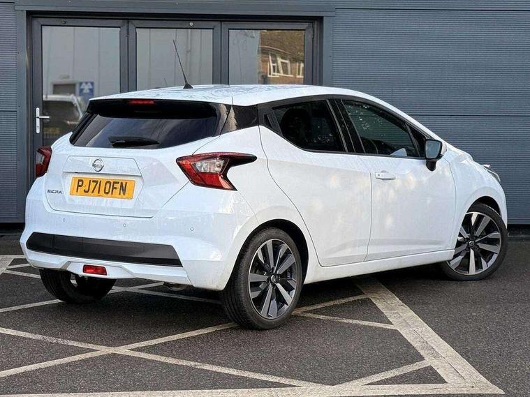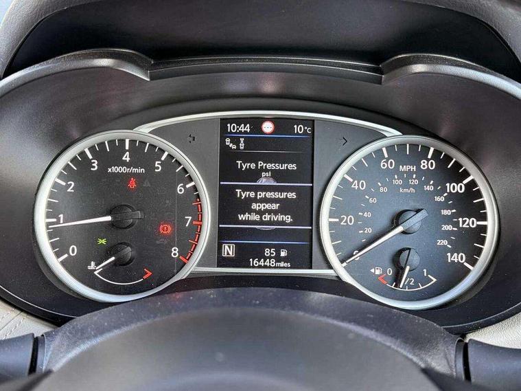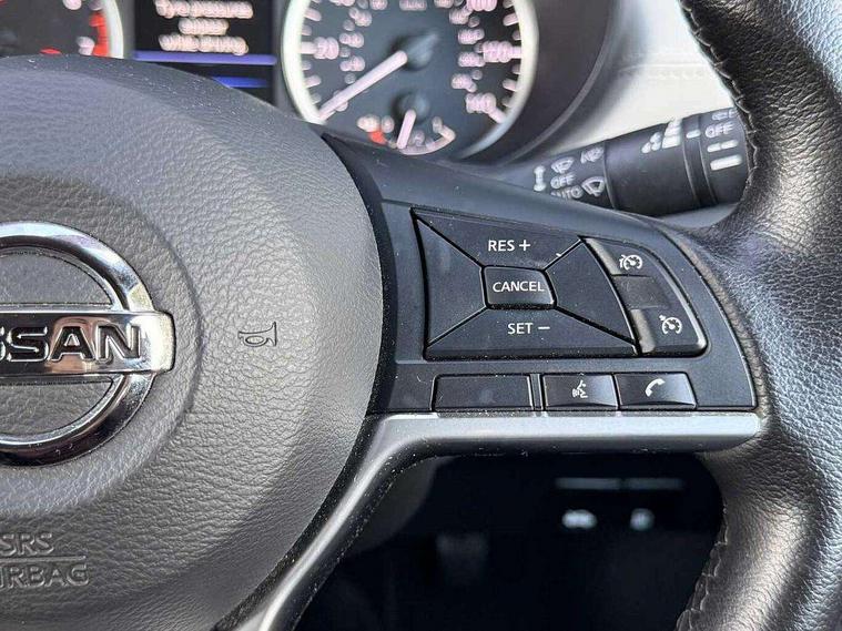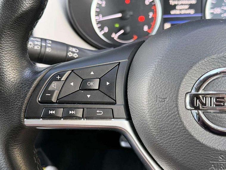 360 degree around view monitor, Adjustable speed limiter, Bluetooth system, Cruise control, Lane departure prevention, Lane departure warning system, Nissan Connect touchscreen navigation and Entertainment system, Outside temperature gauge, Power assist steering, Rear parking sensors, Rear view camera, Smartphone integration with Apple CarPlay and Android auto, Stop/start system, Traffic sign recognition, Trip computer, Audio system with MP3, BOSE sound system with 6 speakers, DAB Digital radio, USB/iPod connection, 4 pocket halogen headlights with signature finisher, Antenna, Auto dimming rear view mirror, Automatic activation of hazard warning lights, Automatic headlights, Body colour front door handles, Body coloured bumpers, Body coloured door mirrors, Concealed rear door handles, Electric folding door mirrors, Front and rear electric windows, Front fog lights, Heated door mirrors, High beam assist, High mounted stop lamp, Jacknife key type x1, LED daytime running lights, LED Headlights, Rain sensor windscreen wipers, Rear privacy glass, Rear roof spoiler, Rear wiper with reverse link, 12V power point front, 2 height adjustable rear headrests, 3 cupholders, 60/40 split folding rear seat, Automatic air conditioning, Boot compartment cover, Boot light, Chrome interior door handles, Driver's seat manual height adjust, Driver/passenger sunvisors and vanity mirrors, Front and rear door pockets with bottle holders, Front console storage box, Gear shift indicator, Height adjustable front headrests with satin sliver decoration, Illuminated electric window switch, Isofix front passenger and rear seat preparation, Leather wrapped gear shift knob, Leather wrapped parking break, Leather wrapped steering wheel, LED ambient lighting, Map reading lamp, Parcel shelf, Passenger seat back pocket, Reclining front seats, Synthetic leather front door pads, Synthetic leather instrumental panel inserts, ABS+EBD+Brake assist, Crash sensor, Driver/Front Passenger airbags, Front and rear curtain airbags, Front side airbags, Height adjustable front seatbelts with pre-tensioners and load limiters, Hill start assist, Intelligent emergency braking with pedestrian recognition, Manual passenger airbag deactivation function, Rear seatbelts with pre-tensioners and load limiters, Seatbelt warning, Three 3 point rear seatbelts, Tyre pressure monitoring system, Warning triangle and first aid kit, Anti-theft immobiliser, Intelligent key with push button ignition, Remote central locking, 17" Diamond cut alloy wheels, Tyre repair kit,