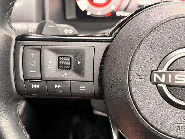 Android auto/Apple CarPlay (Wired), Blind spot warning, Drive modes (sport, normal, eco), Electric speed sensitive power steering, Emergency and breakdown call, Full Digital 12.3" TFT Digital Combimeter, Google maps services - search, weather, 3D maps and Google street view, Idle stop/start system, Intelligent around view monitor, Intelligent Cruise control (ICC), Intelligent driver alert system, Intelligent forward collision warning, Intelligent lane intervention, Lane departure prevention, Lane departure warning system, Maximum speed limiter, Moving object detection, Nissan connect 12.3 inch touchscreen infotainment system, Nissan connect navigation, Push button starter, Rear cross traffic alert, Rear parking sensors, Rear view camera, Remote control services - door locks, lights, horn and car locator, Telematics - notifications and connectivity services, TomTom live traffic services, Traffic sign recognition with legal speed adjustment, Trip computer, Virtual personal assistant and firmware over the air capability, Wireless apple carplay, 6 speakers, AM/FM audio system with DAB, Bluetooth audio streaming, Front USB connections (Type-A and Type-C), Rear USB charging only ports (Type-A and Type-C), Auto dimming rear view mirror, Auto rear wiper when reversing, Automatic hazard signal with emergency stop signal, Body colour mirror caps, Body coloured door handles, Bodyside mouldings, Chrome side window finisher, Door handle with button, Electric auto folding door mirrors, Electrically adjustable and heated door mirrors with LED turn indicator, Follow me home headlights, High beam assist, Intelligent auto headlights, LED daytime running lights, LED Headlights, LED rear lights, One touch front and rear electric windows with remote opening and closing, Partially body coloured bumpers, Privacy glass, Rear bumper with graphite insert, Rear reversing light (bulb lighting), Rear roof spoiler, Rear side wing doors, Rear styling plate, Shark fin antenna, Splash free rain sensing wipers, Super UV and infrared cut glass, Three blink turn signal, 12v power socket in dashboard and luggage, 2x Rear coat hooks, 3 bench rear seats in 2nd row, 3 rear headrests, 4 folding assist grip, 6 Luggage hooks - 4 on floor, 2 on side, 6-way manually adjustable driver's seat, 60/40 split folding rear seat bench, Ambient lighting around centre console, Centre console storage tray, Chrome interior door handles, Cloth monoform upholstery, Driver and front passenger sunvisors with illuminated vanity mirrors, Driver seat back pocket, Dual zone automatic climate control with pollen filter, Electrically adjustable lumbar support for driver, Front and rear door storage, Front centre console and armrest, Front cupholders x 2, Front door with bottle holders, Glovebox with light, Hard trunk cover, Height adjustable driver's seat, Height adjustable front headrests, Height adjustable passenger seat, Leather steering wheel, Luggage board system, Luggage space lighting, Manually adjustable passenger (slide recline + lifter), Multifunction steering wheel, Passenger seat back pocket, Rear armrest with 2 cupholders, Rear door bottle holders, Single front passenger seat, Soft PVC kneepad, Steering wheel gearshift paddles, Steering wheel switches, Sunglasses holder, Tilt/telescopic adjustable steering wheel, Two rear isofix child seat anchorage points with top tether, Welcome light and console tray ambient lighting, 3x3 point rear seatbelt pretensioners + load limiters, ABS with EBD and brake assist, Active brake limited slip, Auto hold function, Child locks on rear doors, Curtain and front side, far side airbags, Driver and passenger airbags, Driver, passenger and 2nd row rear seat belt reminder, Electronic parking brake, Front seatbelt pretensioners + load limiters, Height adjustable front seatbelts, Hill start assist, Intelligent blind spot intervention, Intelligent front emergency braking with pedestrian, cyclist recognition and junction assist, Intelligent rear automatic braking, Tyre pressure monitoring system, Vehicle dynamic control, Capless fuel filler, Engine immobiliser, Intelligent Key, Remote central door locking with deadlocking, Thatcham Cat.1 alarm, Interior instrumental panel B finisher, 18" Diamond cut alloy wheels, Tyre puncture repair kit,