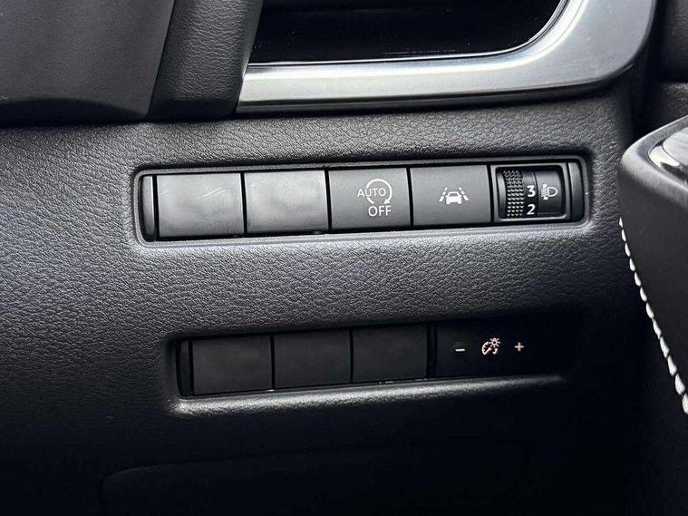 Android auto/Apple CarPlay (Wired), Blind spot warning, Drive modes (sport, normal, eco), Electric speed sensitive power steering, Emergency and breakdown call, Front and rear parking sensors, Full Digital 12.3" TFT Digital Combimeter, Google maps services - search, weather, 3D maps and Google street view, Idle stop/start system, Intelligent around view monitor, Intelligent Cruise control (ICC), Intelligent driver alert system, Intelligent forward collision warning, Intelligent lane intervention, Lane departure prevention, Lane departure warning system, Maximum speed limiter, Moving object detection, Nissan connect 12.3 inch touchscreen infotainment system, Nissan connect navigation, Push button starter, Rear cross traffic alert, Rear view camera, Remote control services - door locks, lights, horn and car locator, Telematics - notifications and connectivity services, TomTom live traffic services, Traffic sign recognition with legal speed adjustment, Trip computer, Virtual personal assistant and firmware over the air capability, Wireless apple carplay, 6 speakers, AM/FM audio system with DAB, Bluetooth audio streaming, Front USB connections (Type-A and Type-C), Rear USB charging only ports (Type-A and Type-C), Auto dimming rear view mirror, Auto rear wiper when reversing, Automatic hazard signal with emergency stop signal, Body colour mirror caps, Body coloured door handles, Bodyside mouldings, Chrome side window finisher, Door handle with button, Electric auto folding door mirrors, Electrically adjustable and heated door mirrors with LED turn indicator, Follow me home headlights, High beam assist, Intelligent auto headlights, LED daytime running lights, LED Headlights, LED rear lights, One touch front and rear electric windows with remote opening and closing, Partially body coloured bumpers, Privacy glass, Rear bumper with graphite insert, Rear reversing light (bulb lighting), Rear roof spoiler, Rear side wing doors, Rear styling plate, Shark fin antenna, Splash free rain sensing wipers, Super UV and infrared cut glass, Three blink turn signal, 12v power socket in dashboard and luggage, 2x Rear coat hooks, 3 bench rear seats in 2nd row, 3 rear headrests, 4 folding assist grip, 6 Luggage hooks - 4 on floor, 2 on side, 6-way manually adjustable driver's seat, 60/40 split folding rear seat bench, Ambient lighting around centre console, Centre console storage tray, Chrome interior door handles, Cloth monoform upholstery, Driver and front passenger sunvisors with illuminated vanity mirrors, Driver seat back pocket, Dual zone automatic climate control with pollen filter, Electrically adjustable lumbar support for driver, Front and rear door storage, Front centre console and armrest, Front cupholders x 2, Front door with bottle holders, Glovebox with light, Hard trunk cover, Height adjustable driver's seat, Height adjustable front headrests, Height adjustable passenger seat, Leather shift knob, Leather steering wheel, Luggage board system, Luggage space lighting, Manually adjustable passenger (slide recline + lifter), Multifunction steering wheel, Passenger seat back pocket, Rear armrest with 2 cupholders, Rear door bottle holders, Single front passenger seat, Soft PVC kneepad, Steering wheel switches, Sunglasses holder, Tilt/telescopic adjustable steering wheel, Two rear isofix child seat anchorage points with top tether, Welcome light and console tray ambient lighting, 3x3 point rear seatbelt pretensioners + load limiters, ABS with EBD and brake assist, Active brake limited slip, Auto hold function, Child locks on rear doors, Curtain and front side, far side airbags, Driver and passenger airbags, Driver, passenger and 2nd row rear seat belt reminder, Electronic parking brake, Front seatbelt pretensioners + load limiters, Height adjustable front seatbelts, Hill start assist, Intelligent blind spot intervention, Intelligent front emergency braking with pedestrian, cyclist recognition and junction assist, Intelligent rear automatic braking, Tyre pressure monitoring system, Vehicle dynamic control, Capless fuel filler, Engine immobiliser, Intelligent Key, Remote central door locking with deadlocking, Thatcham Cat.1 alarm, Interior instrumental panel B finisher, 18" Diamond cut alloy wheels, Tyre puncture repair kit,