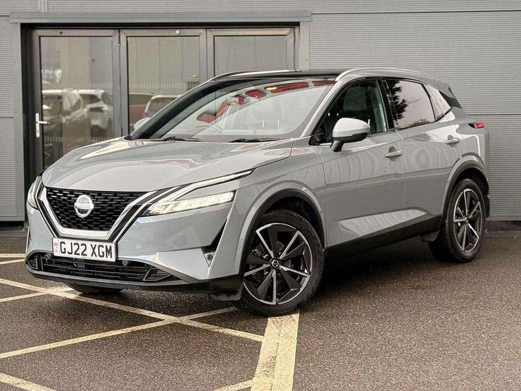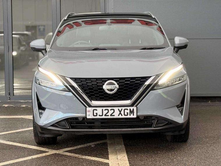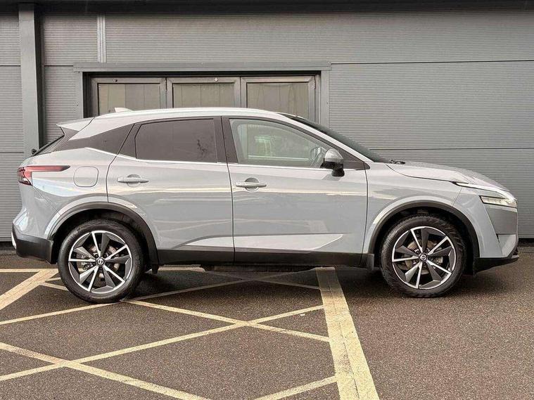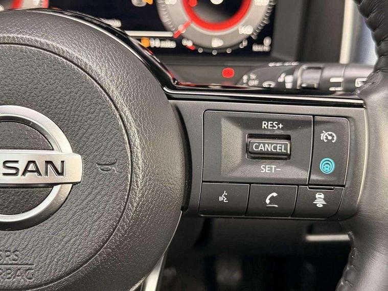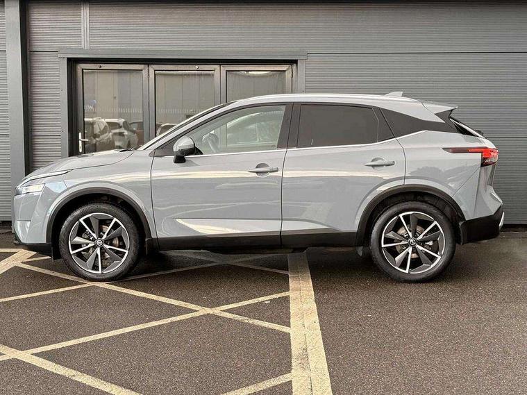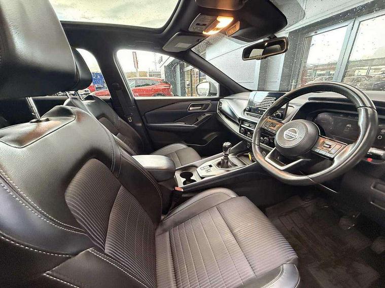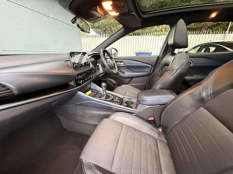Blind spot warning, Drive modes (sport, normal, eco), Electric speed sensitive power steering, Emergency and breakdown call, Front and rear parking sensors, Full Digital 12.3" TFT Digital Combimeter, Google maps services - search, weather, 3D maps and Google street view, Hands free power tailgate, Idle stop/start system, Intelligent around view monitor, Intelligent Cruise control (ICC), Intelligent driver alert system, Intelligent forward collision warning, Intelligent lane intervention, Lane departure prevention, Lane departure warning system, Moving object detection, Nissan connect 12.3 inch touchscreen infotainment system, Nissan connect navigation, Push button starter, Rear cross traffic alert, Remote control services - door locks, lights, horn and car locator, Telematics - notifications and connectivity services, TomTom live traffic services, Traffic sign recognition with legal speed adjustment, Trip computer, Virtual personal assistant and firmware over the air capability, Wireless Apple CarPlay and wired Android Auto, Wireless charging pad, 6 speakers, AM/FM audio system with DAB, Bluetooth audio streaming, Front USB connections (Type-A and Type-C), Rear USB charging only ports (Type-A and Type-C), Auto dimming rear view mirror, Auto rear wiper when reversing, Automatic hazard signal with emergency stop signal, Body colour mirror caps, Body coloured door handles, Bodyside mouldings, Chrome side window finisher, Door handle with button, Dusk sensor, Electric auto folding door mirrors, Electrically adjustable and heated door mirrors with LED turn indicator, Fixed panoramic glass roof with electric sunshade, Follow me home headlights, Front and rear LED turning signals, Intelligent auto headlights, LED daytime running lights, LED rear lights, One touch front and rear electric windows with remote opening and closing, Partially body coloured bumpers, Privacy glass, Rain sensor, Rear bumper with graphite insert, Rear roof spoiler, Rear side wing doors, Rear styling plate, Roof rails, Shark fin antenna, Splash free rain sensing wipers, Super UV and infrared cut glass, Three blink turn signal, 12v power socket in dashboard and luggage, 2 way electrical driver lumbar adjustment, 2x Rear coat hooks, 3 bench rear seats in 2nd row, 3 rear headrests, 4 folding assist grip, 6 Luggage hooks - 4 on floor, 2 on side, 60/40 split folding rear seat bench, 8 way electric adjustable drivers seat, Ambient lighting around centre console, Ambient lighting in front doors, Centre console storage tray, Chrome interior door handles, Cloth/syntech leather monoform upholstery, Dark black/blueish PVC wrapping, Dark headlining, Driver and front passenger sunvisors with illuminated vanity mirrors, Driver seat back pocket, Dual zone automatic climate control with pollen filter, Front and rear door storage, Front cupholders x 2, Front door with bottle holders, Glovebox with light, Hard trunk cover, Height adjustable front headrests, Leather shift knob, Leather steering wheel, Luggage board system, Luggage space lighting, Manual lumbar support on passenger seat, Manually adjustable passenger (slide recline + lifter), Multifunction steering wheel, Passenger seat back pocket, PVC front centre console and armrest, Rear armrest with 2 cupholders, Rear door bottle holders, Single front passenger seat, Soft PVC kneepad, Steering wheel switches, Tilt/telescopic adjustable steering wheel, Two rear isofix child seat anchorage points with top tether, Welcome light and doors with console tray ambient lighting, Drive assist pack - Qashqai, Heat pack - Qashqai, Tech Pack (Drive Assist + HUD), 3x3 point rear seatbelt pretensioners + load limiters, ABS, ESP, EBD and brake assist, Active brake limited slip, Auto hold function, Child locks on rear doors, Curtain and front side, far side airbags, Driver and passenger airbags, Driver, passenger and 2nd row rear seat belt reminder, Electronic parking brake, Front seatbelt pretensioners + load limiters, Height adjustable front seatbelts, Hill start assist, Intelligent blind spot intervention, Intelligent front emergency braking with pedestrian, cyclist recognition and junction assist, Intelligent rear automatic braking, Tyre pressure monitoring system, Vehicle dynamic control, Capless fuel filler, Engine immobiliser, Nissan i-key, Remote central door locking with deadlocking, Thatcham Cat.1 alarm, Interior instrumental panel C finisher, 19" Alloy wheels, Tyre puncture repair kit,