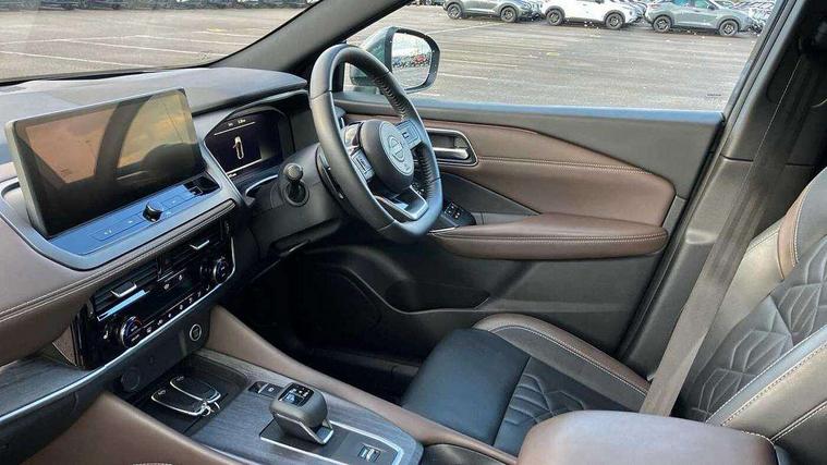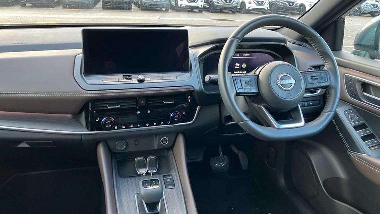 2 front USB-C ports, 2 rear USB-C ports, 360 degree Intelligent around view monitor with moving object detection, Advanced windscreen head up display, Blind spot intervention, Blind spot warning, Drive assist custom mode, Drive modes (sport, normal, eco), Driver drowsiness and attention warning, Electric speed sensitive power steering, Emergency and breakdown call, Emergency lane keep assist, Emergency Stop Signal (ESS), Engine start/stop button, Event data recorder, Front and rear parking sensors, Full Digital 12.3" TFT Digital Combimeter, Google virtual personal assistance, Hands free power tailgate, Idle stop/start system, In-car WIFI hotspot, Intelligent Cruise control (ICC), Intelligent forward collision warning, Intelligent speed assist, Lane departure warning system, Nissan connect 12.3 inch touchscreen infotainment system, Nissan connect navigation with google maps, Nissan connect services 2.0 (Google Automotive System), Outside temperature sensor, Rear cross traffic alert, Reversing detection, Traffic jam pilot, Wireless Apple CarPlay/Android Auto, Wireless charging pad, Limited slip differential, 6 speakers, AM/FM audio system with DAB, Bluetooth audio streaming, Auto dimming frameless rear view mirror, Auto rear wiper when reversing, Body colour mirror caps, Body coloured door handles, Bodyside mouldings, Chrome side window finisher, Electric auto folding door mirrors, Electrically adjustable and heated door mirrors with LED turn indicator, Follow me home headlights, Glossy black bumper inserts and fenders, High beam assist, Intelligent auto headlights, LED 3rd brake light, LED daytime running lights, LED headlights with adaptive driving beam, LED rear lights, LED sequential turn lights, One touch front and rear electric windows with remote opening and closing, One touch passenger window, Partially body coloured bumpers, Rear privacy glass, Rear roof spoiler, Rear side wing doors, Rear styling plate, Reverse tilting door mirrors, Shark fin antenna, Silver roof rails, Splash free rain sensing wipers, Super RED rear LED lights, Super UV and infrared cut glass, Thermaclear heated windscreen, 3 bench rear seats in 2nd row, 3 rear headrests, 60/40 split folding rear seat bench, Chrome interior door handles, Dark headlining, Driver seat back pocket, Dual zone automatic climate control with pollen filter, Fixed Glass roof with electric sunshade, Front door with bottle holders, Heated front seats, Heated steering wheel, Height adjustable front headrests, Luggage board system, Luggage space lighting, Multifunction steering wheel, Passenger seat back pocket, Quilted/PVC upholstery, Rear door bottle holders, RGB ambient light (Full area coverage), Single front passenger seat, Smooth leather steering wheel, Steering wheel gearshift paddles, Tilt/telescopic adjustable steering wheel, Two rear isofix child seat anchorage points with top tether, 3x3 point rear seatbelt pretensioners + load limiters, Autonomous emergency braking, Child locks on rear doors, Curtain and front side, far side airbags, Driver and passenger airbags, Driver, passenger and 2nd row rear seat belt reminder, Electric handbrake with auto hold function, Front seatbelt pretensioners + load limiters, Height adjustable front seatbelts, Hill start assist, intelligent front emergency braking, Rear automatic braking, Tyre pressure monitoring system, Vehicle dynamic control, Engine immobiliser, Intelligent key with walk away lock and approach unlock functions, Remote central door locking with deadlocking, Thatcham alarm, 19" Diamond cut alloy wheels, Tyre puncture repair kit,