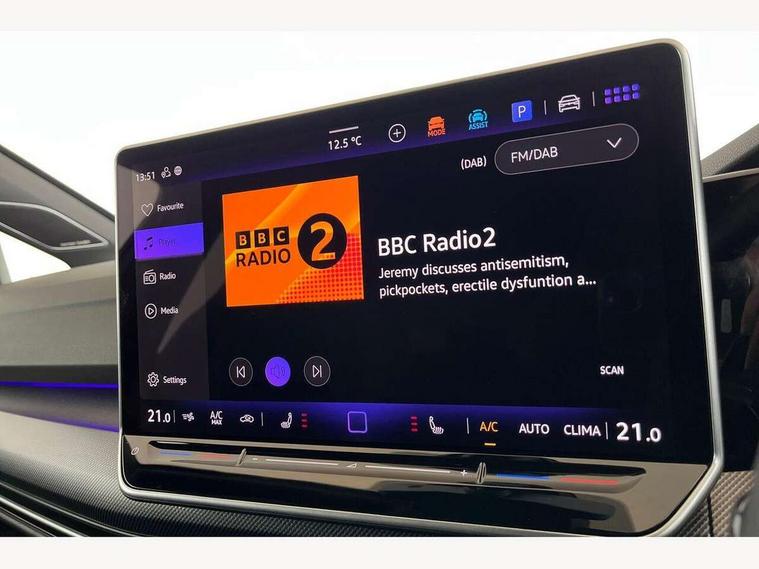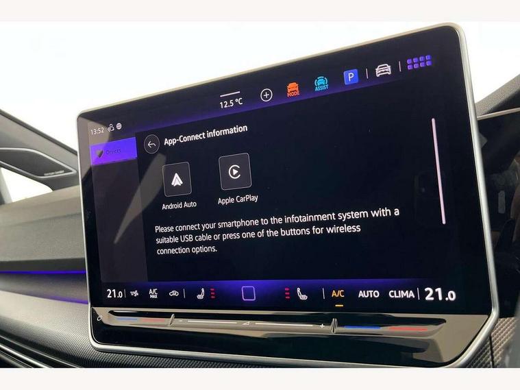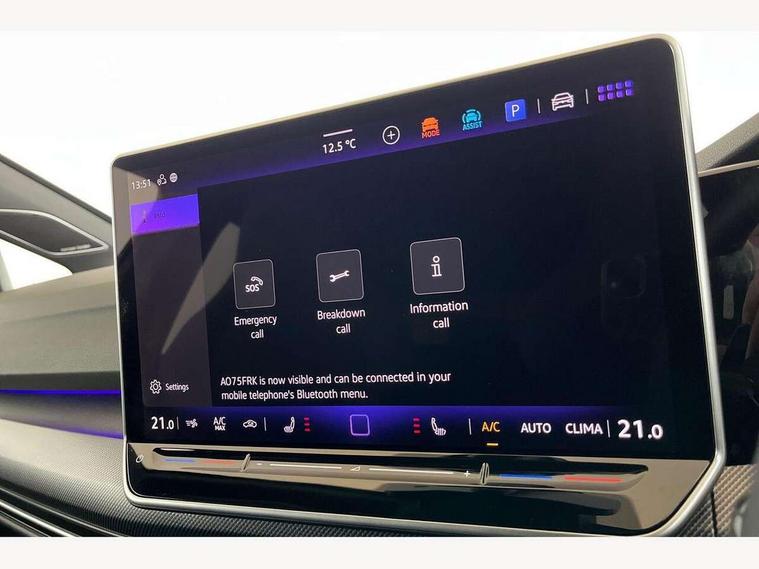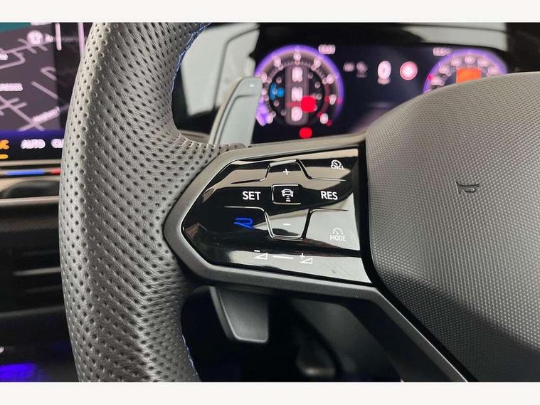 Activated carbon canister, Adaptive cruise control (ACC), Advanced driver attention and drowsiness monitor, Dynamic road sign display, E-Sim card for online connectivity, eCall emergency call system, Multi-color Digital cockpit pro, selection of different info profile possible, Multifunction front facing camera for distance control, Navigation system, Oncoming vehicle braking when turning including swerve support, Side assist blind spot lane change system, rear traffic alert and exit warning system, Speed limiter, Speedo, rev counter, electronic odometer, trip, service interval display, exterior temperature and fuel gauge, Traffic jam assist, Voice enhancer and voice control, Warning signal and warning light for front and rear seatbelts not fastened, We connect plus preparation, We connect preparation, Wireless app connect, All wheel drive - 4Motion, Petrol Particulate Filter, Start-stop system with battery regeneration (recuperation - energy recovery during braking), XDS electronic differential lock for improved traction and handling, 2 USB C ports in front, 2 USB charging sockets on the centre console in the rear charging capacity upto 45W, Digital radio reception (DAB), Diversity antenna for FM reception, Gaming platform via car app, Infotainment system with 12.9" display, Mobile phone interface with inductive charging feature, 3rd brake light, Auto dimming rear view mirror, Automatic headlamp activation with Coming home and Leaving home feature, Body colour door handles, Exterior mirror housings in matte chrome, Exterior mirrors convex on the left and aspherical on the right, Front and rear electric windows, Front fog lamps and cornering light, Heat insulating windshield made of laminated glass, Illuminated lighting animation with wake up/goodbye scenario, LED matrix headlights with ambient light V2, advanced high beam, dynamic range contol with cornering, LED rear lamp with indicator, poor weather, LED separate daytime running light, Light assist with High beam control, R name plate, Rain sensor, Rear fog light on one side and reversing lights on both sides, Rear side wing doors, Rear tinted glass 65% light absorbing from B pillar backwards, Rear windscreen washer and wiper with interval delay, Remote electrically foldable door mirrors, puddle lights and reverse activated passenger's door mirror, Welcome light with surround lighting, 12V socket in front centre console, 12V socket in luggage compartment, 3 rear head restraints, 3 seat bench in 2nd row, 30 colour ambient lighting, illuminated center console storage compartment in front, Air care climatronic 3 Zone automatic climate control with rear air conditioning control panel, Aluminium gearshift handle, Brushed stainless steel pedals, Chrome plated radiator grille inserts, air vent surrounds and light switch surrounds, Entry lights, Front + rear black carpet mats, Front centre armrest, Integrated front head restraints, ISOFIX anchors for child seats on outer rear bench seats and on front passanger seat compatible for i-Size, Luggage compartment lighting, Rear cupholder and loadthough, Single front passenger seat, Soul black instrument panel, Soul black roof lining, Split folding backrest with centre armrest and unsplit rear seat bench, Sun visors with illuminated vanity mirrors, Driver assistance pack - Golf Estate/Hatchback Auto, R styling pack - Golf, Technology park and comfort pro package - Golf Hatchback, 3 point height adj front seatbelts + pretensioners, 3 rear three point seatbelts, ABS, Autonomous emergency braking front assist with pedestrian and cyclist monitoring, Child locks on rear doors, Driver and front passenger airbag with front passenger airbag deactivation, Electronic parking brake with auto hold, ESC (Electronic Stability Control), Extended pedestrian protection measures, Front blue brake callipers with R logo, Hill start assist, Rear disc brakes, Two tone horn, Tyre pressure loss indicator, Volkswagen roadside assistance, Anti theft wheel bolts, Preparation for alcohol interlock, Sporty vehicle dynamics, Tool kit for tyre mobility set, Tyre mobility kit Includes 12V compressor and tyre sealant,