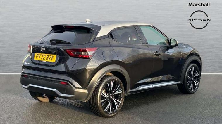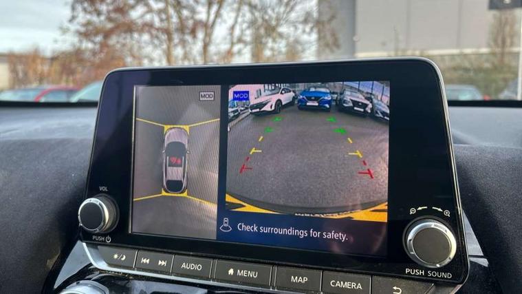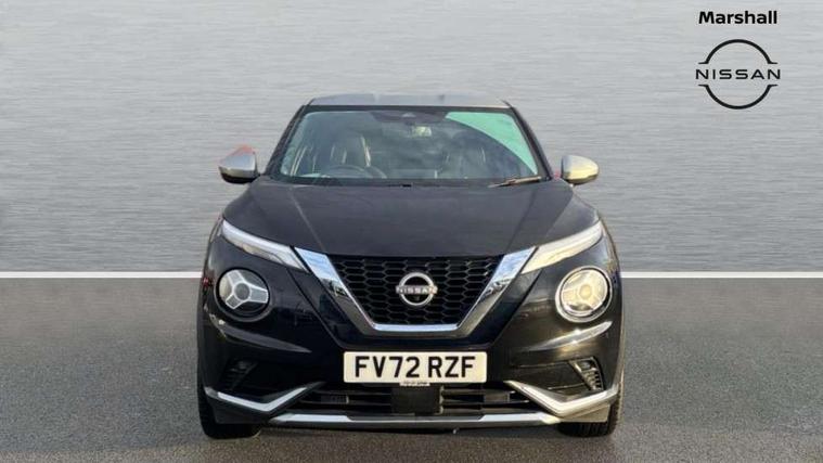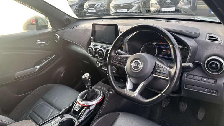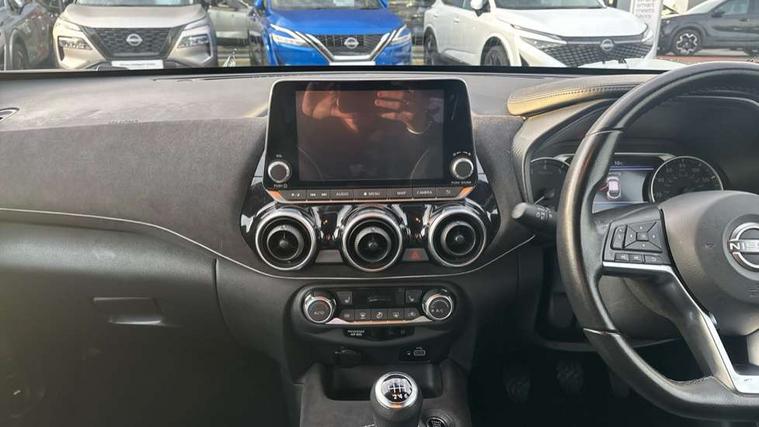 7" full colour TFT screen combimeter, Apple CarPlay and Google Android auto, Drive modes select (Eco, normal and sport), Emergency and breakdown call, Front parking sensor, Idle start/stop system, Intelligent lane intervention, Lane departure warning system, Nissan connect 8" touch screen entertainment system, Nissan connect nav with TomTom traffic, Nissan connect services and Wifi connection, Outside temperature sensor, Power Steering, Rear parking sensor, Traffic sign recognition, Trip computer, Voice recognition, Gasoline particulate filter, 10 Bose speakers 6 speakers and 2 headrest speakers for driver/passenger seats, Bluetooth system, USB, Aux-in and 12V socket, Bose personal sound stage control, DAB Digital radio, Rear console USB port, Auto dimming interior rear view mirror, Auto headlights, Automatic hazard signal with emergency stop signal, Body colour bumpers, Body colour door handles, Electrically adjustable door mirrors with integrated indicators, Follow me home headlights, Front and rear electric window with one touch driver window, Heated and auto folding door mirrors, High beam assist, LED daytime running lights, LED front fog lights, LED headlamps, LED rear fog lamp, LED rear lamps, Rain sensor windscreen wipers, Rear privacy glass, Rear side wing doors, Rear wiper, Satin silver front bumper finisher, Thermaclear heated windscreen, Three blink turn signal, 3 height adjustable rear headrests, 3 seat bench in 2nd row, 60/40 split folding rear seat, Automatic climate control, Card holder on driver sunvisor, Door ambient lighting, Driver and passenger sliding and reclining seats, Driver seat back pocket, Driver side rear coat hanger, Driver/passenger sunvisors and vanity mirrors, Front and rear cabin lights, Front armrest, Front door pockets with bottle holders, Front head restraints, Front passenger isofix child seat anchorage point, Front/rear passenger grab handles, Gear console ambient circle lighting, Grey synthetic leather kneepad, Heated front seats, Height adjustable driver's seat, Height adjustable passenger seat, Internal chrome door handles, Leather gearshift knob, Leather steering wheel, Luggage board, Luggage space lighting, Monoform sporty seats, Multifunction steering wheel, Passenger seat back pocket, Rear door bottle holders, Single front passenger seat, Telescopic steering wheel adjustment, Two cupholders in front centre console, Two rear isofix child seat anchorage points with top tether, Welcome light and console tray ambient lighting, Advanced safety shield pack - Juke, ABS with EBD and brake assist, Active ride control, Active Trace Control, Driver and passenger airbags, Driver and passenger side airbags, Electric handbrake with auto hold function, Electronic Stability Programme (ESP), Front and rear curtain airbags, Height adjustable seatbelts, Hill start assist, Intelligent emergency braking with pedestrian and cyclist recognition, Rear door child safety locks, Seatbelt reminder for driver/front passenger and rear seats, Single tone horn, Three 3 point rear seatbelts, Traction control, Tyre pressure monitoring system, VDC Dynamic Vehicle Control, Ventilated rear brake discs, Alarm, Immobiliser, Intelligent key and start push button with walk away lock and approach unlock functions, Remote central locking, 19" Akari alloy wheels,