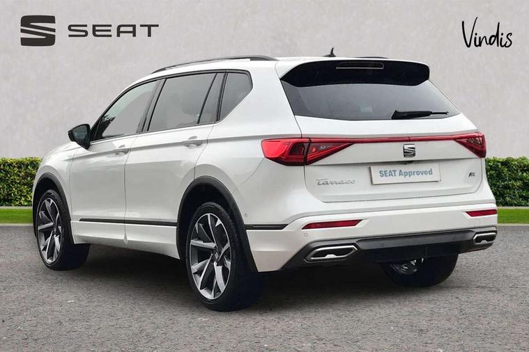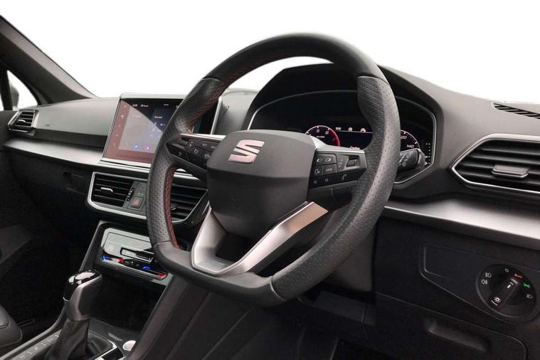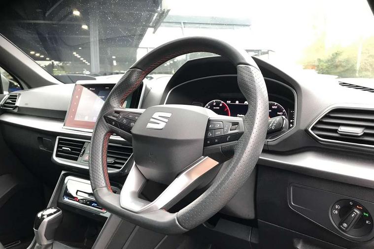 'Lights On' Reminder warning buzzer, 10.25" digital cockpit with multi function display, Adaptive cruise control with speed limiter, Bluetooth audio streaming with handsfree system, Digital clock, e-Call (emergency call), Front assist city emergency braking and pedestrian protection, Full Link Wireless Smartphone Integration with Mirror Link, Apple Car Play, Lane assist, Low fuel warning light, Outside temperature gauge, Power assist steering, RPM counter, Seat connect with safety, service, remote and online, SEAT Drive profile-4 different modes, progressive steering, 4Drive versions with off-road/snow, steering response, throttle response, gear shifts mode, Self parking functionality (includes front and rear parking sensors), Tailgate, Top view camera, Trip computer, Wash water level indicator, Comfort suspension, Sports rear shock absorption, XDS electronic differential lock, Navigation system with 9.2" colour touchscreen with proximity sensor, 3D Map display, DAB, AM/FM Radio, 3 USB (type C), Aux-in, 8 speakers, SD card, Steering wheel mounted audio/telephone controls, USB (type C) cable for Apple and Android compatibility, Auto dimming rear view mirror, Auto headlights with automatic coming and leaving home function, Automatic headlight adjustment, Black door mirrors, Black roof rails, Black window trims, Body coloured side skirts, Coast to coast lighting, Dark tinted rear windows, Dynamic rear indicators, Electric adjustable/heated/folding door mirrors with memory, Electric front/rear windows, Exterior black mouldings, Front grille frame in black, Front halogen fog lights with cornering function, Fuel door linked to central locking, Full LED headlights with LED rear lights, Illuminated aluminium front door sill with trim logo, LED daytime running lights, LED licence plate lighting, LED third brake light, Rain sensing wipers, Rear fog lights, Rear roof spoiler, Rear side wing doors, Rear wash/wipe, Sports bumpers, Twin exhaust pipes, Welcome lighting, 2 individual 3rd row seats, 3 seat bench in 2nd row, 3 zone climate control, Ambient spot lighting and front footwell illumination, Black interior roof, Centre armrest in front with air outlet in rear, Driver and passenger sunvisor with covered and illuminated mirror, Driver's electric lumbar adjustment, Easy fold rear seat system - second and third row, Electric driver's seat with memory, Forward and backward adjustable seats 2nd row, Four cargo rings in the boot, Front bucket seats, Front cupholders, Front integrated headrests, Front passenger seat lumbar adjustment, Front seat back storage pockets, Gear shift indicator, Heated front and outer rear seats, Height adjustable passenger seat, Illuminated boot, Illuminated glovebox, Instrument lighting with brightness control, ISOFIX points in outer 2nd row seats and front passenger seat with top tether anchorage points, Leather gear knob, Leather upholstery, Leather wrapped multifunction steering wheel, Luggage compartment floor with split function, Multicolour ambient lighting in front and rear door panels + LED lights in interior door handles, Rear armrest and easy back seat release mechanism from boot, Rear head restraints, Red stitching on front armrest, Single front passenger seat, Sliding boot cover, Sports front seats, Sports steering wheel, Three 12V sockets, 3x3 point rear seatbelts, ABS, Driver/front passenger airbag, Drivers knee airbag, Electronic parking brake with auto hold, Electronic stability control, Front passenger airbag deactivation, Front side airbags, Hill hold control, Manual rear child locks, Seatbelt reminders for all seats, Tiredness recognition system, Traction control, Two curtain airbags, Tyre pressure monitoring system, Alarm, Keyless enter and go with electric tailgate with virtual pedal, Locking wheel bolts, Power locking and remote control with two foldable keys and opening boot selector, Chrome interior detailing - door and dashboard decorative inserts, 20" 'Cosmo' Grey machined alloys wheels, Tool kit,