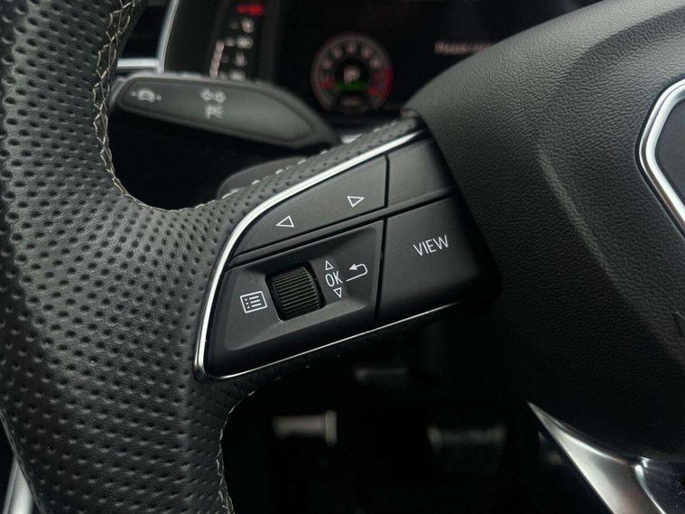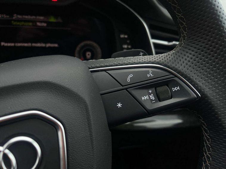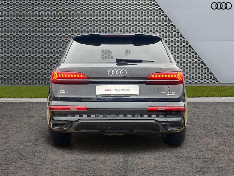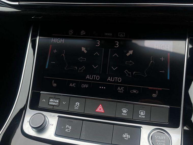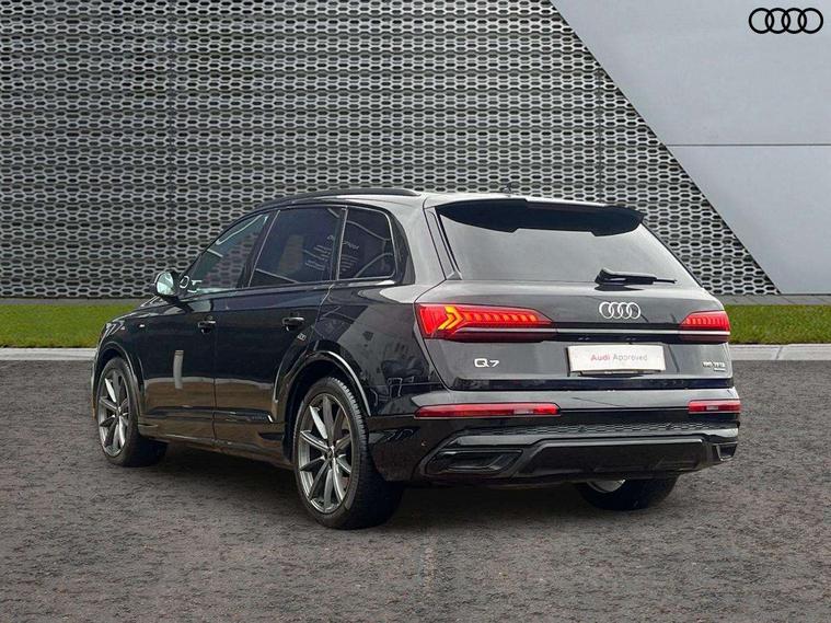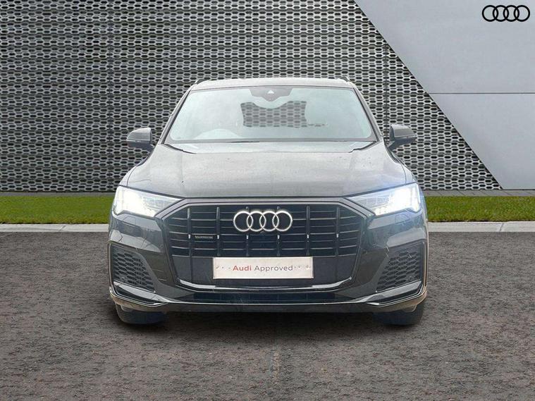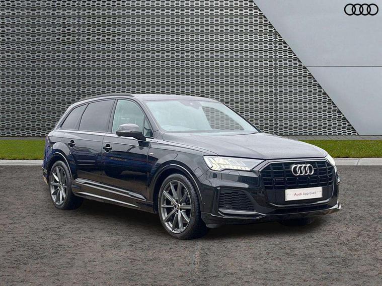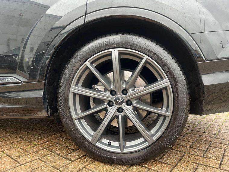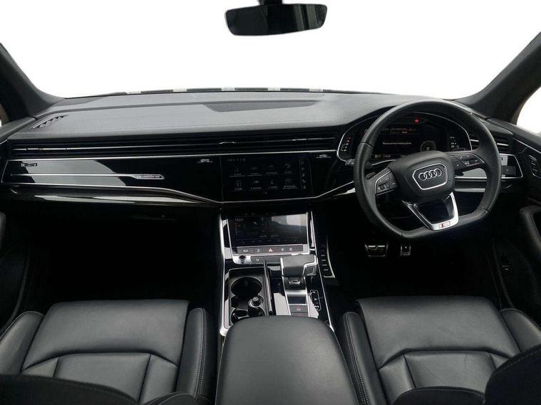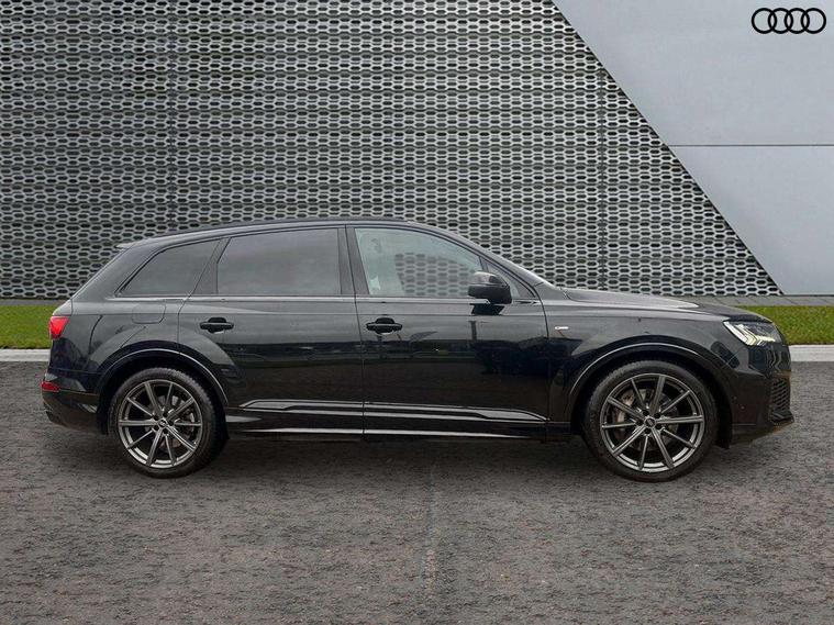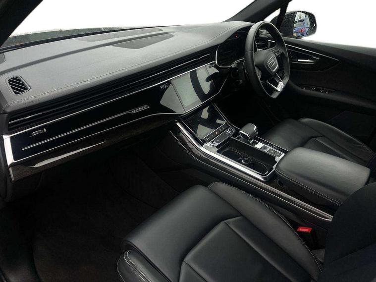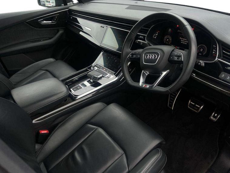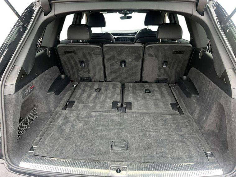 Audi connect safety and service (e-call), Audi connect with Amazon Alexa Integration, Audi drive select (Auto, Comfort, Dynamic, Efficiency, Individual, Off-road and All road), Audi phone box light with wireless charging, Audi virtual cockpit - 12.3" high-resolution LCD display with fully customisable instrument cluster, Bluetooth interface, Camera based traffic sign recognition, Electromechanical steering, MMI navigation plus with MMI touch screens includes 10.1" and 8.6" screens with haptic feedback, Natural voice recognition, Parking system plus with 360 degree display (front, rear and side sensors) - acoustic and visual park assist system, Power operated tailgate, Rear view camera, Smartphone interface includes wireless Apple carplay/Android Auto, Start/stop system, 48V Mild hybrid technology, 85 litre fuel tank, Adaptive air sports suspension, Quattro all wheel drive with self locking centre differential, Audi music interface - front 2 USB-C ports with charger and data functions, Audi sound system with 6 channel amplifier, 180 watt amplifying capacity and 10 loudspeakers including subwoofer, DAB digital radio module, 3rd brake light, Aluminium window trim, Audi Beam uses LEDs to project S emblem with red rhombus onto the ground when opening the side doors (front/rear), Auto dimming frameless rear view mirror, Black roof rails, Bumpers in contrast paint scandium grey finish includes door trim and wheel arch trim strips, inlays in door strip contain quattro embossing, Dark tinted Matrix LED headlights with dynamic front and rear indicators, Electrically adj heated/folding + automatically dimming exterior mirrors with memory + automatic kerb side function for passenger side exterior mirror, Heat insulating glass in windshield, Integrated LED indications in door mirrors, LED daytime running lights, LED rear tail lights, Privacy glass - dark tinted rear and rear side windows from B-pillar backwards, Rear side wing doors, Rear wiper, 2 seat bench in 3rd row, 2 zone automatic climate control, 3 seat bench in 2nd row, 7 seat layout with ISOFIX points for the front passenger seat and rear passenger seat, Black cloth headlining, Comfort front centre armrest, Electric adjustable front seat with 4 way lumbar support, driver memory functionality, Folding rear seats, Front head restraints, Front/rear floor mats, Heated front seats, Illuminated door sill trims with S logo, LED interior ambient lighting, Luggage compartment cover, Luggage compartment sill protection in stainless steel, Rear head restraints, Single front passenger seat, Stainless steel pedals, Sunvisors with illuminated vanity mirrors, Black styling pack plus - Q7, 3 point seatbelts on all rear seats, Audi pre sense front, Child locks on rear doors, Driver and front passenger, front side and curtain airbags, Electromechanical parking brake, Electronic Stabilisation Control (ESC) including ABS, ASR and EDL, Extended pedestrian protection measures, Hill hold assist, Seatbelt monitoring, Tyre pressure loss indicator, Warning triangle and first aid kit, Anti theft alarm, Anti-theft wheel bolts and wheel loosening detection, Keyless Go, Remote central locking, Polished oak trim with grey finish inlay, Tool kit, Tyre repair kit,