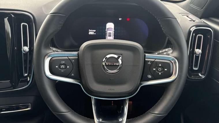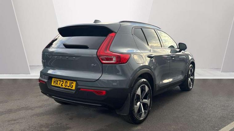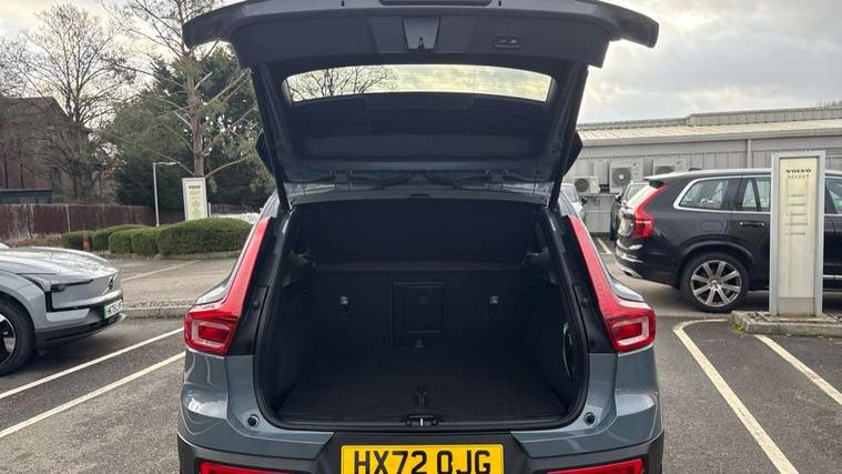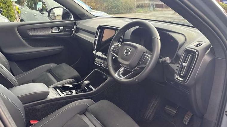 12.3" Progressive Driver Display, 360 degree surround view parking camera with side proximity sensors, 9" centre console portrait touch screen, Adjustable steering wheel force, Bluetooth hands free telephone kit, E-call, eCall emergency call system, Front park assist, Google automatic services - Nav with google maps, apple carplay/android auto, voice recognition with google assistant, Hands free power tailgate, Lane keep assist with driver alert control, Oncoming Lane Mitigation, Rear park assist, Speed limiter, Speed sensitive steering, Wireless/Inductive Mobile Phone Charging, Dynamic chassis, DAB Digital radio, High performance sound, 8 speakers/250W, front USB and 2 rear type C USB, Premium Sound by Harman Kardon, Dolby Pro Logic II Surround Sound, Dirac Unison, 12 speakers/600W and subwoofer, Steering wheel mounted remote controls, Adaptive brake lights with high level LED brake lights, Auto dimming interior mirror, Automatic headlamp levelling, Automatic LED Headlights + Active high beam incorporating daytime running lights, Dark tinted windows for rear door side windows and cargo compartment, Front aluminium tread plates, Front and rear electric windows, Headlight cleaning system, High gloss black front and rear skid plate, High gloss black mesh front grille with high gloss black surround, High gloss black window trim, Home safe and approach lighting, Integrated roof rails in high gloss black, LED front fog lights, Power glass tilt and slide panoramic sunroof with sun curtain, Puddle lights, Rain sensor with automatic windscreen wiper activation, Rear side wing doors, Rear wiper, Roof antenna, Roof spoiler, Visible VIN plate, 12V socket in front tunnel console and luggage compartment, 2-Zone electronic climate control with CleanZone air quality system and pollen filter, 3 seat bench in 2nd row, 3 Spoke tailored steering wheel with chrome trim, 60/40 versatile split folding rear seat, A-pillar parking ticket holder, Ambient front door and instrumental panel lighting, Centre console cupholders and storage, Flexible load floor and grocery bag holder, Floor mats, Front door pocket and front cupholder illumination, Front footwell illumination, Front headrests, Front reading light and theatre lighting, Front seat cushion extensions, Front tunnel pocket, Glovebox bag hook, Height adjustable passenger seat, Height/reach adjustable steering column, High gloss centre tunnel deco, Illuminated glovebox, Illuminated luggage compartment, Illuminated tailgate, Illuminated vanity mirrors, Integrated waste bin, Isofix attachments on outer rear seats, Load protection net, Multi directional lumbar support, Power driver seat with memory + exterior mirrors memory, Power folding rear headrests, Power passenger seat, Rear armrest / integral cup holders / storage tray, Rear reading and courtesy lights, Single front passenger seat, Underfloor cargo storage, Climate pack - XC40, Driver assist pack - XC40, 3x3 point rear seatbelts, City safety with steering support with Pedestrian + cyclist + front collision warning with full auto brake and rear auto brake, Drivers knee airbag, Dual stage driver/passenger airbags, Electronic parking brake with auto hold, First aid kit, Front and outer rear seatbelt reminder and pretensioners, Front seats SIPS airbags, Hill descent control, Hill start assist, Inflatable curtain, Passenger airbag cut-off device, Power child locks on rear doors, Road sign information display, Run off Road Mitigation, Run off Road Protection, SIPS (Side Impact Protection System), Slippery road and hazard light alert, Stability and Traction Control with Spin control, Engine Drag Control and Corner Traction Control, Tyre pressure monitoring system, Vehicle deceleration control with Anti-lock Brake System, Electronic Brake Distribution and Emergency Brake Assist, Warning triangle, WHIPS whiplash protection system - front, Anti-theft alarm including immobiliser/volume sensor + level sensor, Care key with user defined top speed, Key integrated remote control central locking + fuel flap with deadlocking system and auto open/close power windows, Keyless drive includes keyless entry and keyless start, Locking wheel nuts, Private locking for tailgate,