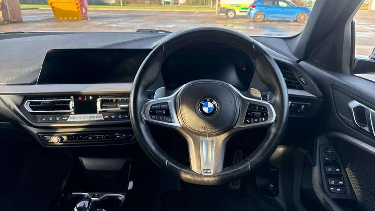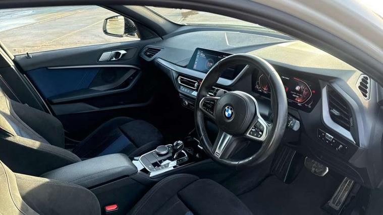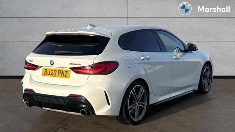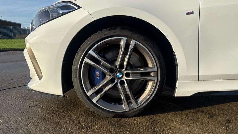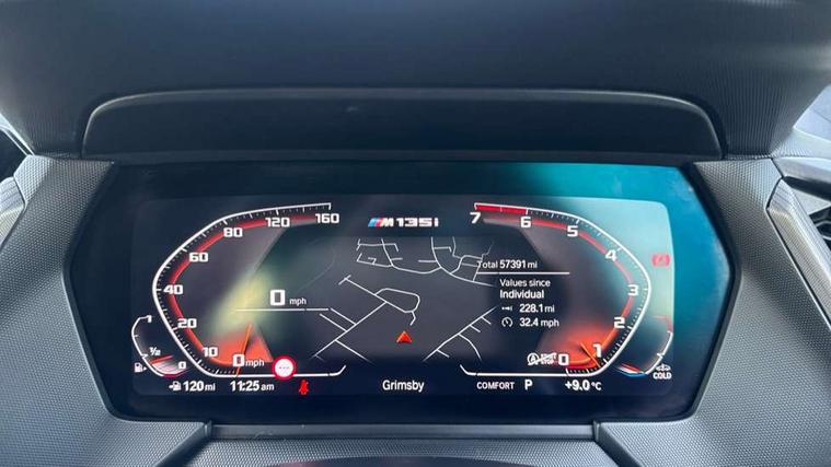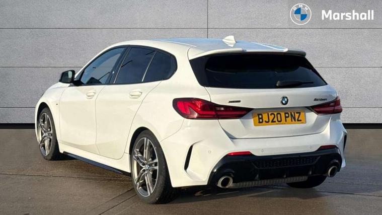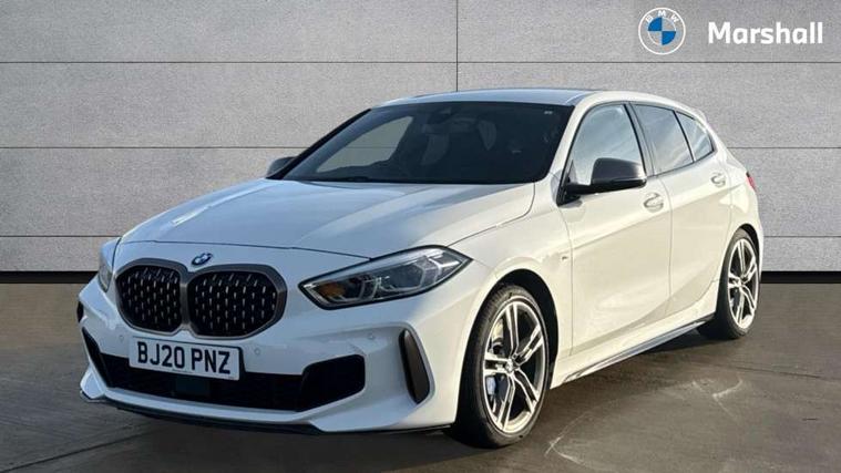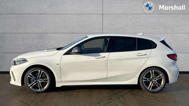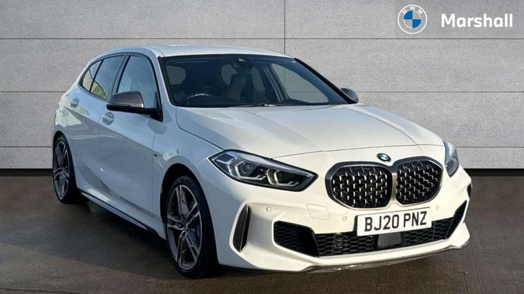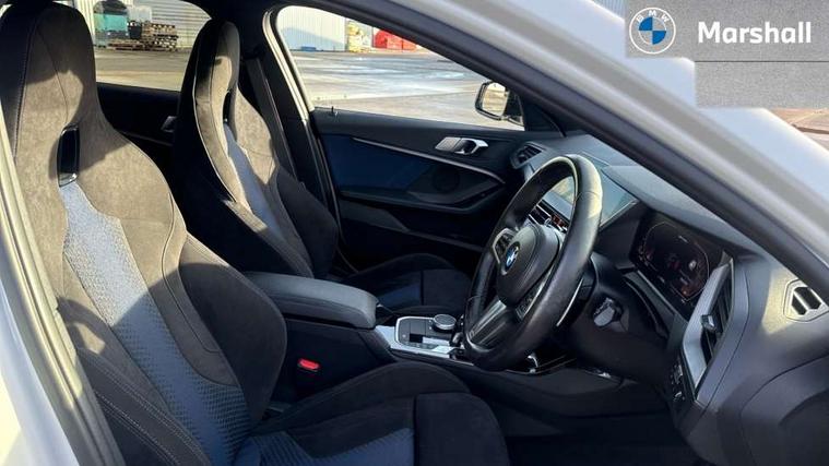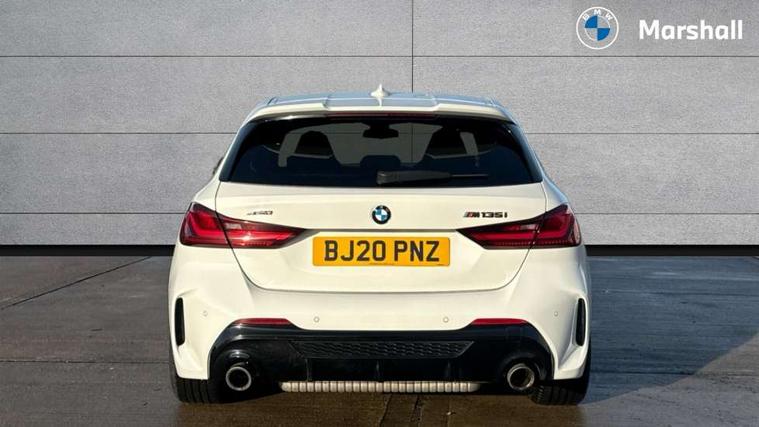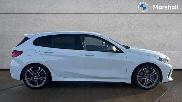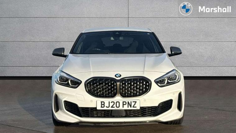 Active guard plus, Attentiveness assist, BMW Live Cockpit Professional sat nav system including 10.25" high resolution display and Intelligent Voice Assistant, BMW Online services, BMW Teleservices, Check Control warning system for monitoring of lights and door/luggage compartment open warning, Eco pro mode, Gearshift time display in manual mode, Integrated owners handbook, M Sports steering, Oil sensor for level and grade, On board computer, Optimum shift indicator, Personal Profile, Pull away assistant, Speed limiter, Sporty fast gear shifting in sport mode, Aluminium lightweight construction, Anti roll bar front and rear, Balancer shaft, Double VANOS, Drive Performance Control, Eight speed sport automatic transmission with electronic selector lever, Electronic differential lock, Engine cover with M performance designation, High precision injection, Larger fuel tank capacity (50 litres), Launch control, Petrol Particulate Filter, VALVETRONIC engine management, Bluetooth audio streaming, DAB Digital radio, Auto dimming rear view mirror, Automatic headlight beam throw control, Body colour door handles, Cerium grey exterior mirror caps, Direction indicator side lights in exterior mirrors, Electric folding and anti dazzle exterior mirrors, Fading support, Follow me home headlights, Front and rear electric windows with open and close fingertip control, anti trap facility and comfort closing, Front door sill finishers with M135i designation, Green tinted heat protection glazing, Heated, electrically adjustable exterior mirror aspheric on driver side, convex on passenger side, High gloss shadow line exterior trim, High gloss shadowline window frame, Recess cover mirror frames and B/C pillar embelisher trim, High level third brake light, Kidney grille frame in Cerium Grey with Mesh design, LED daytime running lights, LED eyebrow turn indicators, Lightweight engineering, M logo designation side in cerium grey, M performance exhaust system, M rear spoiler, Matt black air guide grilles, Model designation on right side of tailgate, Nearside reverse light in rear light cluster, Rain sensor including auto headlights activation, Rear fog lights, Rear window wiper, Round exhaust system with twin cerium grey tailpipes in left and right split, Shark fin antenna, Visible VIN plate, Welcome lighting, Windscreen wipers with integrated washing jets, 12V power socket in centre console, 2 cupholders in front centre console, 3 rear seat head restraints, 3 spoke M sports design leather steering wheel finished in nappa leather with specific M badge, Anthracite headlining, Anthracite Velour floor mats, Child seat ISOFIX attachment for two outer rear seats and front passenger seat with anchorage points, Conditioned based service, Driver and front passenger seat heating, Driver side folding compartment in instrument panel, Folding rear clothes hook, Folding rear seats, Four grab handles integrated in roof lining, Front and rear door pockets, Front and rear side armrest integrated into door trim, Front armrest foldable with integrated storage compartment, Front M seats, Glove compartment, Height adjustable front head restraints, Manual adjust steering wheel, Multi-function controls for steering wheel, Rear seat backrest with manual 60:40 split folding with 3 top tether clips integrated on rear of seat panels, Storage compartment in centre console, Sun visors with vanity mirrors and insert tab, Two zone automatic air conditioning, Connected pack professional - 1 Series, Extended Lighting pack - 1 Series M135i, Extended storage pack - 1 Series, Interior lights pack - 1 Series, Luggage compartment pack - 1 Series, M Sport exterior styling aerodynamics pack - 1 Series 135i, 2 tone horn, 3 point seatbelts on all seats, front pyrotechnic belt tensioners, stopper and belt force limiters, rear coded belt buckles, Airbags - Front driver and passenger, front and rear head, front side, curtain head protection, Anti lock braking system (ABS) with brake assist, BMW emergency call, Brake drying, Braking readiness, Crash sensor activating central locking release, hazard warning lights, fuel cut off, interior lighting + activation of safety battery terminal clamp, Driver and front passenger seat belt security check, Dynamic stability control + (DSC+), Dynamic Traction Control - DTC, Electrically operated hand brake, Front and rear disc brakes, Front passenger manual airbag deactivation, M Sport braking system, M sport seatbelt, Rear child proof door locks, Seatbelt warning, Side impact protection, Torsen mechanical limited slip differential, Tyre pressure monitoring system, Warning triangle and first aid kit, Automatic drive away locking facility, Central locking switch for all doors, fuel filler cap and luggage compartment, Deadlocking function system to all doors, Locking wheel bolts, Remote control with integrated key with High-gloss Black inlay and M designation and 1 button for open/ close lock, window, open luggage compartment, Start/stop button with comfort go keyless engine start and auto start stop deactivation button, Thatcham Cat.1 alarm and immobiliser, Contrast stitching on instrument panel, 18" Burnished M double spoke Bi-colour alloy wheels finished in Cerium grey matt - style 556M, BMW mobility system, Reduced rolling resistance tyres,