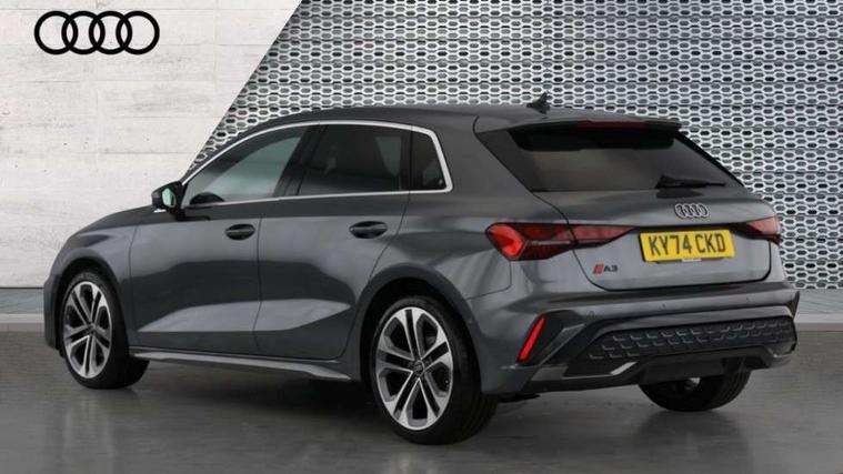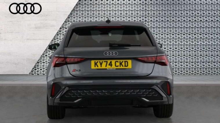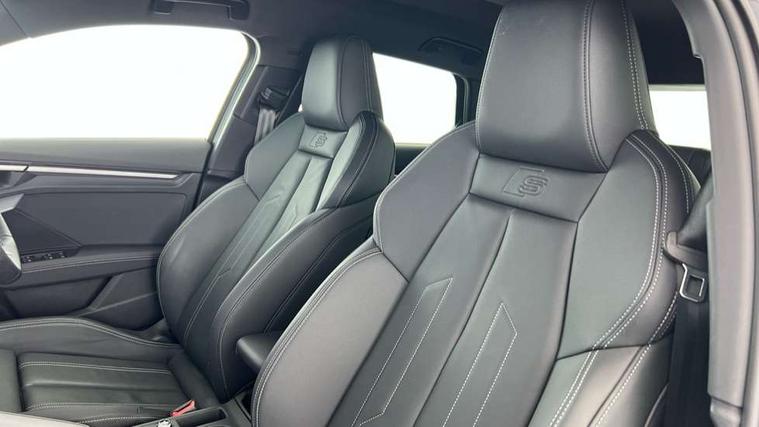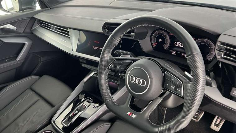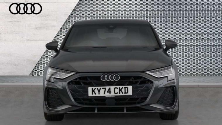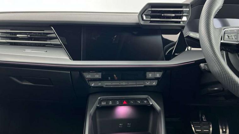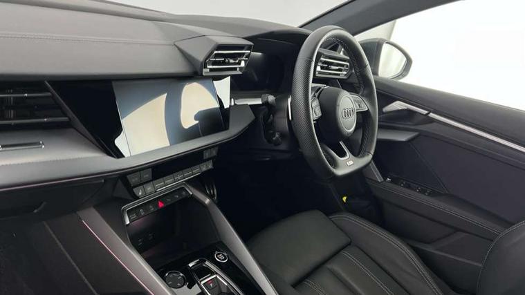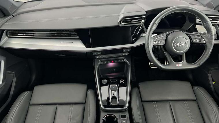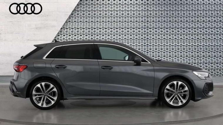 Adjustable speed limiter, Audi drive select, Audi smartphone interface with app store includes wireless Apple carplay, Android auto and Amazon alexa integration, Audi virtual cockpit plus - 12.3" full HD resolution dynamic digital instrument cluster, Automatic start/stop system with recuperation, Bluetooth interface, Camera based traffic sign recognition, Collision avoidance assistant, Cruise control, Distraction and Fatigue warning, e-Call (emergency call), Electromechanical power speed sensitive steering, Lane departure warning system, MMI Navigation Plus with high resolution 10.1" colour touch screen display, Park Assist with parking system Plus, Service indicator, Tailgate, Trip computer, Voice control system with natural language interaction, Sports suspension, Audi Phonebox light with wireless charging, Audi sound system - 10 loudspeakers including centre loudspeaker and subwoofer, DAB Digital radio, USB ports with charging function in the rear, Acoustic glass windscreen, Aluminium window trim, Auto dimming frameless rear view mirror, Body colour exterior mirrors, Chrome exhaust tailpipes, Electrically adjustable/heated/folding/auto dimming door mirrors with integrated LED indications + kerb view function for passenger side, Exterior model badging, Front and rear side air inlets in grained matt black with dark liquid chrome frame, Front electric windows, Front radiator grill in high gloss dark chrome, Heat insulating glass windscreen, Illuminated door sills with aluminium inserts at the front with S logo, LED 3rd brake light, LED daytime running lights, LED headlights with LED rear lights and dynamic rear indicators, Light and rain sensors, Privacy glass - dark tinted rear window, rear door and side windows, Rear diffuser and grill in grained matt black with inlay in dark liquid chrome, Rear electric windows, Rear side wing doors, Rear wiper, S line bumpers, S roof spoiler, Side S line emblems on front wings, Side sill trim in dark liquid chrome, 12V socket and storage compartment in front centre console, 3 seat bench in 2nd row, 3 spoke flat bottomed leather multifunction sport steering wheel with gear shift paddles, 3-zone deluxe automatic air conditioning, 4 way electrically adjustable lumbar support for driver and front passenger, 40/20/40 split folding rear seat bench, Black cloth headlining, Front and rear centre armrest in artificial leather, Front and rear headrests, Front/rear floor mats, Heated front seats, Height and reach adjustable steering wheel, Manual boot compartment lid, Manually adjustable front seats, Rear cup holders, S badging on the steering wheel, Seat side bolsters, Single front passenger seat, Stainless steel pedals and front footrest in black, Twin leather upholstery with front sports seats S embossed logo, Aluminium interior elements pack - A3 Sportback, Multi-coloured LED interior lighting package - A3, 3x3 point rear seat belts, Driver and front passenger airbag with passenger airbag deactivation, Electronic Stabilisation Control (ESC) including ABS, ASR and EDL, First aid kit with warning triangle and 2 safety vests, Front side airbags with head airbags and interaction airbag, Hill hold assist, Pre-sense front with pedestrian and cyclist detection, Seatbelt monitoring, Tyre pressure loss indicator, Anti theft alarm, Anti-theft wheel bolts, Electronically operated child locks, Immobiliser, Remote central locking with safelock, Dash & door Inlay in dark aluminium Spectrum,