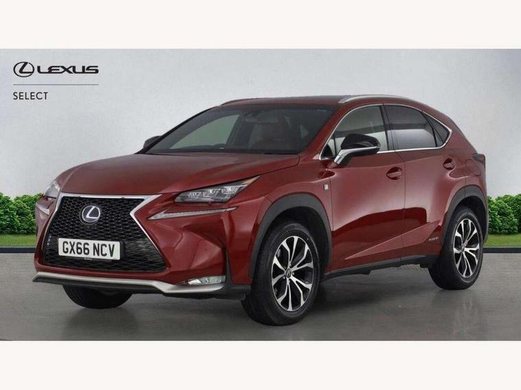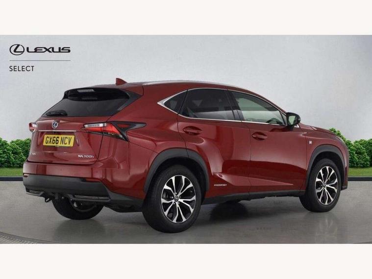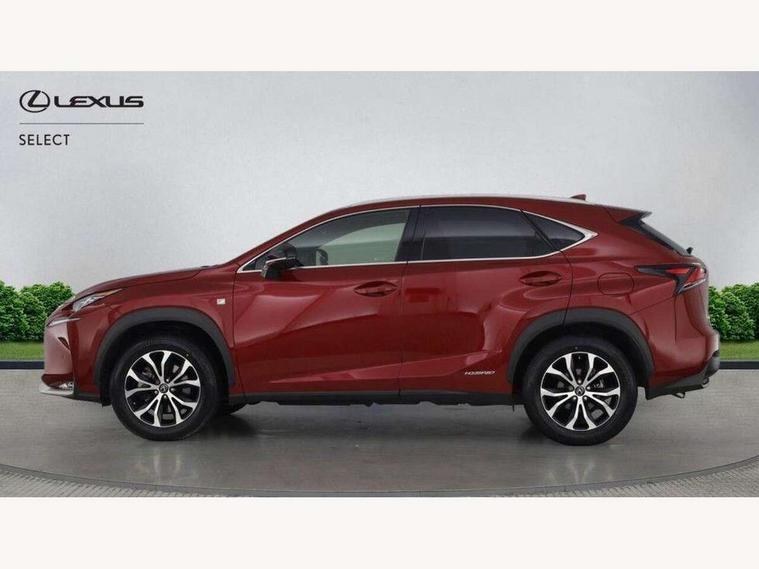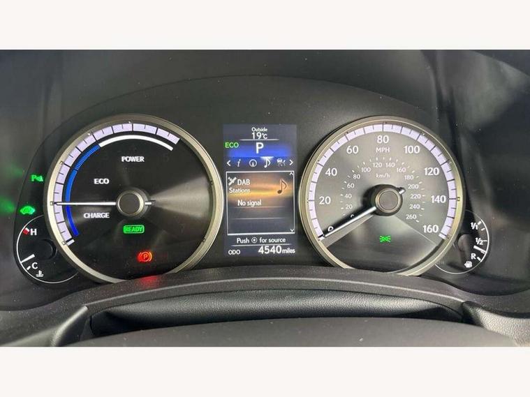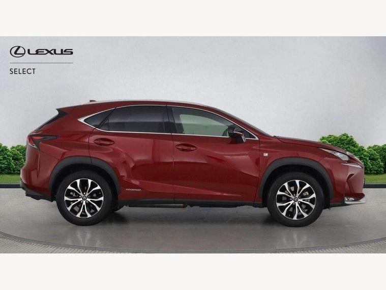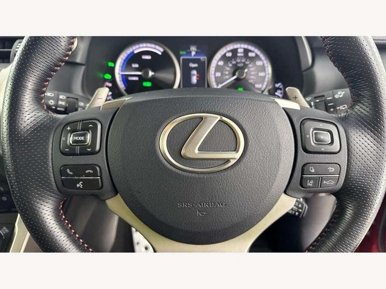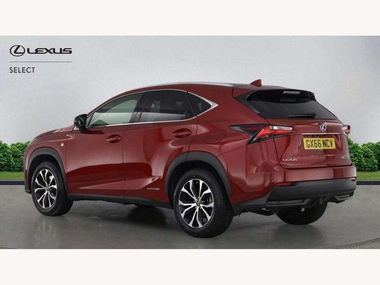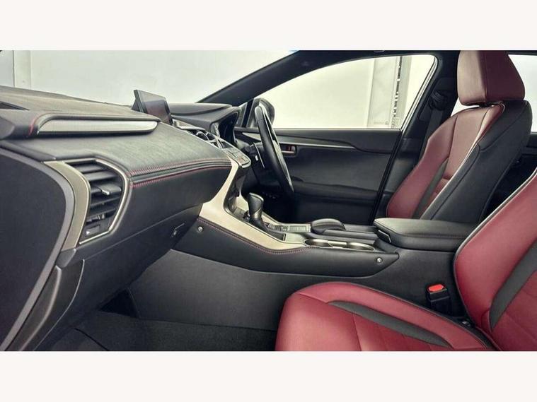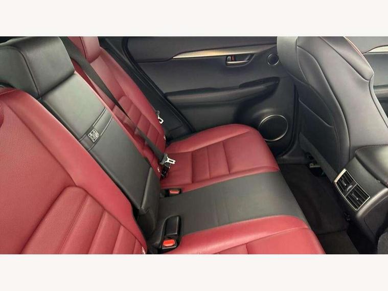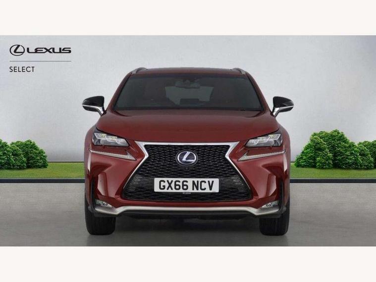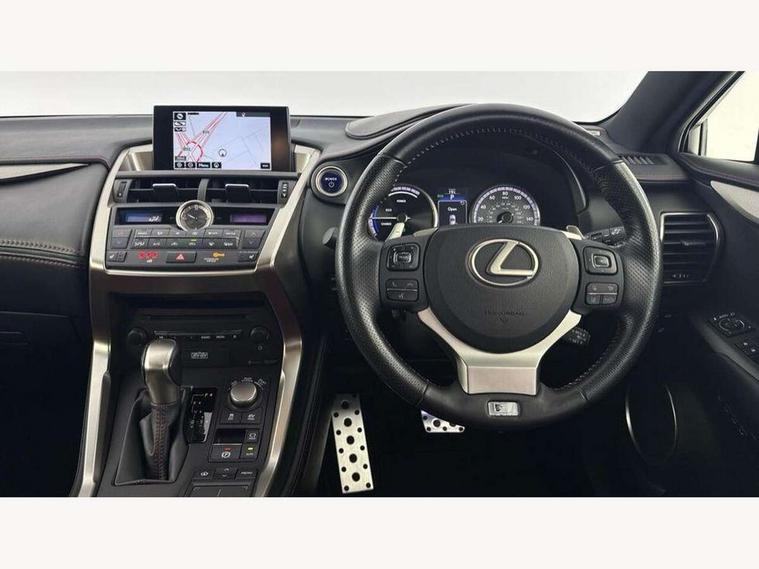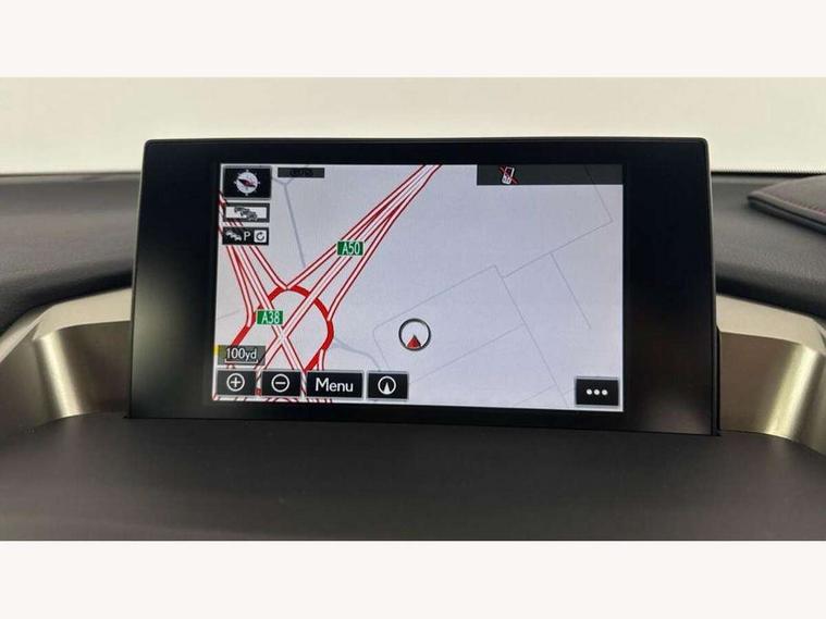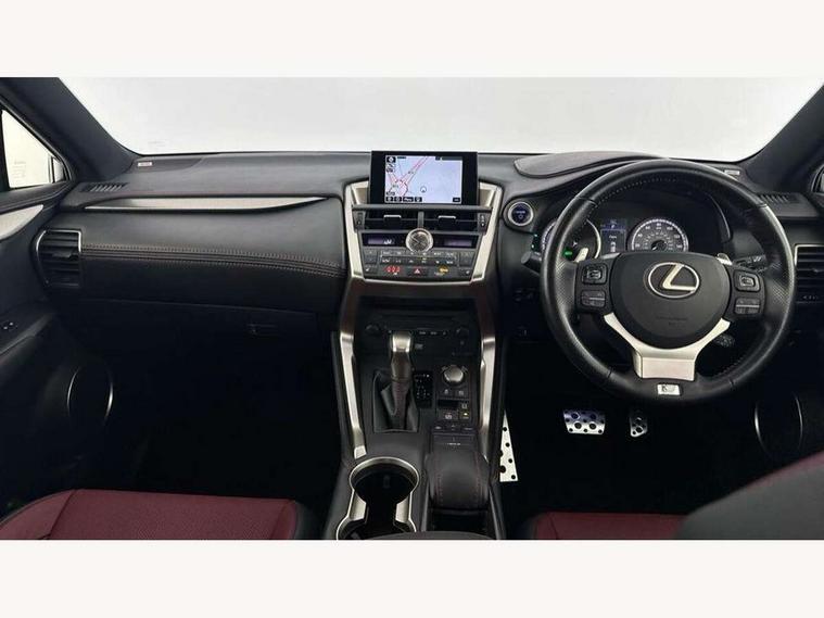 Adaptive cruise control + pre-crash system, Analogue clock, Bluetooth telephone connectivity, Drive mode selector, Front and rear parking sensors, Multimedia display, PAS, Push button starter, Reversing camera, Service interval indicator, Sports steering system, Trip computer, Performance dampers, Sports suspension, VDIM, Vehicle Stability Control (VSC), 8 Speakers, Aux input, DAB Digital radio, Radio/CD, Steering wheel mounted audio controls, USB connection, Black mirror caps, Body colour bumpers, Electric/heated/folding door mirrors, Electrochromatic rear view mirror, Front and rear electric windows, Headlight washers, Illuminated door handles, LED daytime running lights, LED front fog lights with static cornering light function, LED Headlights, Privacy glass, Puddle lights in exterior door handles, Rain sensor windscreen wipers, Rear wiper, Roof rails, Roof spoiler, Shark fin roof aerial, 12V socket in centre console and luggage area, 2 cupholders in front centre console, 3 spoke leather steering wheel, 60/40 split folding rear seat, 8 way electrically adjustable front seats, Aluminium foot rest, Aluminium pedals, Aluminium scuff plates, Black roof lining, Centre armrest with storage box, Driver's electric adjustable lumbar support, Driver's lumbar support, Dual climate control air conditioning system, Electric adjustable steering column, Front seat back map pockets, Gearshift paddles, Heated front seats, Isofix child seat attachment, Leather gear lever, Leather upholstery, LED interior illumination, Rear centre armrest with 2 cupholders, Rear headrests, Shopping hook in boot, Sliding sunvisors with illuminated vanity mirrors, Tie down hooks in luggage area, Convenience pack - NX, 3x3 point rear seatbelts, ABS, Active front headrests, Curtain airbags, Driver/Front Passenger airbags, Driver/front passenger side airbags, Drivers knee airbag, EBD + Brake Assist, Electronic parking brake, Front/rear seatbelt pre-tensioners, Hill start assist, Passenger airbag cut-off device, Rear passenger side airbags, Traction control, Tyre pressure warning, Alarm, Immobiliser, Remote central double locking, Smart keyless entry, Speed sensitive power door locks, Carbon interior trim, Space saver spare wheel,