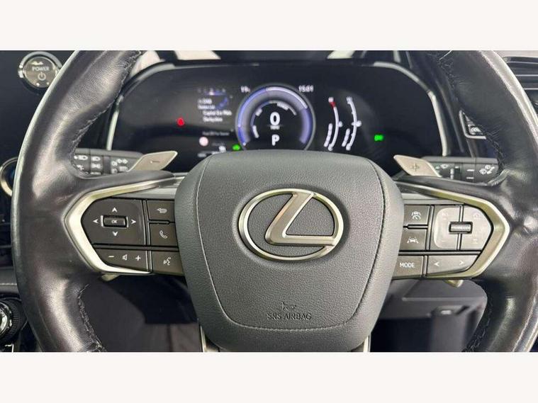 4 driving modes EV/Eco/Normal/Sport, 7" display in instrument binnacle, Bluetooth telephone connectivity, eCall emergency system, Electric speed sensitive power steering, Intelligent parking sensors - 4 front and 4 rear, Lane change flasher function, Lexus link connect - Cloud based navigation, cloud based voice assistant, always online and 9.8" VGA touchscreen, Push button starter, Reversing camera with back guidelines, Service interval indicator, Wireless Apple CarPlay and wired Android Auto, All Wheel Drive (AWD), Hybrid automatic transmission, Vehicle Dynamics Integrated Management (VDIM), Vehicle Stability Control (VSC), 10 speakers, 4 USB ports - 2 front, one USB C, 2 rear USB C, DAB Digital radio, Auto dimming interior rear view mirror, Automatic headlights, Bi LED headlights, Double hidden exhaust pipes, Front and rear one touch power windows, with anti-jam protection, Heated, auto-folding, auto-dimming outside mirrors with reverse tilt function and turn indicators, LED brake lights and rear lights with emergency brake signal, LED daytime running lights, LED front fog lights, LED Indicators, Light green UV acoustic rear doors & rear glass, Power back door system, Rain sensor windscreen wipers, Rear side wing doors, Rear wiper, Roof rails, 12V accessory port centre console and luggage compartment, 2 cupholders in front centre console, 2 x fixed shopping bag hooks in boot, 2 x sun visors with vanity mirror and lamp, 3 seat bench in 2nd row, 4 x tie down hooks in the boot, 6 tie down hooks in boot, 6 way manually adjustable front seats, 60/40 split folding rear seat, Adjustable rear seat backrest, Card holder installed in driver and passengers sun visors, Centre armrest with storage box, Dual climate control air conditioning system, Front and rear head restraints, Front and rear textile carpet mats, Front passenger seat, Heated front seats, Leather gear lever, LED interior illumination, Power adjustable leather steering wheel with paddle shifts, Rear centre armrest with 2 cupholders, Tahara leather upholstery, Whiplash Injury Lessening (WIL) feature (active headrest) for seats, 2 x Isofix child rear seat restraints, 3 point ELR front seatbelts with pretensioners, 3x3 point rear seat belts, ABS, Adjustable seat belt anchor points, Driver and front passenger 2 stage airbag, Driver/front passenger side airbags, Drivers knee airbag, E-Latch electric door release, EBD + Brake Assist, ECB (Electronically Controlled Brake System), Electronic parking brake, Front and rear curtain shield airbags, Front center airbag, Front passenger seat cushion airbag, Hill assist control, Lexus safety system - dynamic radar cruise control, pre collision system day and night, lane tracing assist, road sign, automatic high beam, OTA, Manual rear child locks, Passenger airbag cut-off device, Traction control, Tyre pressure warning, 2 x remote key fobs, Anti-theft system with alarm, intrusion sensor, glass breakage sensor, tilt sensor and engine immobiliser, Locking wheel nuts, Speed sensitive auto door locking, VIN Window etching, Black microdot inlay, Tyre repair kit,