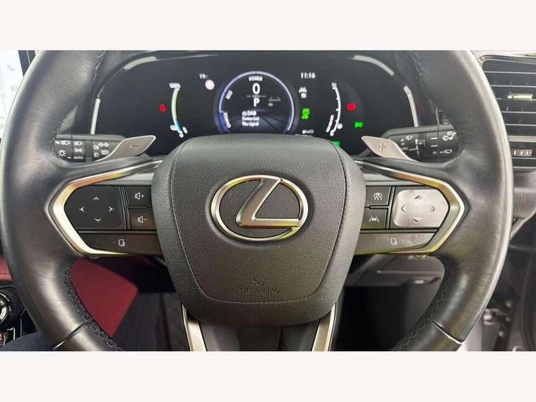 4 driving modes EV/Eco/Normal/Sport, 7" display in instrument binnacle, Blind spot monitoring with rear cross traffic alert, Bluetooth telephone connectivity, eCall emergency system, Electric speed sensitive power steering, Intelligent parking sensors - 4 front and 4 rear, Lane change flasher function, Lexus link connect - Cloud based navigation, cloud based voice assistant, always online and 9.8" VGA touchscreen, Push button starter, Reversing camera with back guidelines, Service interval indicator, Wireless Apple CarPlay and wired Android Auto, Wireless Smartphone charger, 6.6 kW onboard charger, All Wheel Drive (AWD), Hybrid automatic transmission, Vehicle Dynamics Integrated Management (VDIM), Vehicle Stability Control (VSC), 10 speakers, 4 USB ports - 2 front, one USB C, 2 rear USB C, DAB Digital radio, Auto dimming interior rear view mirror, Automatic headlights, Bi LED headlights, Double hidden exhaust pipes, Front and rear one touch power windows, with anti-jam protection, Heated, auto-folding, auto-dimming outside mirrors with reverse tilt function and turn indicators, Illuminated door handles with puddle light, LED brake lights and rear lights with emergency brake signal, LED daytime running lights, LED front fog lights, LED Indicators, Power back door with kick sensor, Privacy glass, rear doors and tailgate, Rain sensor windscreen wipers, Rear side wing doors, Rear wiper, Roof rails, 12V accessory port centre console and luggage compartment, 2 cupholders in front centre console, 2 way electrical lumbar adjustment for driver, 2 x fixed shopping bag hooks in boot, 2 x sun visors with vanity mirror and lamp, 3 seat bench in 2nd row, 4 x tie down hooks in the boot, 6 way manually adjustable front seats, 60/40 split folding rear seat, Adjustable rear seat backrest, Card holder installed in driver and passengers sun visors, Centre armrest with storage box, Dual climate control air conditioning system, Front and rear head restraints, Front and rear textile carpet mats, Front passenger seat, Heated front seats, Heated steering wheel, Leather gear lever, LED interior illumination, Power adjustable leather steering wheel with paddle shifts, Rear centre armrest with 2 cupholders, Tahara leather upholstery, Whiplash Injury Lessening (WIL) feature (active headrest) for seats, 2 x Isofix child rear seat restraints, 3 point ELR front seatbelts with pretensioners, 3x3 point rear seat belts, ABS, Adjustable seat belt anchor points, Driver and front passenger 2 stage airbag, Driver/front passenger side airbags, Drivers knee airbag, E-Latch with safe exit assist, EBD + Brake Assist, ECB (Electronically Controlled Brake System), Electronic parking brake, Front and rear curtain shield airbags, Front center airbag, Front passenger seat cushion airbag, Hill assist control, Lexus safety system - dynamic radar cruise control, pre collision system day and night, lane tracing assist, road sign, automatic high beam, OTA, Manual rear child locks, Passenger airbag cut-off device, Traction control, Tyre pressure warning, 2 x remote key fobs, Anti-theft system with alarm, intrusion sensor, glass breakage sensor, tilt sensor and engine immobiliser, Locking wheel nuts, Smart keyless entry, Speed sensitive auto door locking, Two motion door lock with double lock, VIN Window etching, 3D prism black Inlay, Tyre repair kit,