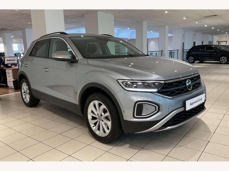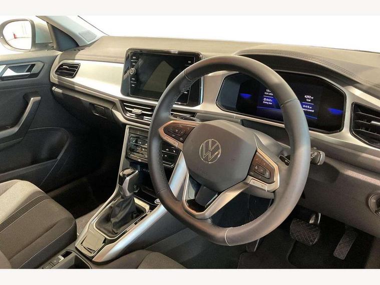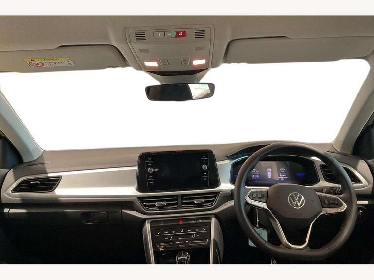 Advanced driver attention and drowsiness monitor, Dynamic road sign display, Emergency call service, Lane keeping system Lane Assist, Mobile phone interface, Modified key software - reduce switch off time for key status change to Long no motion, Online services, Park assist including front and rear parking sensors, Power assisted speed sensitive steering, Rear view camera, Service interval indicator, Tailgate/trunk lid release from outside, Think blue trainer driver tips and journey analysis, Warning sound and light for front seatbelts unfastened, Wireless app connect, Battery regeneration during braking, Front shock absorption, Rear shock absorption chassis with increased ride height, Start/stop function with battery regeneration, DAB Digital radio, Diversity antenna for FM reception, Music playback - MP3, WMA and AAC files, Premium USB cable in choice of either Apple or Android smartphone compatibility, SD card slot, Simultaneous pairing of 2 compatible mobile devices, Title and cover art display, We Connect and We Connect Plus functionality, Auto dimming interior rear view mirror, Automatic hazard lights activation under emergency braking, Automatic headlight control with LED separate daytime running lights with coming/leaving home function, Black roof rails, Body coloured bumpers and radiator grille with chrome trim and front fog lamps with chrome bezel, Body coloured exterior mirror housings and door handles, Electrically adjustable and heated door mirrors, Extended roof spoiler, Exterior mirrors aspherical on driver side, convex on front passenger side, External USB type C socket and charging sockets, Front windscreen wiper with intermittent wipe and 4 position delay, Heated rear window, LED 3rd brake light, LED rear combination lamps, LED rear number plate lights, Power windows with comfort operation and circuit breaker, Privacy glass for rear side windows and rear window, Rain sensor, Rear exhaust tailpipe, Rear fog light on one side and reversing lights on both sides, Rear side wing doors, Rear wash/wipe with intermittent wipe setting, Remote electrically foldable door mirrors, puddle lights and reverse activated passenger's door mirror, 12V power socket in centre console, 3 rear head restraints, 3 seat bench in 2nd row, 4 load lashing points in luggage compartment, Air care climatronic air conditoning system with active combination filter and 2-zone temperature control, Black stitching for floor mats, Ceramique roof liner, Cloth upholstery, Door and side trim panel in cloth, Drawer under drivers seat, Driver/front passenger seat height adjustment, Front centre armrest, Front comfort sports seats, Front cupholders x 2, Front reading light, Front seat back storage pockets, Glove compartment door with light, Instrument lighting, white adjustable panel illumination, Interior ambient lighting and surround lighting, Interior light delay, Isofix child seat preparation, Leather gearshift handle, Load-through provision with cup holder when folded down ('Unsplit rear seat bench, split folding backrest, with centre armrest), Luggage compartment lighting, Lumbar support for driver's and front passengers seat, Non-folding front passenger seat backrest, Single front passenger seat, Storage compartment in left and right luggage area, Storage compartment in rear doors, Storage compartments in driver and front passenger doors, Sunvisors with illuminated vanity mirrors, Variable boot floor, height adjustable and removable, Driver assistance pack without proactive passenger protection - T-Roc Life/Match, 3 point height adj front seatbelts + pretensioners, 3 point seatbelts in outer rear with ECE label, ABS, Child locks on rear doors, City emergency braking and pedestrian monitoring, Driver and front passenger airbag with front passenger airbag deactivation, Driver and front passenger safety-optimised head restraints, Drivers seatbelt reminder, Electronic parking brake, Electronic Stability Control (ESC) inc EDL (Electronic Differential Lock) and ASR (Traction Control), Front and rear passengers curtain airbag system including front side airbags, Front disc brakes, Hill start assist, Predictive pedestrian protection, Rear disc brakes, Two tone horn, Tyre pressure loss indicator, Volkswagen roadside assistance, Alarm with interior protection, Keyless locking and starting system keyless access with safelock, Pewter matt decorative inserts for intrument panel, centre console and door panels at the front, Trims for alloy wheels,
