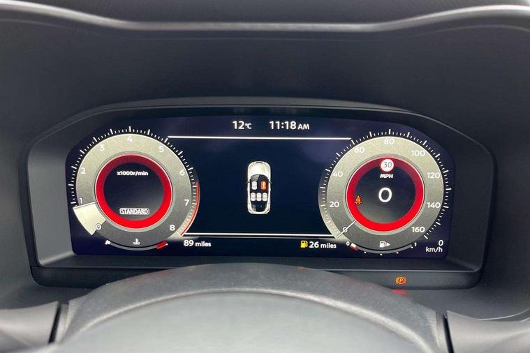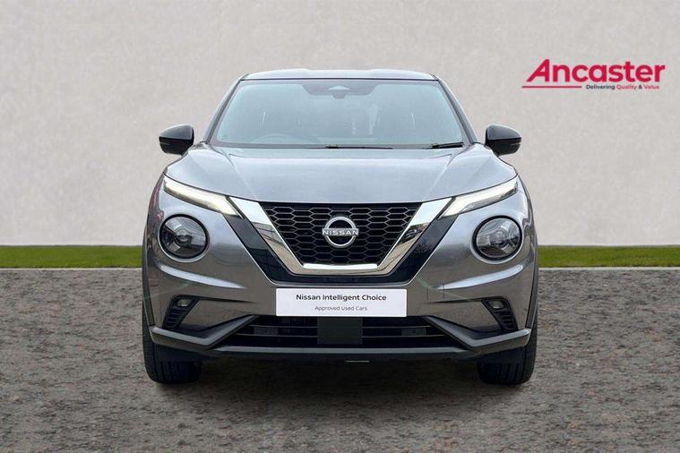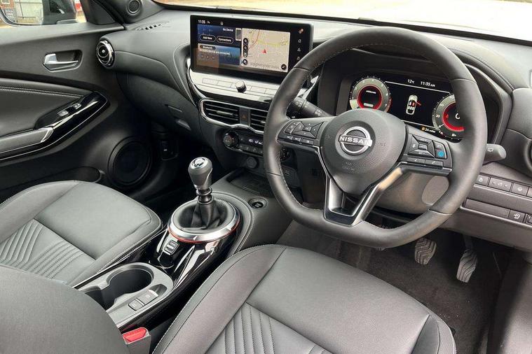12.3" full colour TFT screen combimeter, Drive modes select (Eco, normal and sport), Emergency and breakdown call, Front parking sensor, Idle start/stop system, Intelligent driver alert system, Intelligent lane intervention, Lane departure warning system, Nissan connect 12.3" touch screen entertainment system, Nissan connect nav with TomTom traffic, Nissan connect services, Outside temperature sensor, Power Steering, Rear parking sensor, Stop/start button, Traffic sign recognition, Trip computer, Voice recognition, WiFi connectivity, Wireless Apple CarPlay and Google Android auto, Wireless Smartphone charger, 10 Bose speakers 8 speakers and 2 headrest speakers for driver/passenger seats, 2 X Rear console USB port, Bluetooth system, USB, Aux-in and 12V socket, Bose personal plus audio system, DAB Digital radio, Auto dimming frameless rear view mirror, Automatic hazard signal with emergency stop signal, Body colour door handles, Electrically adjustable door mirrors with integrated indicators, Follow me home headlights, Front and rear electric window with one touch driver window, High beam assist, LED 3rd brake light, LED daytime running lights, LED front fog lights, LED headlamps, LED rear fog lamp, LED rear lamps, One touch passenger window, Rear privacy glass, Rear side wing doors, Rear wiper, Roof spoiler, Shark fin roof antenna in solid Black, Solid black door mirrors, Three blink turn signal, 3 height adjustable rear headrests, 3 seat bench in 2nd row, 60/40 split folding rear seat, Card holder on driver sunvisor, Door ambient lighting, Driver seat back pocket, Driver side rear coat hanger, Driver/passenger sunvisors and vanity mirrors, Front and rear cabin lights, Front armrest, Front door pockets with bottle holders, Front head restraints, Front/rear passenger grab handles, Gear console ambient circle lighting, Height adjustable driver's seat, Internal chrome door handles, Luggage board, Luggage space lighting, Monoform sporty seats, Multifunction steering wheel, Passenger seat back pocket, Rear door bottle holders, Single front passenger seat, Smooth synthetic leather steering wheel, Synthetic leather kneepad, Synthetic leather shift knob, Synthetic leather upholstery, Telescopic steering wheel adjustment, Two cupholders in front centre console, Two rear isofix child seat anchorage points with top tether, Welcome light and console tray ambient lighting, Advanced safety shield pack - Juke Manual, Comfort pack - Juke, Heat pack with height adjustable passenger seats - Juke, ABS with EBD and brake assist, Active ride control, Active Trace Control, Driver and passenger airbags, Driver and passenger side airbags, Electric handbrake with auto hold function, Electronic Stability Programme (ESP), Front and rear curtain airbags, Height adjustable seatbelts, Hill start assist, Intelligent emergency braking with pedestrian and cyclist recognition, Rear door child safety locks, Seatbelt reminder for driver/front passenger and rear seats, Three 3 point rear seatbelts, Traction control, Tyre pressure monitoring system, VDC Dynamic Vehicle Control, Alarm, Immobiliser, Intelligent key and start push button with walk away lock and approach unlock functions, Remote central locking, 19" Alloy wheels, Tyre puncture repair kit,