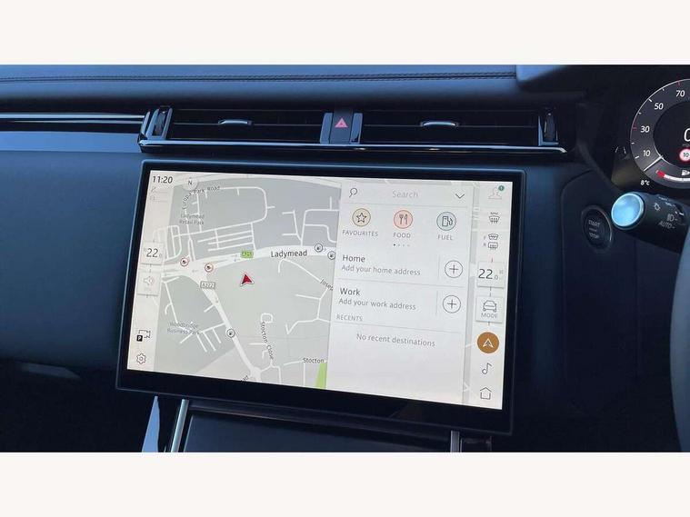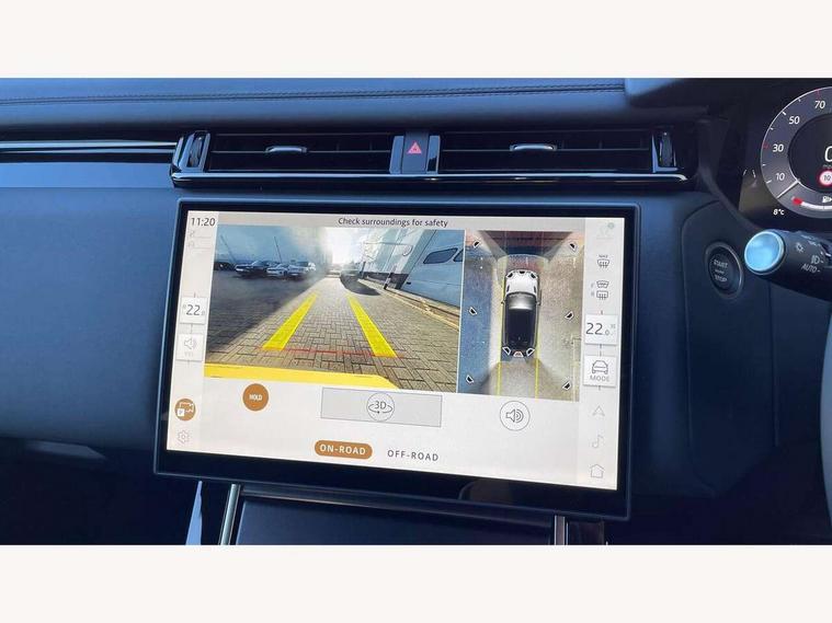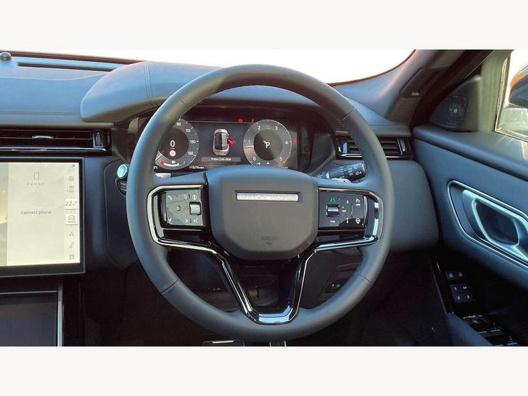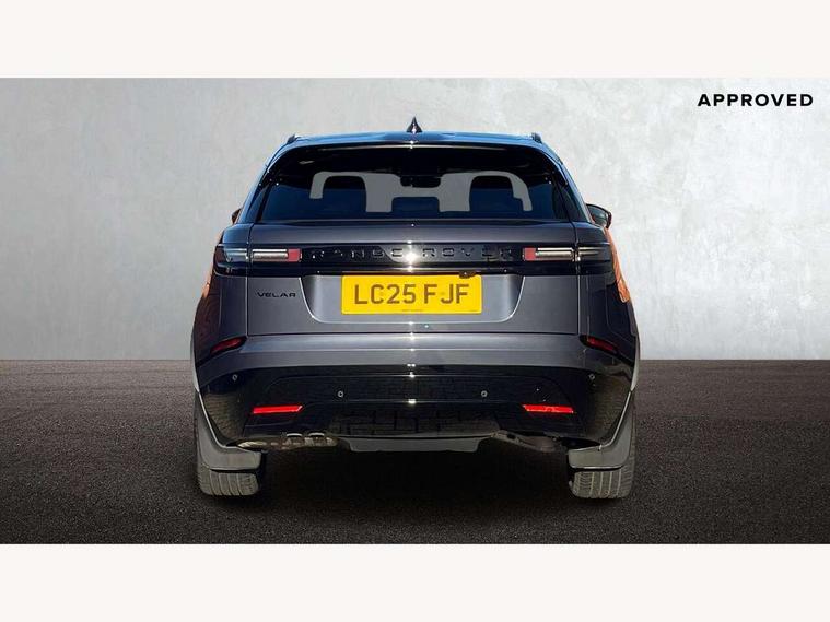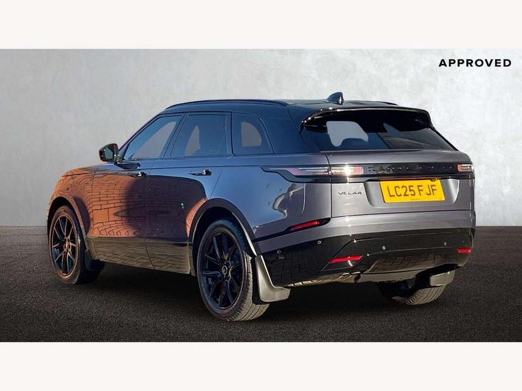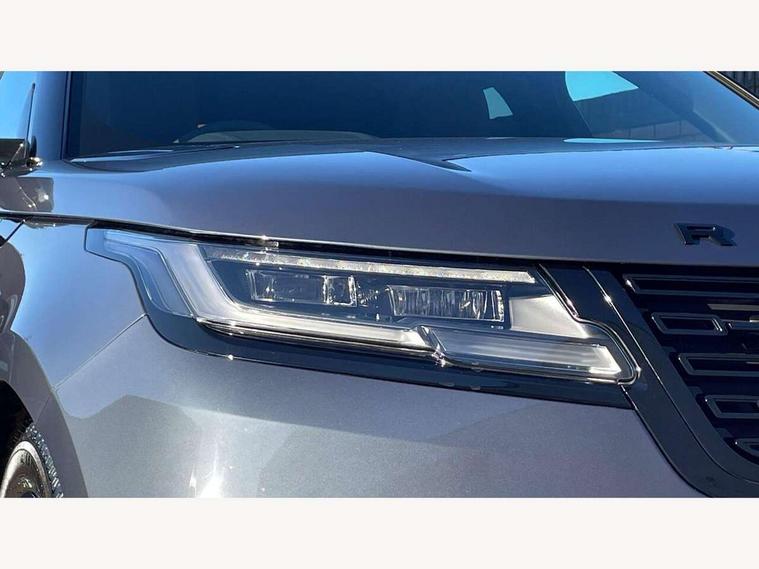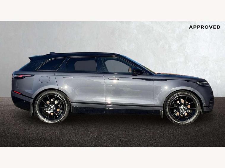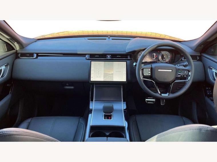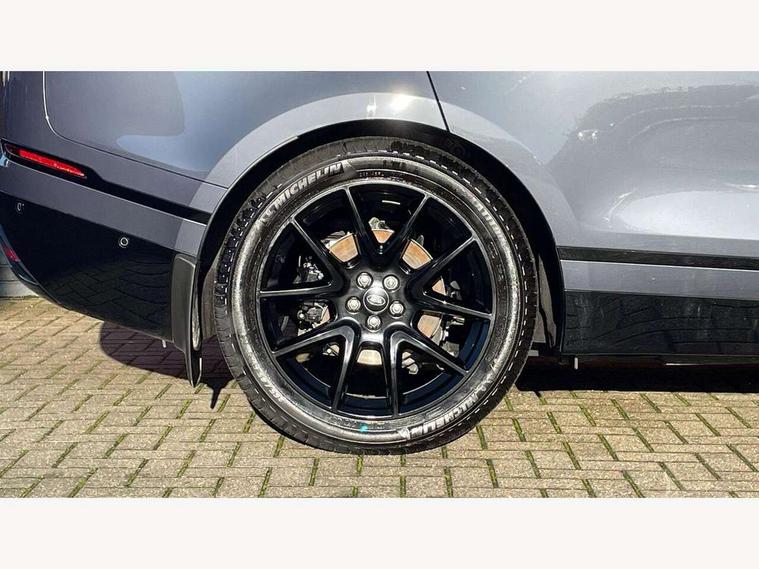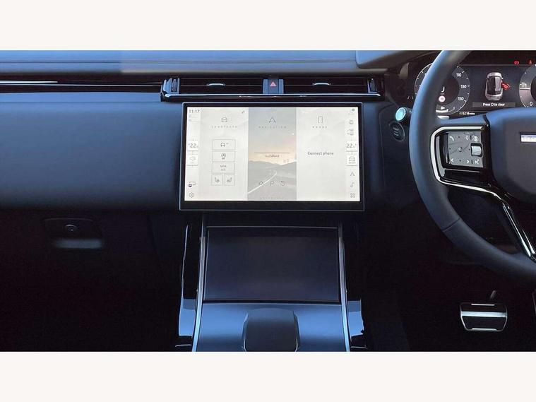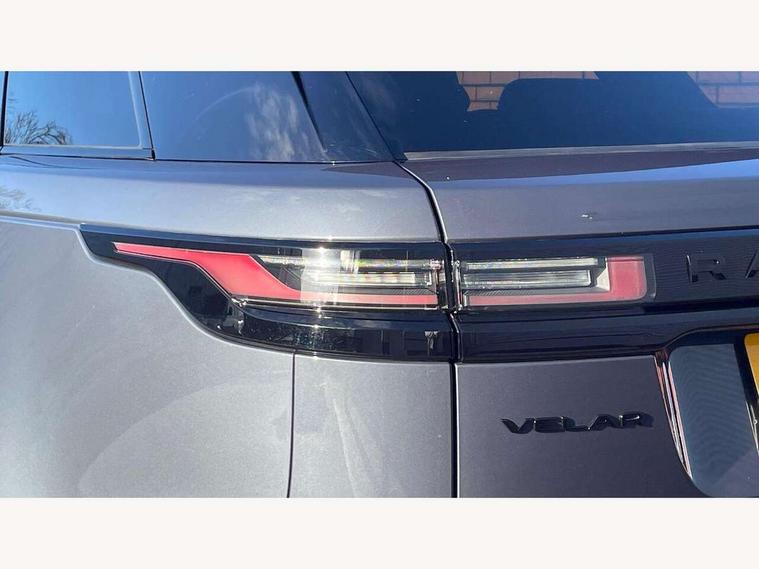 3D surround camera includes forward traffic detection and vehicle guidance, Android Auto, Apple CarPlay, Blind spot assist, Bluetooth connectivity, Brake pad wear indicator warning light, Driver condition monitor, eCall emergency call system, Front and rear parking aid, InControl remote, Land Rover InControl apps, Lane keep assist, Pivi pro with connected navigation, Rear traffic monitor, Service indicator, Speed proportional electronic power assisted steering (EPAS), Traffic sign recognition with adaptive speed limiter, Trip computer, Voice control system, Wade Sensing, Wireless device charging, 8 speed automatic transmission, All terrain progress control, Coil suspension system, Open differential with torque vectoring by braking, Single speed transfer box, DAB radio, Steering wheel mounted controls, 3rd brake light, Acoustic laminated windscreen, Auto dimming interior rear view mirror, Auto high beam assist, Automatic headlamp levelling, Automatic headlights, Body coloured bumpers, Boot protection plate, Electric windows with one touch open/close and anti trap, Flush deployable exterior door handles, Follow me home headlights, Heated rear window with timer, Heated washer jets, Heated windscreen, LED headlights with signature DRL, Metal front tread plates, Metal load space scuff plates, Power fold, auto-dimming, heated door mirrors with memory and approach lights, Rain sensor windscreen wipers, Rear animated directional indicators, Rear fog lights, Rear side wing doors, Rear wash/wipe, Tailgate/boot lid spoiler, Trailer stability assist, Velar badge, 14 way electrically adjustable front seats with driver's memory function, 3 seat bench in 2nd row, Ambient lighting, Bright metal pedals, Carpet mats, Driver/passenger sunvisors with illuminated vanity mirrors, Ebony morzine headlining, Electrically adjustable steering column, Heated steering wheel, Isofix system on outer rear seats, Loadspace cover, Overhead lighting console, Overhead stowage for sunglasses, Passive front headrests, Rear air vents, Rear centre headrest, Single front passenger seat, Twin front cupholders, Twin sliding front centre armrest, Online pack with data plan - Velar, Power socket pack 2 - Velar, 355mm Front and 325mm Rear brakes, 3x3 point rear seatbelts, Anti-lock braking system (ABS), Cornering brake control, Curtain airbags, Customer configurable autolock, Door side intrusion beams, Driver airbag, DSC - Dynamic Stability Control, Electronic brake force distribution, Electronic parking brake, Electronic traction control, Emergency braking, Front and rear seatbelt reminder, Hill descent control, Hill launch assist, Low traction launch, Passenger airbag, Power operated child locks, Rear airbags, Roll stability control, Side airbags, Tyre pressure monitoring system (TPMS), Global lock and unlock switch on driver door, Immobiliser, Intrusion sensor, Keyless entry, Lock only switch on front passenger door, Locking wheel nuts, Perimetric alarm, Remote central locking, All season tyres,