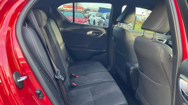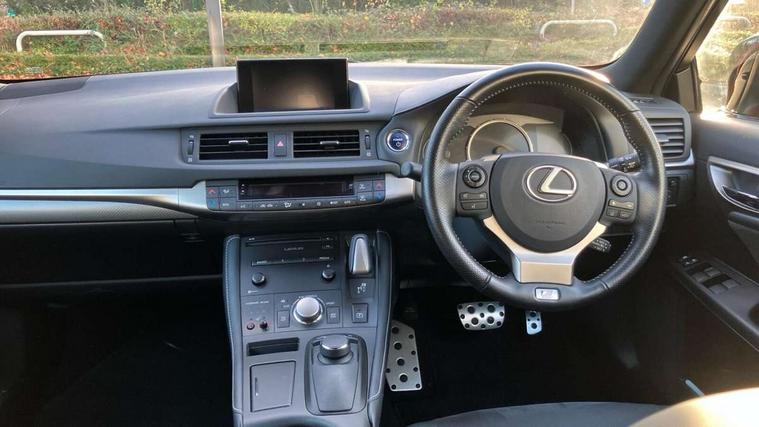 Bluetooth mobile phone connection, Digital clock, Drive mode selector, EPS with speed sensitive steering, Lexus Navigaton System, Lexus safety systems+ Dynamic radar cruise control, pre-collision system, lane keep assist, road sign assist, automatic high beam, Push button starter, Reversing camera, Trip computer, Lateral damping system, Sports suspension, Vehicle Dynamics Integrated Management, Vehicle Stability Control (VSC), 2 USB ports, 4.2" thin film transistor, AUX socket with VTR compatibility, DAB Digital radio, Lexus media display with 6 speakers, 7" display screen, CD and rotary dial controller, Auto dimming rear view mirror, Body colour bumpers, F Sport exterior styling - black mesh grille, black lower fog light bezel, front/rear bumpers, large rear spoiler+air ducts, badge, black mirror cover, Front and rear one-touch automatic power windows equipped with a jam protection, Halogen headlights, Heated and electrically folding outside mirrors with turn indicators and puddle light, LED brake lights and rear lights with emergency brake signal, LED daytime running lights, LED front fog lamps, Rain sensor windscreen wipers, Rear privacy glass, Rear wiper, 2 cup holders in the front and rear centre console, 2 map pockets in the rear of the front seats, 2 x coat hooks in the rear, 2 x sun visors with vanity mirror and lamp, 4 x tie down hooks in the boot, 60/40 split folding rear seat, Card holder installed in drivers sun visor, Driver 6-way manually adjustable front seat, Driver and passenger door pocket, Dual zone climate control, F Sport aluminium sports pedals, Fabric/Tahara leather upholstery, Front aluminium scuff plates, Front and rear head restraints, Front and rear textile carpet mats, Front centre armrest with storage, Front glove box with lock, Front sport seats, Heated front seats, Manually reach and rake adjustable F Sport leather steering wheel, Multifunction steering wheel, Passenger 4-way manually adjustable front seat, Storage tray under the deck board boot + storage location for tonneau cover, Sunglasses storage by interior rear view mirror, Whiplash lessening front seats, 2 x Isofix child rear seat restraints, 3 point ELR front seatbelts with pretensioners, ABS, BAS (Brake Assist System), Driver and front passenger 2 stage airbag, Driver and front passenger knee airbag, Driver and passenger side airbags, ECB (Electronically Controlled Brake System), Electronic brake force distribution, Front and rear curtain airbags, Hill assist control, Passenger airbag cut-off device, Three 3 point rear seatbelts, Traction control, Tyre pressure warning, Anti-theft system with siren, intrusion sensor, tilt sensor and immobiliser, Locking wheel nuts, Remote central locking, Two motion door lock with double lock, VIN Window etching, 17" F Sport Dark premium metallic alloys wheels, Space saver spare wheel,