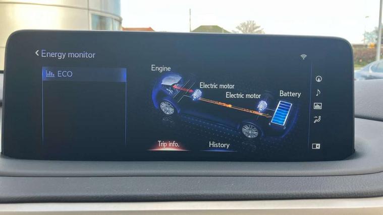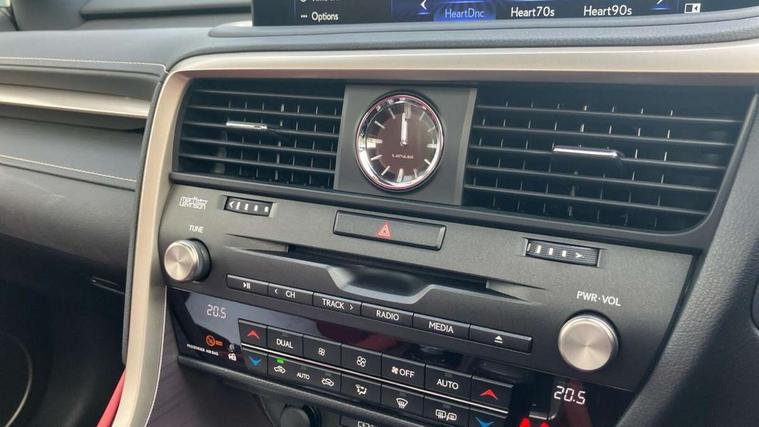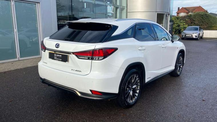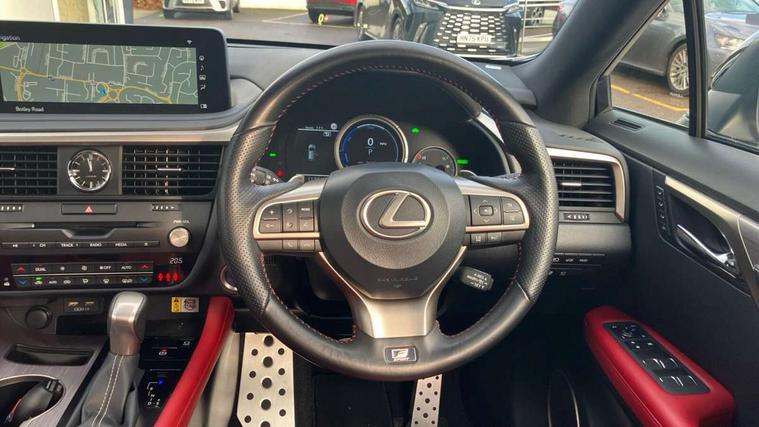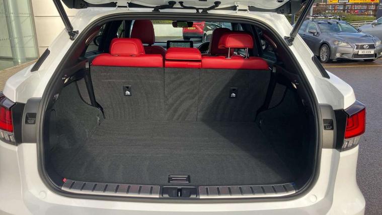 12.3" Touchscreen display and remote touch interface, 5 Driving modes EV/Normal/Eco/Sport/Sport+, Analogue clock with GPS function, Apple car play/Android Auto, Bluetooth mobile phone connectivity, Electric power steering, F SPORT combination meter, F SPORT steering, Front and rear parking sensors with intelligent clearance sonar, Hands free power boot lid operation with kick sensor, Lane change flasher function, Lexus link connected services with available optional wifi, Lexus Premium Navigation with full European map capability, street view and connected services, Multi-information display 4-inch TFT, Push button starter, Reversing camera with back guide lines, Wireless Smartphone charger, Adaptive variable suspension, F SPORT specific suspension tuning, Front and rear performance dampers, Vehicle Dynamics Integrated Management (VDIM), Vehicle Stability Control (VSC), 12 speakers Pioneer audio, AUX socket with VTR compatibility, DAB Digital radio, DVD, Front and rear USB ports, 3 eye LED headlights with adaptive high beam system with bladescan, Auto dimming rear view mirror, F SPORT exterior styling consists of Mesh front grille, front and rear bumper, badging, black outside mirror covers, Front and rear electric windows, Headlight washers, Heated, auto-folding door mirrors, auto dimming with rerverse tilt and memory, LED brake lights and rear lights with emergency brake signal, LED cornering headlights, LED daytime running lights, LED front and rear sequential indicators, LED front fog lights, Privacy glass, rear doors and tailgate, Puddle lights, Rain sensor windscreen wipers, Roof rails, 2 map pockets in the rear, 2 way electric lumbar support, 2 way manually adjustable front headrests, 2 way manually adjustable rear headrests, 2 x fixed shopping bag hooks in boot, 2 x Sunvisors with vanity mirror and lamp, 3 x 12V power sockets, 4 x tie down hooks in the boot, 60/40 split folding rear seat with 40/20/40 folding ability, 8 way electrically adjustable front seats, Active sound control, Card holder installed in driver and passengers sun visors, Centre and rear armrest with 2 cupholders, Centre armrest with storage box, Climate concierge, Drilled F SPORT aluminium sports pedals, Driver seat memory function, Driver's seat easy access auto retraction function, Dual zone climate control air conditioning system with S flow and Nanoe technology, Electrically adjustable F SPORT leather steering wheel with paddle shifts and auto retraction function, Electrically adjustable steering column, F SPORT leather gearlever, F SPORT seats - Leather upholstery, Glasses holder in roof lighting panel, Heated front seats, Heated steering wheel, Illuminated entry system, Isofix standard child seat restraint mounting, LED interior illumination, Rear armrest with storage, Rear door sunshades, Sliding/reclining rear seats, Small compartment to right of steering wheel, Textile carpet mats, Unique LED illumination instrumnet panel, Ventilated front seats, 3 point ELR front and rear seatbelts with pretensioners, ABS, Curtain airbags, Driver and front passenger 2 stage airbag, Driver/front passenger side airbags, Drivers knee airbag, EBD + Brake Assist, Electronic parking brake, Electronically controlled braking, Front passenger seat cushion airbag, Hill start assist, Lexus safety system + includes dynamic radar cruise control, pre collision system day and night, lane tracing assist, road sign, adaptive high beam, Passenger airbag cut-off device, Rear passenger side airbags, Traction control, Tyre pressure warning, WIL whiplash protection front seats, Anti theft system with alarm, intrusion sensor, tilt sensor, glass breakage sensor and engine immobiliser, Locking wheel nuts, Security window etching, Smart keyless entry, Two motion door lock with double lock, Aluminium inlays, 20" F SPORT alloy wheels, Temporary spare wheel,