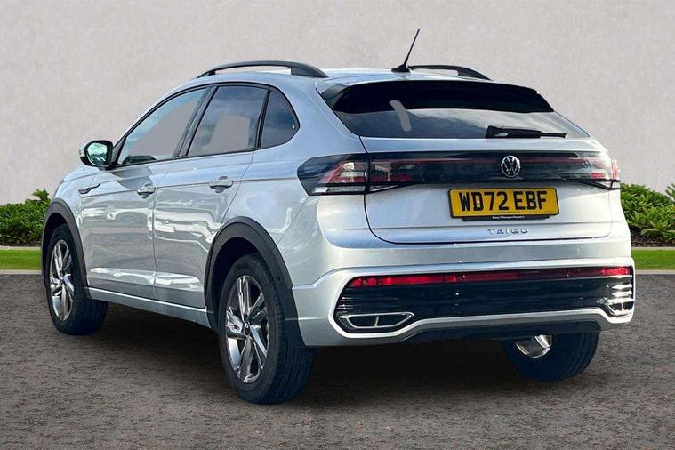 App-Connect including App-Connect Wireless, Digital cockpit pro - 10.25" high resolution TFT dash display screen with customizable menus and information, Driver alert system, Driving profile selection, e-Call (emergency call), Power Steering, Travel assist including emergency assist, Washer fluid level indicator, Wireless Charging including Bluetooth, Start-stop system with battery regeneration (recuperation - energy recovery during braking), XDS electronic differential lock for improved traction and handling, Digital radio reception (DAB+), Diversity antenna for FM reception, WeConnect plus, Aspherical driver's exterior mirror, Auto headlights, Body coloured bumpers, Body coloured exterior mirror housings and door handles, Bumpers in R-Line style, Electric windows, External USB type C socket and charging sockets, Front fog lamps with cornering function, Front scuff plates with R-Line logo, Headlight range control, LED headlamps, LED rear combination lamp, LED third brake light, Left convex exterior mirror, Power folding adjustable/heated exterior mirrors and front passenger exterior mirror lowering function, Rear fog light on one side, reversing light on both sides, Rear side wing doors, Rear wash/wipe with intermittent wipe setting, 12V socket in centre console, 2 front reading lights, 3 rear head restraints, 3 seat bench in 2nd row, Air care climatronic air conditoning system with active combination filter and 2-zone temperature control, Ambient lighting with logo projection, Black carpets, Black roof lining, Child seat anchor for child seat system i-Size, 2x top tether and child seat anchor in front on front passenger side, Chrome bezel for instrument cluster, vents, door handles + gear shift, Driver and front passenger seat height adjustment, Front + rear carpet mats, Front centre armrest, Front footwell illumination, Front sports comfort seats, Height and reach adjustable steering wheel, Interior ambient lighting and surround lighting, Karoso artvelours cloth upholstery, Leather trimmed gear knob, Leather wrapped multifunction steering wheel, Luggage compartment floor, Luggage compartment light, Lumbar support for driver's and front passengers seat, Seat covers in grey + titanium black, Single front passenger seat, Split folding backrest with centre armrest and unsplit rear seat bench, Stainless steel pedals, Storage compartment under front seats, Sun visors with illuminated vanity mirrors, Chrome Package - Taigo, Drivers assistance pack - Taigo, Light and Sight pack including High beam assist - Taigo, 2 x 3-point seatbelts/outer rear seats with ECE label, 3-point seat belts in front with pretensioner and height adjustment, 3-point seatbelt for centre rear seat, Driver and front passenger airbags with front passenger airbag de-activation, front side and curtain airbags, Driver and front passenger safety-optimised head restraints, Electronic stability control, Extended and predictive pedestrian/ cyclist protection, Front and rear disc brakes, Front curtain and side airbags with center airbag, Hill start assist, Manual rear child locks, Single tone horn, Tyre pressure loss indicator, Anti-theft alarm system with interior monitoring, backup horn, and towing protection, Anti-theft wheel bolts, Grey anodised matte decorative inserts in dash and front door panels, Low rolling resistance tyres,