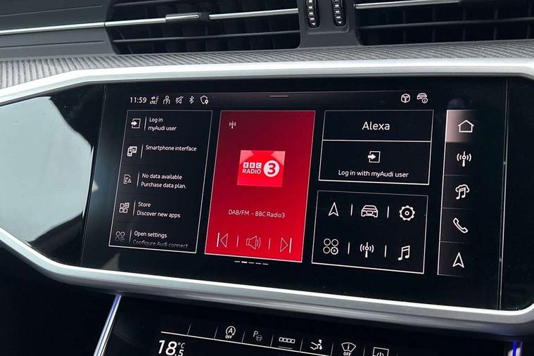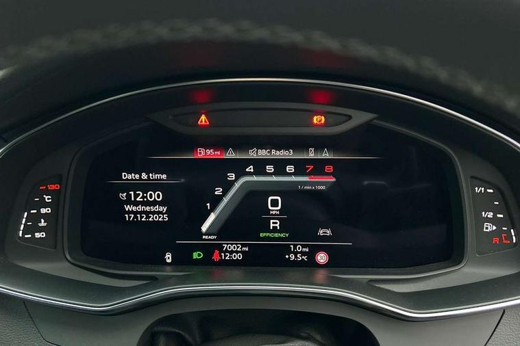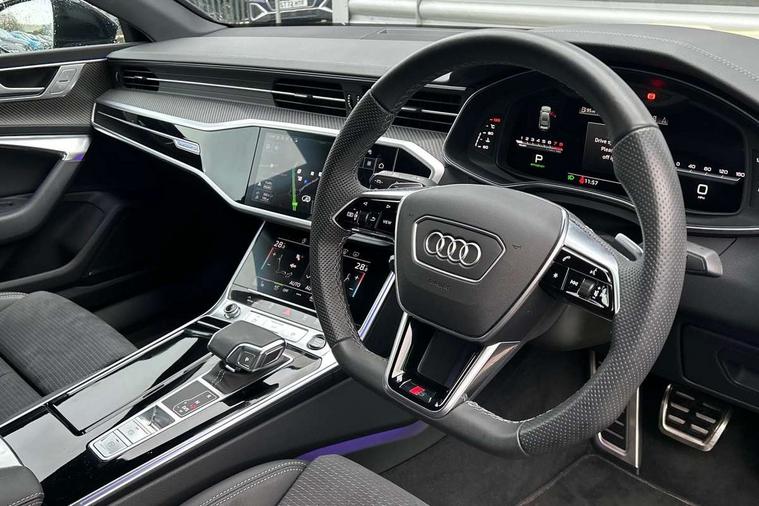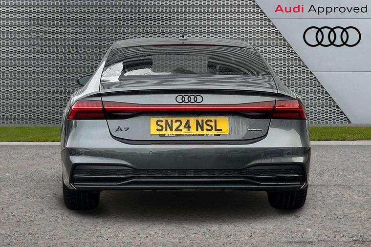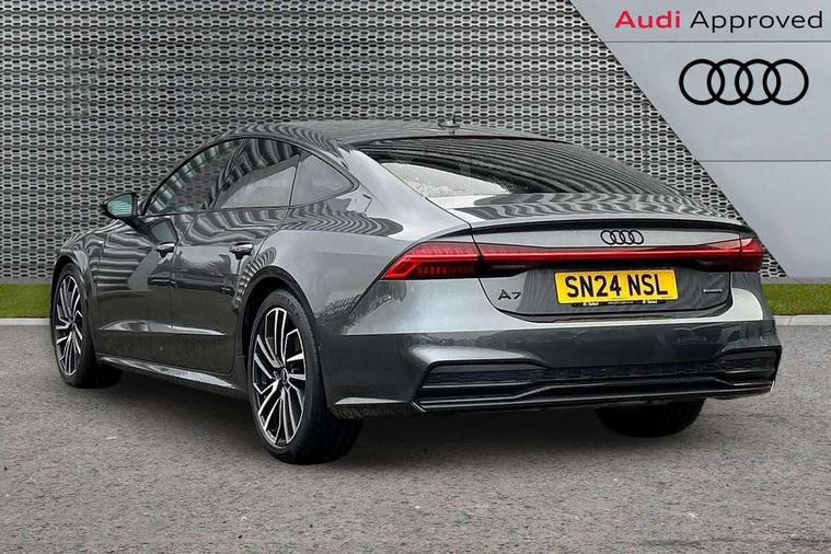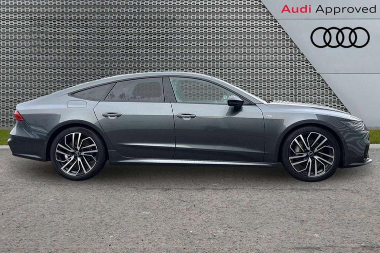 Audi connect safety and service (e-call), Audi connect with Amazon Alexa Integration, Audi drive select, Audi parking system plus - acoustic and visual park assist system for front and rear, Audi virtual cockpit, Automatic start/stop system with coasting functionality, Bluetooth interface, Camera based traffic sign recognition, Colour driver's information system display, Lane departure warning system, MMI nav plus with MMI touch + 10.1" and 8.6" HD haptic touch screen/3D city models/country information/online map/route info and personal route assist, Operating buttons in black, glass look with haptic feedback, Progressive steering, Rear view camera, Service indicator, Smartphone interface includes wireless Apple carplay/Android Auto, Voice control system, Quattro on demand, Sports suspension, Audi music interface, Audi sound system with 6 channel amplifier, 180 watt amplifying capacity and 10 loudspeakers including subwoofer, Auxiliary input socket, DAB digital radio module, Audi beam, Audi rings, front and rear as well as A7 at the rear in black, Black rear diffuser with chrome inlays, Electrically adjustable heated and folding + automatically dimming exterior mirrors with memory function, Frameless auto dimming interior rear view mirror, Front and rear electric windows, Gloss black highlights on the exterior area of the Audi Single frame, Gloss black highlights on the front and rear bumpers, Gloss black highlights on the radiator grille, Gloss black highlights on the side windows trim strips, HD Matrix LED headlights, Heat insulating darkened glass in side and rear windows, LED rear lights with dynamic indicators, Omission of output/technology badging, Privacy glass with side and rear windows, Rain and light sensors, Rear side wing doors, Rear wiper, Retractable rear boot spoiler, S air inlet in titanium anthracite black, Signature LED daytime running lights, Towbar preparation, Windscreen with heat-insulating glass, 2 zone deluxe electronic climate control, 4-way electric lumbar support, 40/20/40 split folding 3 seater rear seat bench with rear centre armrest, Audi phone box light, Black cloth headlining, Electrically adjustable front seats - driver seat with memory, Front and rear headrests, Front centre armrest, Heated front seats, Height/reach adjust steering wheel, Illuminated door sill trims with S logo, Illuminated sun visors with vanity mirrors, ISOFIX child seat mounting and top tether in front and outer rear seats with front passenger airbag deactivation, Leather gear knob, Leatherette upper instrument panel and door shoulders, Luggage compartment lid, electrically opening and closing, S line front and rear floor mats with contrast stitching, Single front passenger seat, Stainless steel pedals and foot rest, LED interior ambient lighting pack - A7, Non smoking pack - A7, 3 point seatbelts on all seats, Audi pre-sense front, Driver and passenger airbags, Electromechanical parking brake, Electronic stabilisation control including ABS, ASR and EDL, Extended pedestrian protection measures, Hill hold assist, Manual child lock in rear doors, Seatbelt monitoring, Tyre pressure warning light, Warning triangle and first aid kit, Anti theft alarm with tow away protection, Anti-theft wheel bolts and wheel loosening detection, Immobiliser, Keyless Go, Preparation for tracking system, Remote central locking, Carbon twill inlays, 20" 5 segment spoke evo style Audi sport black matte diamond turned alloy wheels, Tool kit,