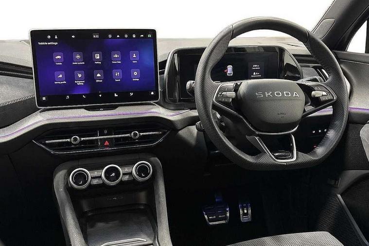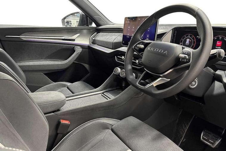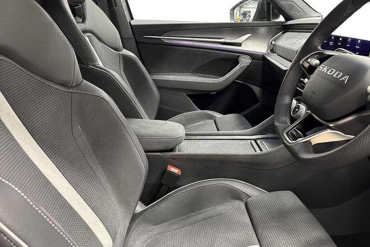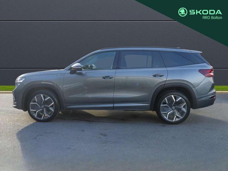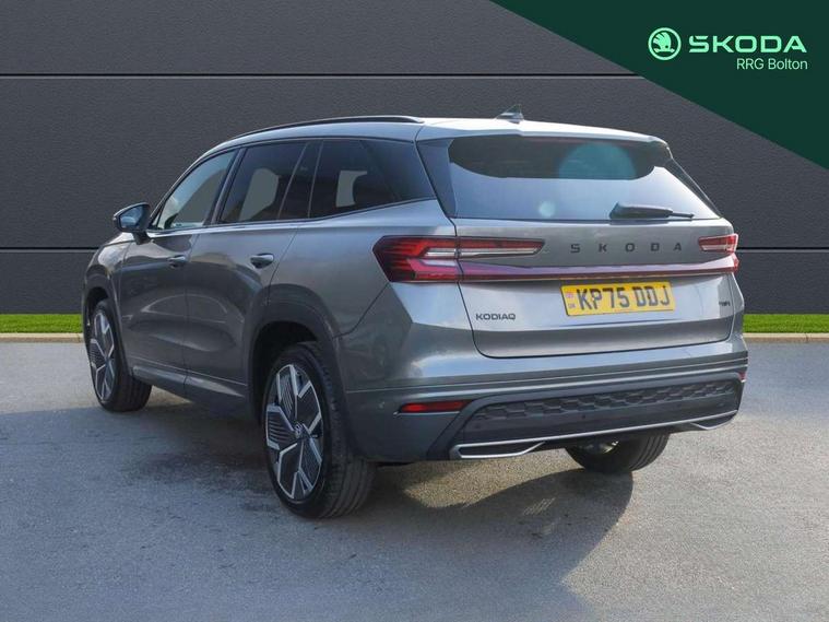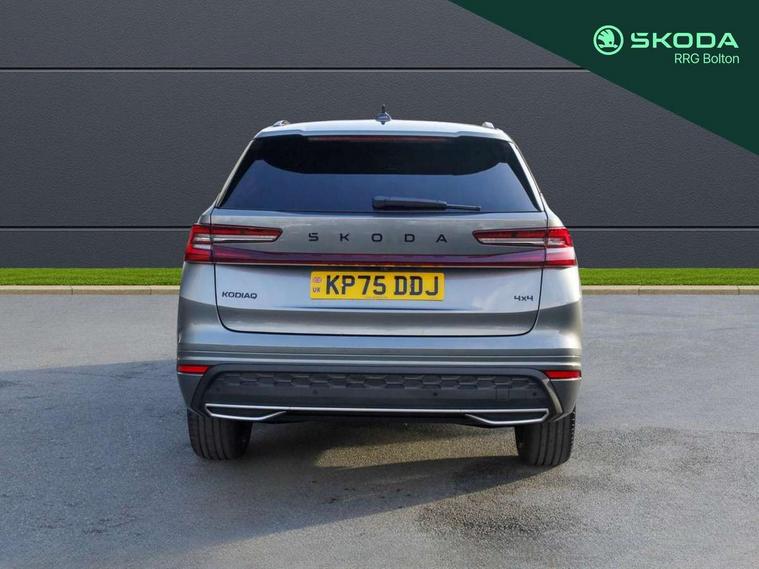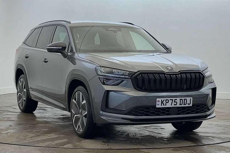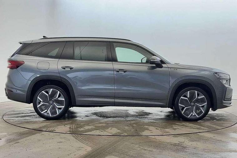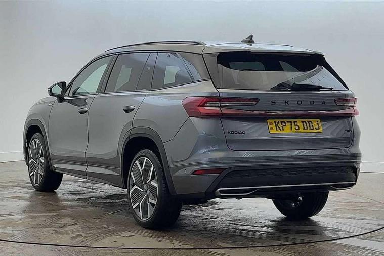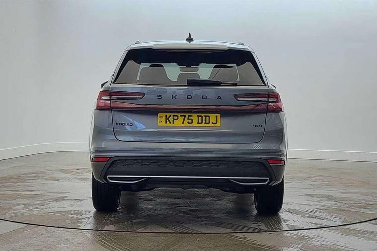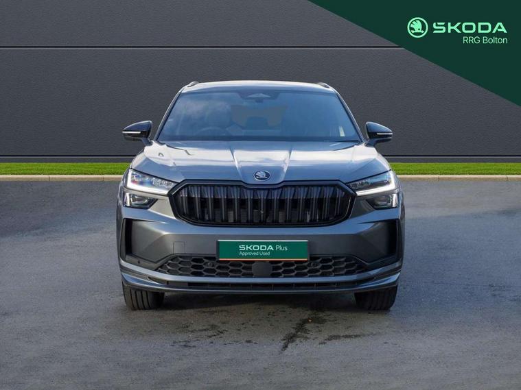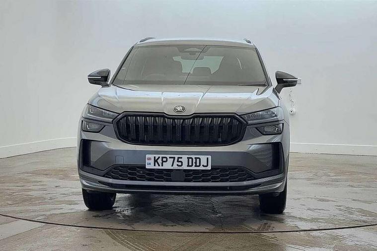 13" satellite navigation touchscreen display, Blind spot detection with door exit warning, Bluetooth system, ChatGPT functionality, Driver alert - Fatigue and drowsiness monitor, Dry display cleaner, Emergency call, Front and rear parking sensors, Front cross traffic assist, Lane assist, Off road modes, PAS, Rear traffic assist, Tailgate unlocking from outside, Traffic sign recognition, USB C Port x 2 in front centre console, Virtual Cockpit - 10.25" digital display, Voice control system, Wireless charging for two smartphones (15W) with cooling function, Wireless SmartLink for Apple CarPlay and Android Auto, Stop/start function, 2x USB-C in the rear, DAB Digital radio, Aero front windscreen wipers with intermittent function, Auto dimming rear view mirror, AWL (all weather lighting) and all weather light with cornering function, Black diffuser and decorative tailpipe with a unique dark chrome finish, Black roof rails, Black sports styling including front grille and window surrounds, Black wheel arch surrounds, Body colour door handles, Cornering light and poor weather light, Electric folding /adjustable/separted heated/folding door mirrors, auto dimming with boarding sports and memory function, Electric front and rear windows, Exterior black decorative trims, Front and rear sports bumpers including lower rear chrome strip, Gloss black door mirrors, Gloss black window frame and D pillar, Heat insulating glass in windshield, Heated rear window, Ice scraper in fuel tank cap, LED daytime running lights, LED third brake light in rear spoiler, Light assistant with automatic headlight control and coming home feature, Logo projection in door mirrors, Privacy glass, Rear roof spoiler, Rear side wing doors, Rear window wiper, Red decorative strip between rear LED lights, Safety reflectors on front and rear doors, Sportline badge on front fenders, Tailgate lettering in Black, Unique dark chrome design logo on alloy wheels, Window control switches with black trim, Windscreen wipers with rain sensor, Without engine designation, 1.5l bottle holder points in all door, 1x centre rear reading light, 2 seat bench in 3rd row, 3 configurable smart dials with 32mm coloured display, 3 seat bench in 2nd row, 4 foldable roof handles with rear coat hooks, Aluminium pedals, Ambient interior lighting - Dashboard, front-door stowage compartments, front and rear door panels and footwell lighting, Automatic gear selector on steering column, Chrome interior door handles, Driver/front passenger reading lights, Fabric headlining, Fixed bench 40:60:40 split folding backrests, Front and rear floor mats, Front centre armrest with jumbo box storage compartment, cup holder and 12V socket, Front sport seats, Height adjustable front headrests, Interior black decorative trims, Isofix child seat fittings in outer middle row rear seats and front passenger with top tether, Manually adjustable steering column, Pollen filter, Rear centre armrest with cupholders, Rear seat boot backrest release, Single front passenger seat, Skoda lettering on steering wheel, Storage pocket including mobile phone pockets on the backs of the front seats, Sunvisors with illuminated vanity mirrors, Three rear height adjustable headrests, Ticket holder on A Pillar, Tri zone climate control, Umbrella in door panel x1 made from sustainable materials, Upper and lower glovebox with card holder and coin compartment, USB C port by rear view mirror for charging only (15W), Acoustic package - Kodiaq, Performance package - Kodiaq, Sportline design selection pack - Kodiaq, Auto door release and activation of warning lights in the event of an accident, Driver and front passenger airbag with knee airbag and front passenger airbag deactivation, Electric child locks, Electronic parking brake, ESC (incl. ABS+EMD+MSR+ASR+EDL+HBA+DSR+RBS+ESBS+MCB+TSA+XDS), Front assist with braking reaction to vehicles, pedestrians and cyclists, Front disc brakes, Fuel cut off safety device, Height adjustable front 3 point seatbelts + pretensioners, Hill hold assist, Junction assist with automatic emergency braking, Rear disc brakes, Safety vest holder in door, Seat belt reminder for all seats, Three point rear seat belts, Two tone horn, Tyre pressure monitor, Alarm with interior monitoring and tilt sensor with safe function, Anti-theft wheel bolts, Immobiliser, Remote central locking with 2 keys, 20" Rila anthacite polished alloy wheel with black matte aero covers,