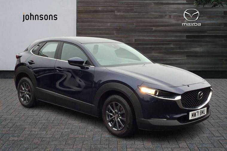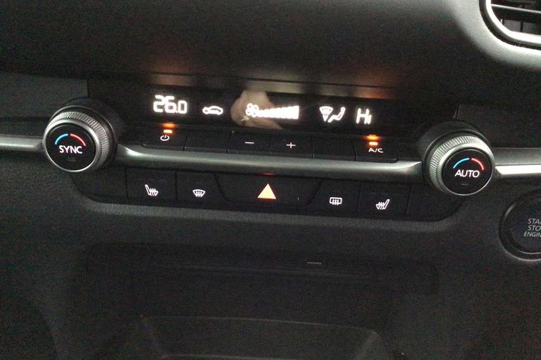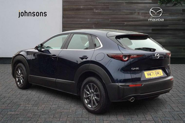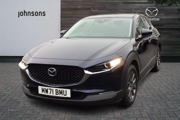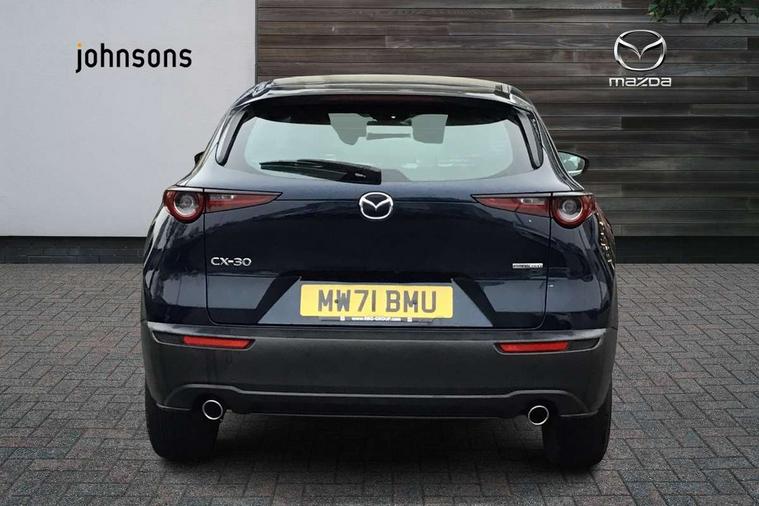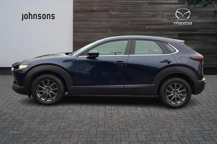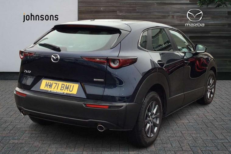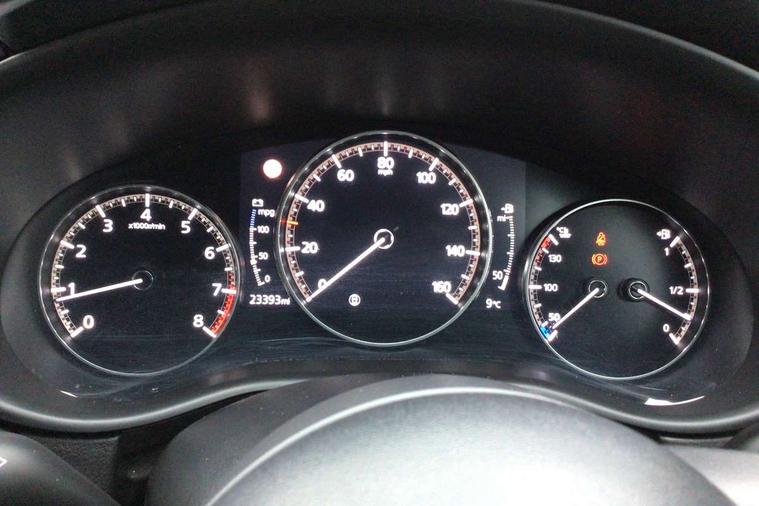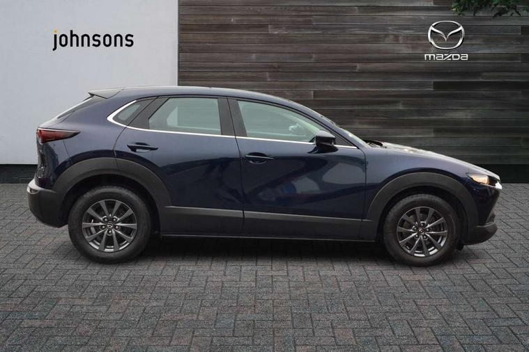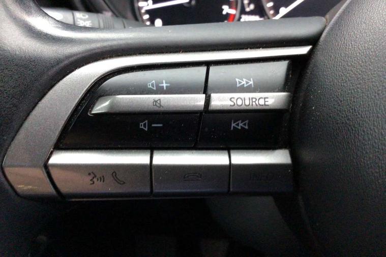 7" TFT Colour driver instrument panel display, 8.8" Colour centre touch screen display with Mazda Connect infotainment, Adaptive cruise control (Mazda radar cruise control), Apple car play/Android Auto, Blind spot monitoring with rear cross traffic alert, Driver attention alert system, E-call with GPS, Emergency stop signalling system, Engine start/stop button, Front and rear parking sensors, Integrated bluetooth, Integrated Mazda navigation system, Intelligent speed assist, Lane keep assist system (LAS) with Lane departure warning system (LDWS), Mazda connected services, PAS, Reversing camera, Service indicator, Traffic sign recognition, Trip computer, Cylinder Deactivation, i-stop, 2 USB charging ports in front inner central armrest, AM / FM / DAB radio with 8 speakers, Multimedia Commander including separate volume dial, Steering wheel mounted audio/bluetooth controls, B-pillar and C-pillar garnishes in satin black finish, Auto dimming driver's door mirror, Auto dimming rear view mirror, Auto headlight levelling, Body coloured, electrically adjustable, heated auto power folding door mirrors with integrated indicators, Chrome finish signature wing in front grille, Coming/leaving home lighting function, Dual chrome exhaust, Dusk sensing headlights, Electric front/rear windows with one touch auto up/down, Front kodo turn signal, Gloss black rear roof spoiler, LED headlights with halogen daytime running lights and high beam control, LED rear combination lights, Rain sensing front wipers with adjustable speed and intermittent wipe, Rear fog lights, Rear wiper, Satin black front grille, 12V power outlet in centre console, 60/40 split fold down rear seats, Cloth upholstery with interior accents, Dark cloth door panel inserts, Dashboard, door cards and front centre armrest in black cloth, Driver and front passenger visors with covered vanity mirror and driver ticket holder, Driver seat manual slide, recline, height and seat tilt adjust, Driver, front passenger and two rear door storage, Driver, Front passenger and two rear grab handles with coathooks, Dual zone climate control air conditioning with rear air vents, Folding rear centre armrest with two cup holders, Front and rear (x3) head restraints, Front and rear LED lighting, Front armrest, Front centre storage with two cupholders, Front passenger seatback pockets, Front passengers seat manual slide, recline and height adjustment, Gear shift indicator, Glovebox illumination, Heated front seats with 3 stage setting, ISOFIX child seat anchorage points attached on outer rear seats, Leather wrapped gear shift knob, Leather wrapped steering wheel with telescopic and tilt adjustment, LED luggage compartment lighting, Light roof headlining and pillars, Roof mounted sunglasses holder, 3 point ELR front seat belts x2 with pretensioners, 3 point ELR rear seat belts, Anti-lock braking system (ABS), Drivers knee airbag, DSC - Dynamic Stability Control, Electronic parking brake with auto disengage function and auto hold function, Front and rear curtain airbags, Front dual stage driver and single stage front passenger airbags, Front passenger airbag cut-off switch, Front side airbags, Front smart city brake support, G-Vectoring control plus, Hill launch assist, Mild Hybrid system with regenerative braking, Seatbelt reminder for driver/front passenger and rear seats, Traction control system (TCS), Tyre pressure monitoring system (TPMS), Remote central locking with deadlocking and automatic door lock when driving, Smart keyless entry, Thatcham accredited alarm and immobiliser, 16" Grey alloy wheels, Emergency tyre repair kit,
